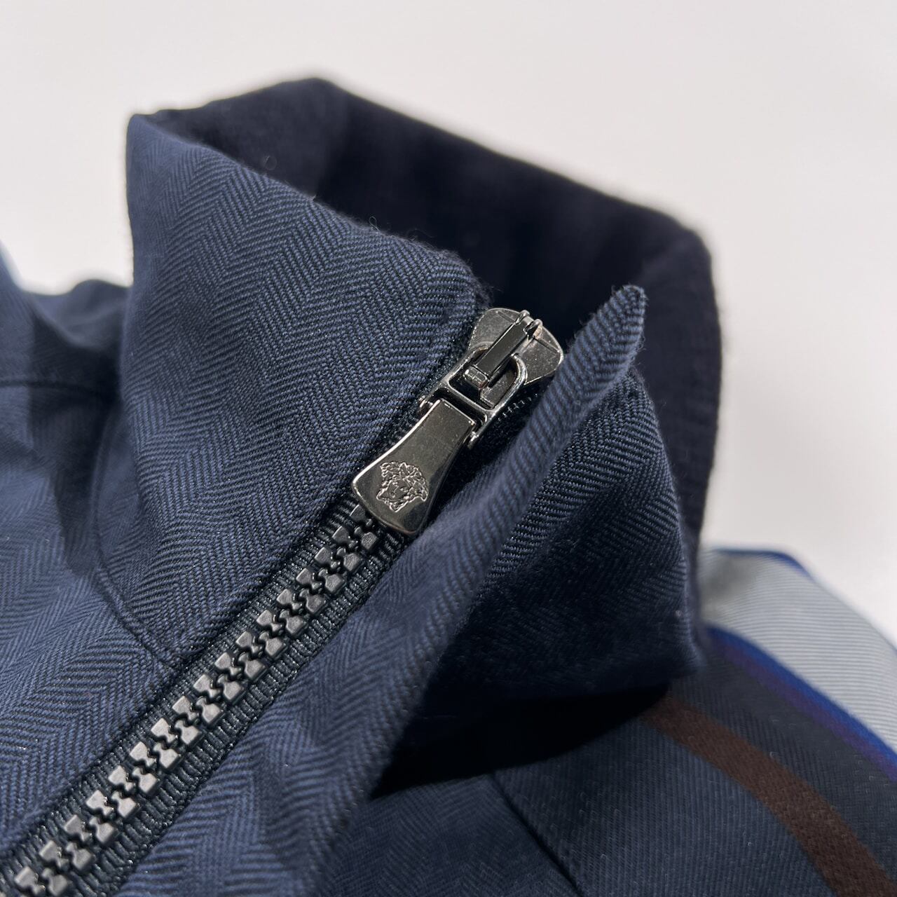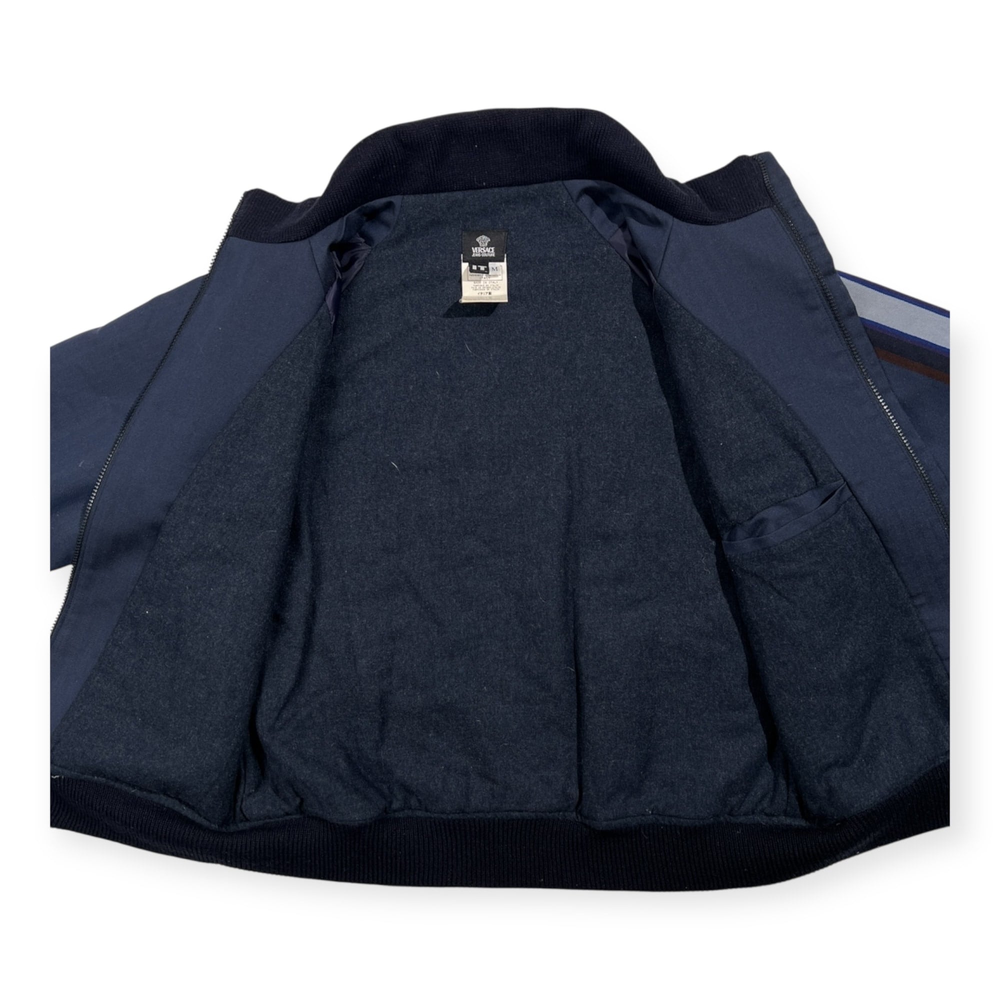 VERSACE JEANS COUTURE ヴェルサーチ ジーンズ 袖ライン入り トラックジャケット風 中綿 ジャケット サイズ M /ネイビー/イタリア製