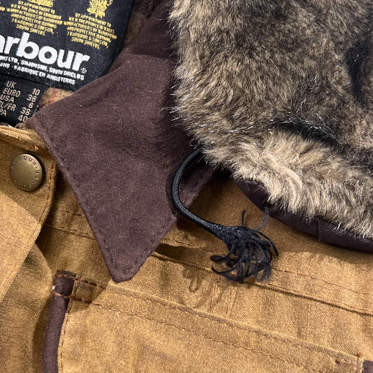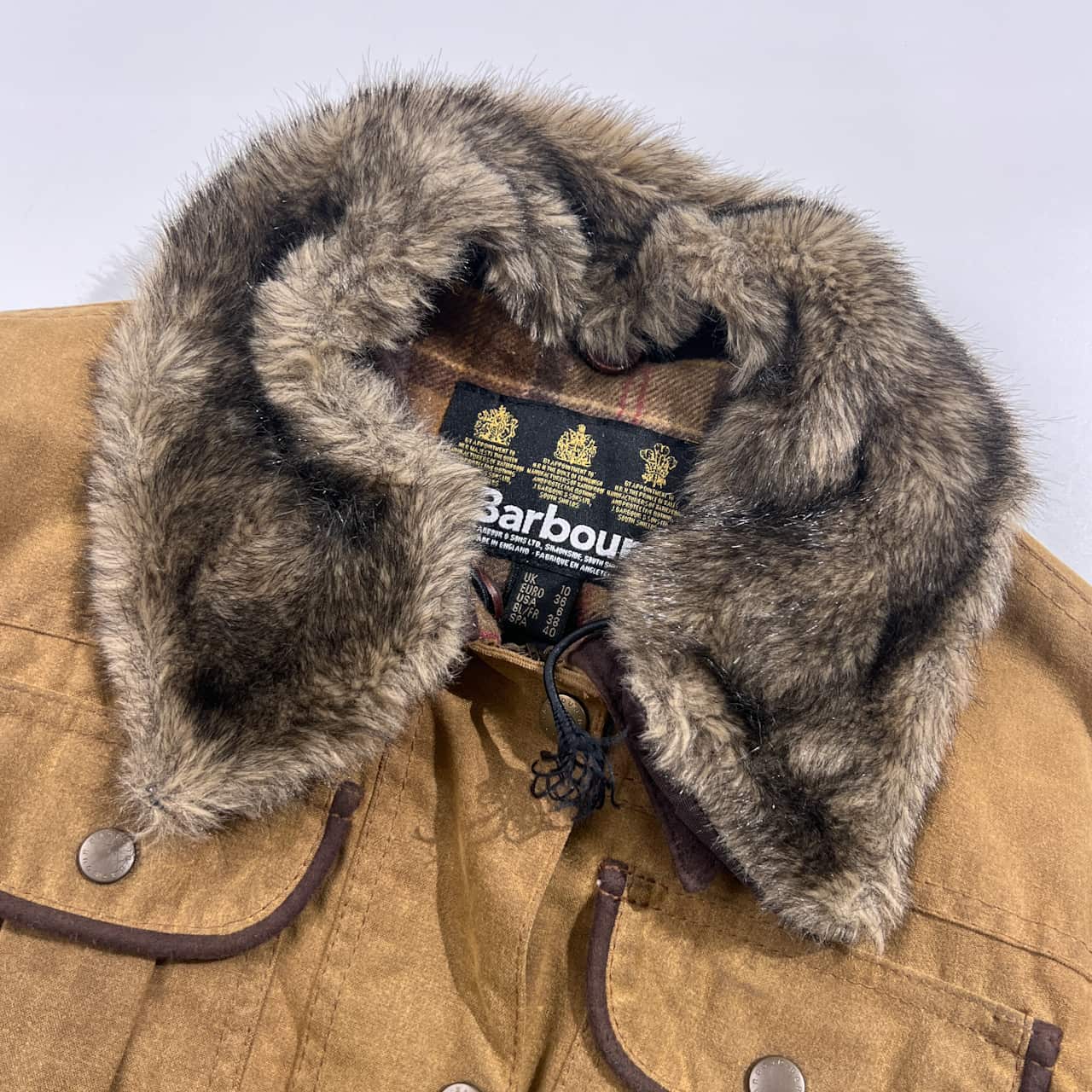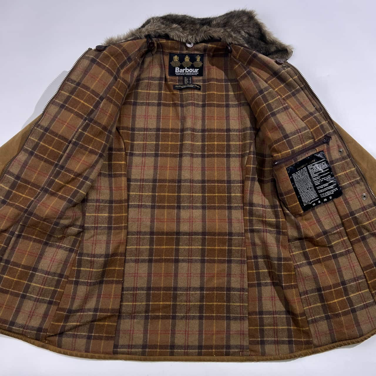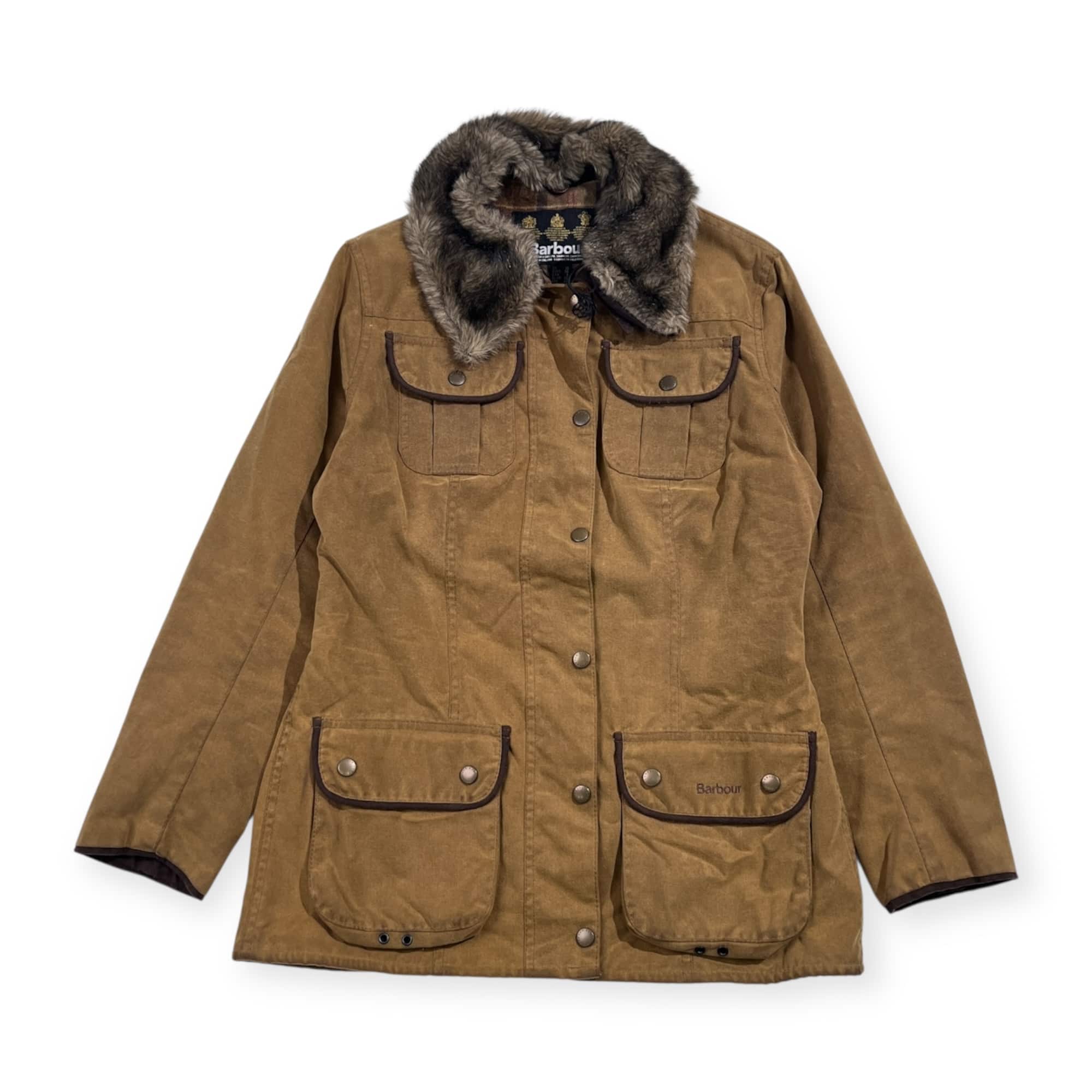 Barbour バブアー 裏チェック ダブルジップ ファー付き ミリタリージャケット UK10/ベージュ レディース