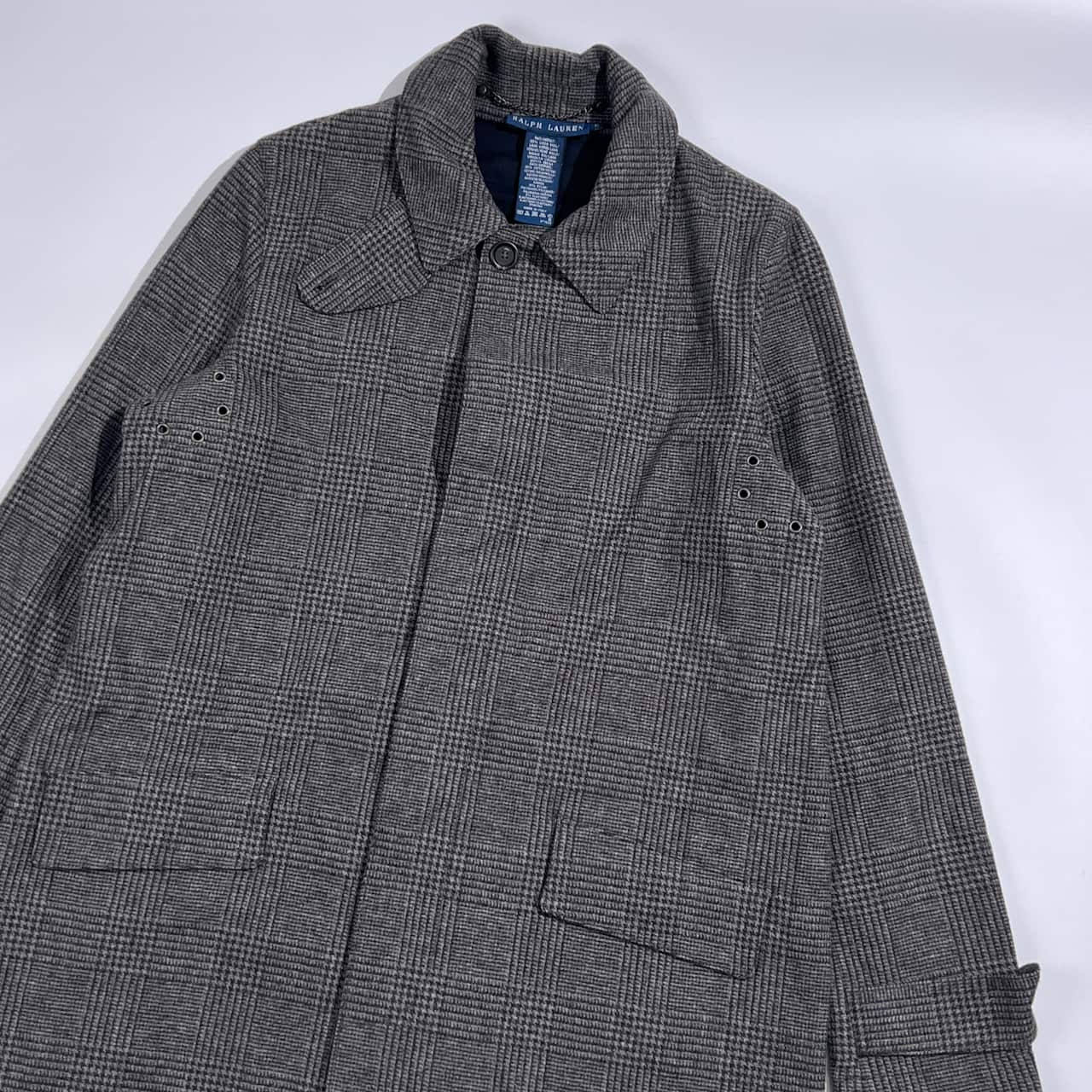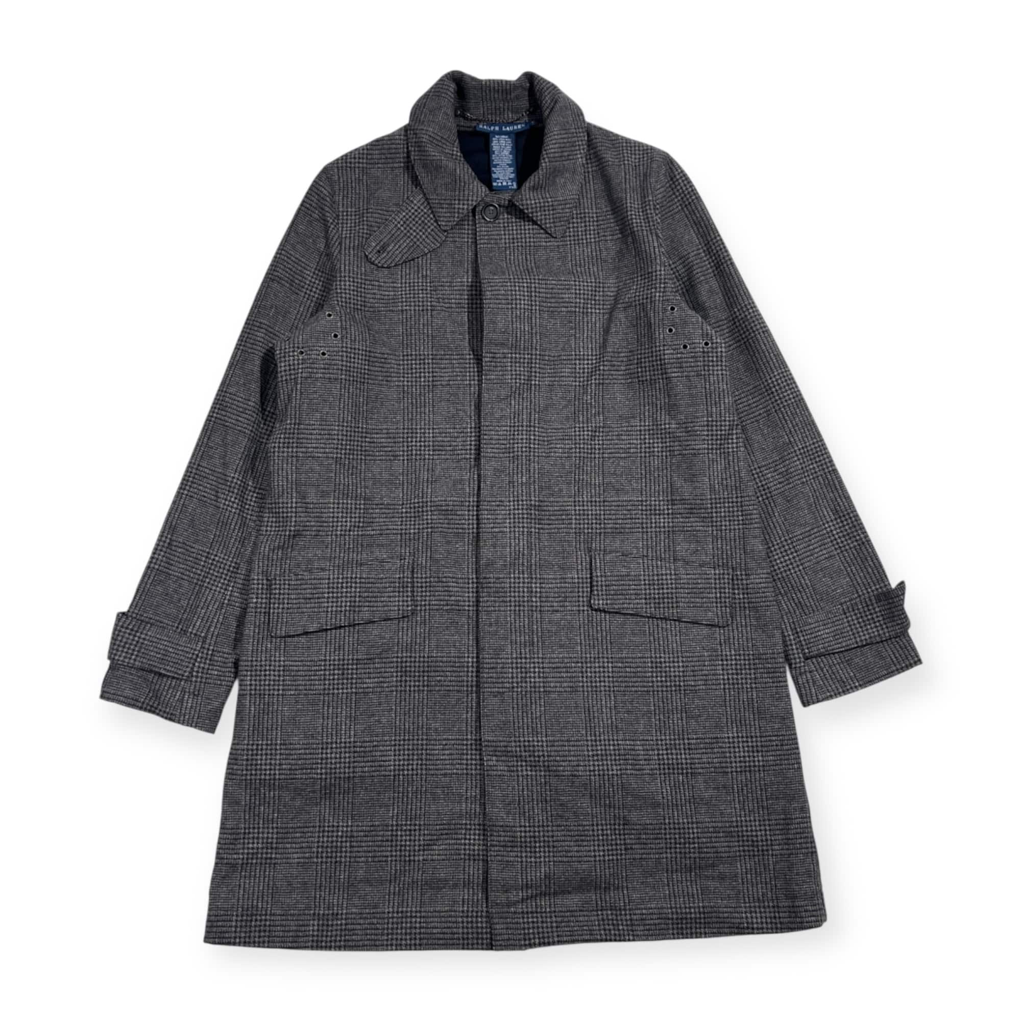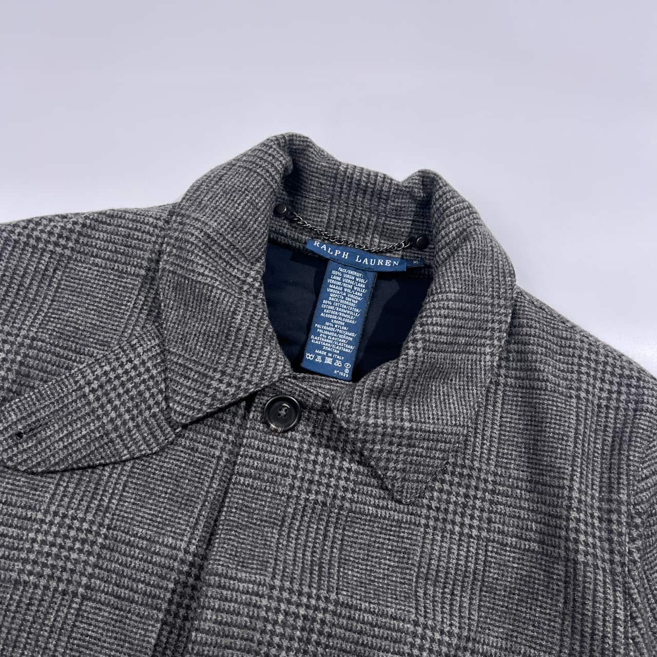 90s 00s イタリア製 RALPH LAUREN ラルフローレン グレンチェック ステンカラーコート XL/グレー系 レディース