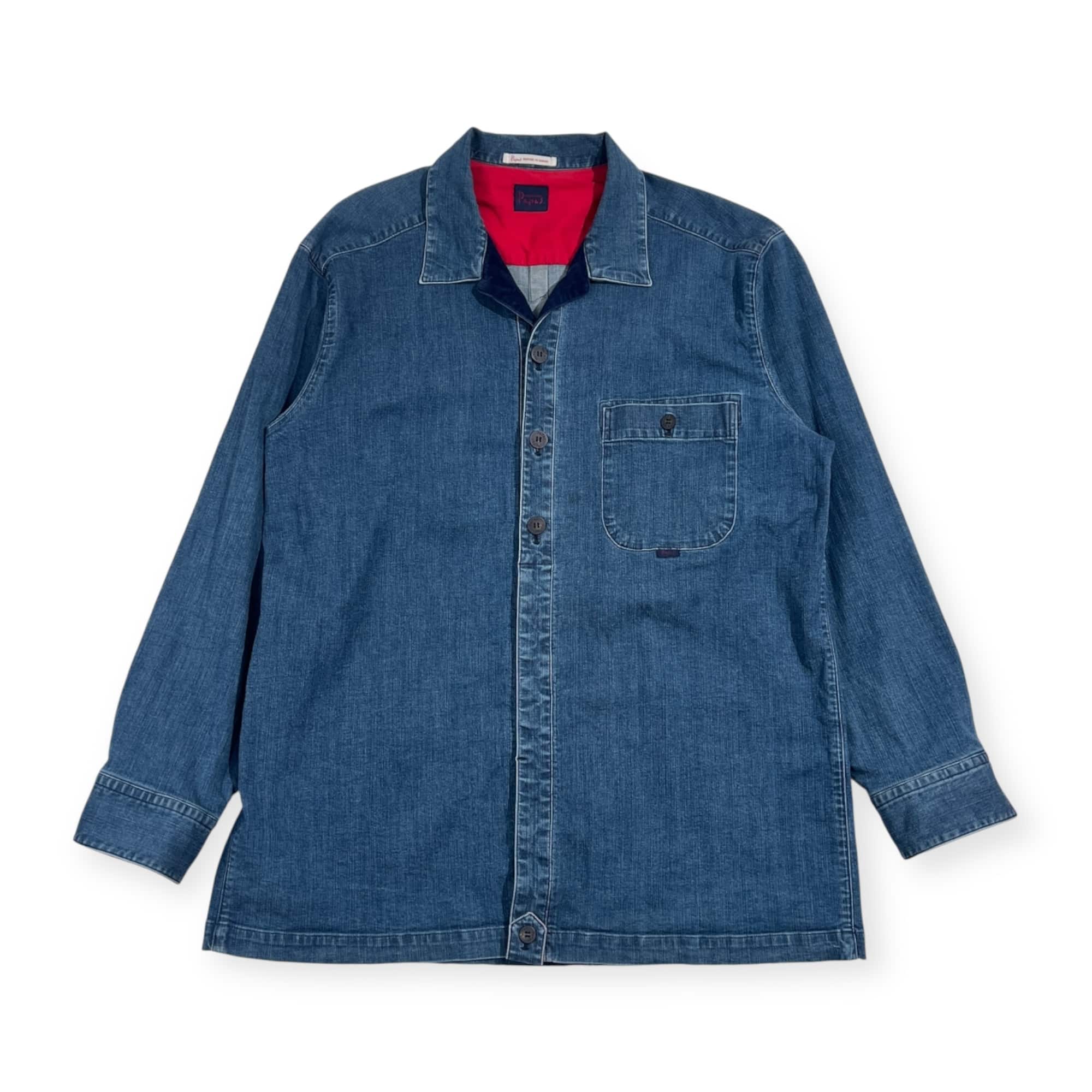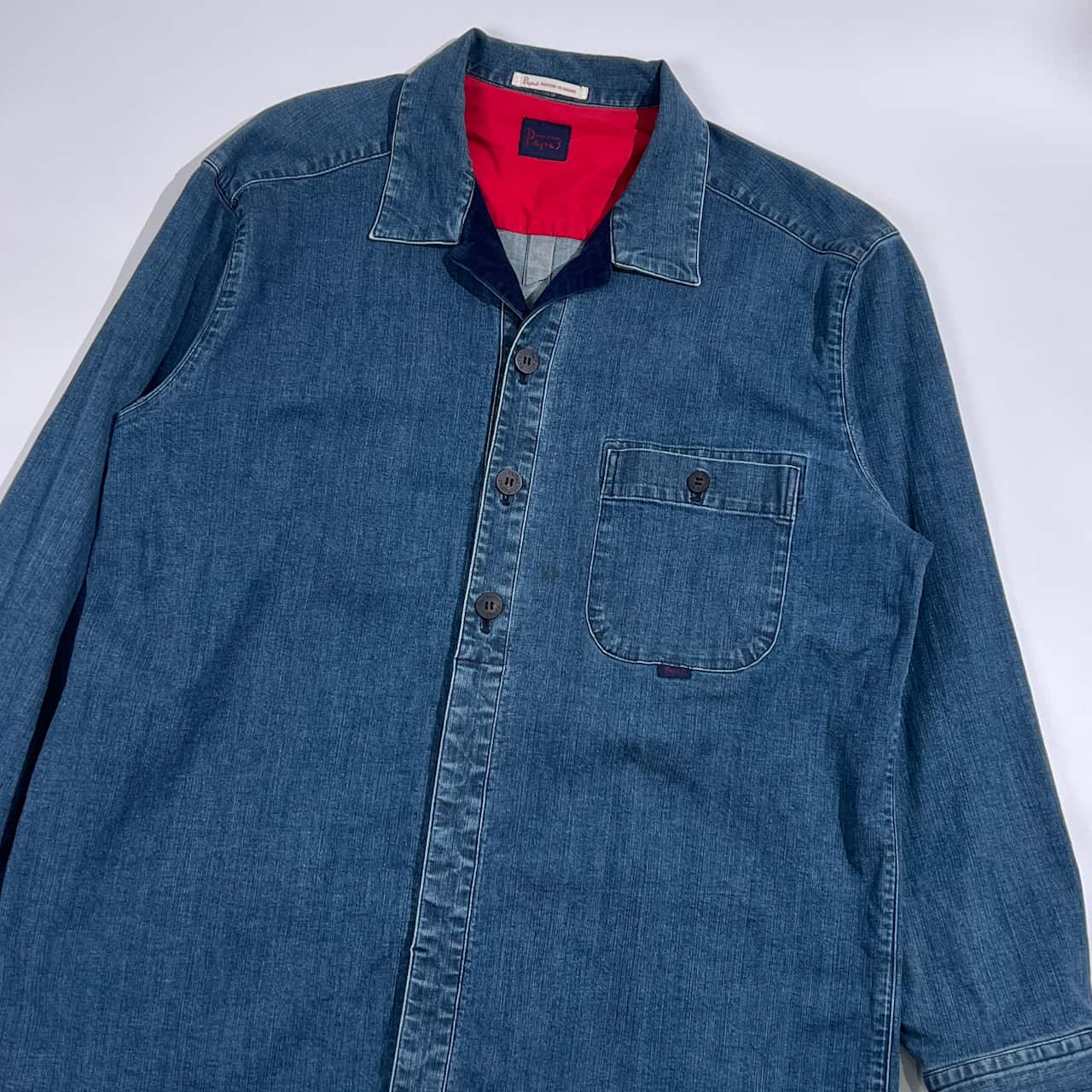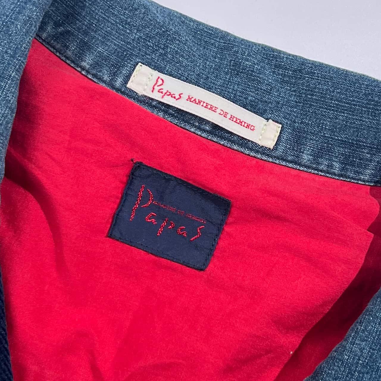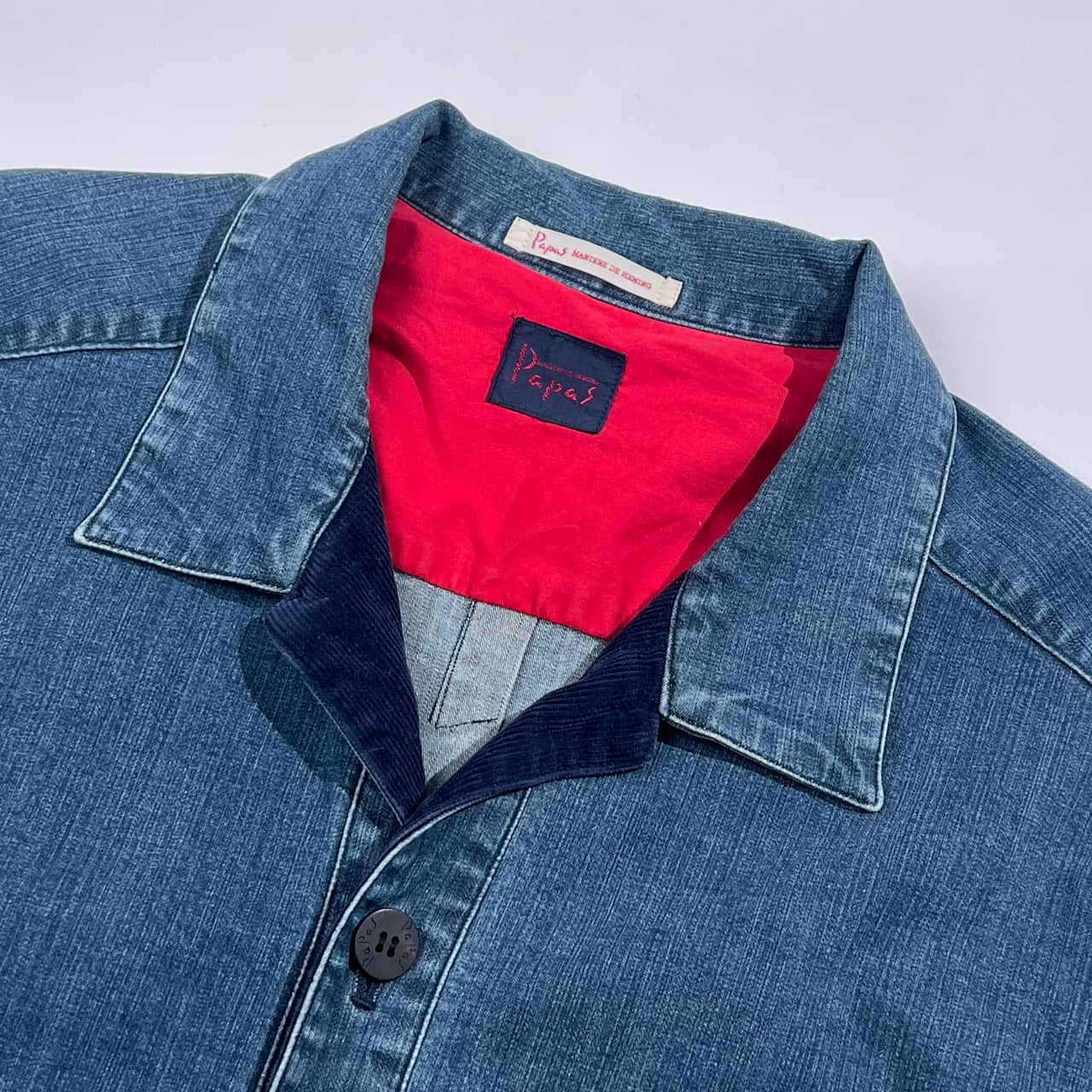 Papas パパス 切替 コーデュロイ シャンブレー デニムシャツ ジャケット L/インディゴ メンズ