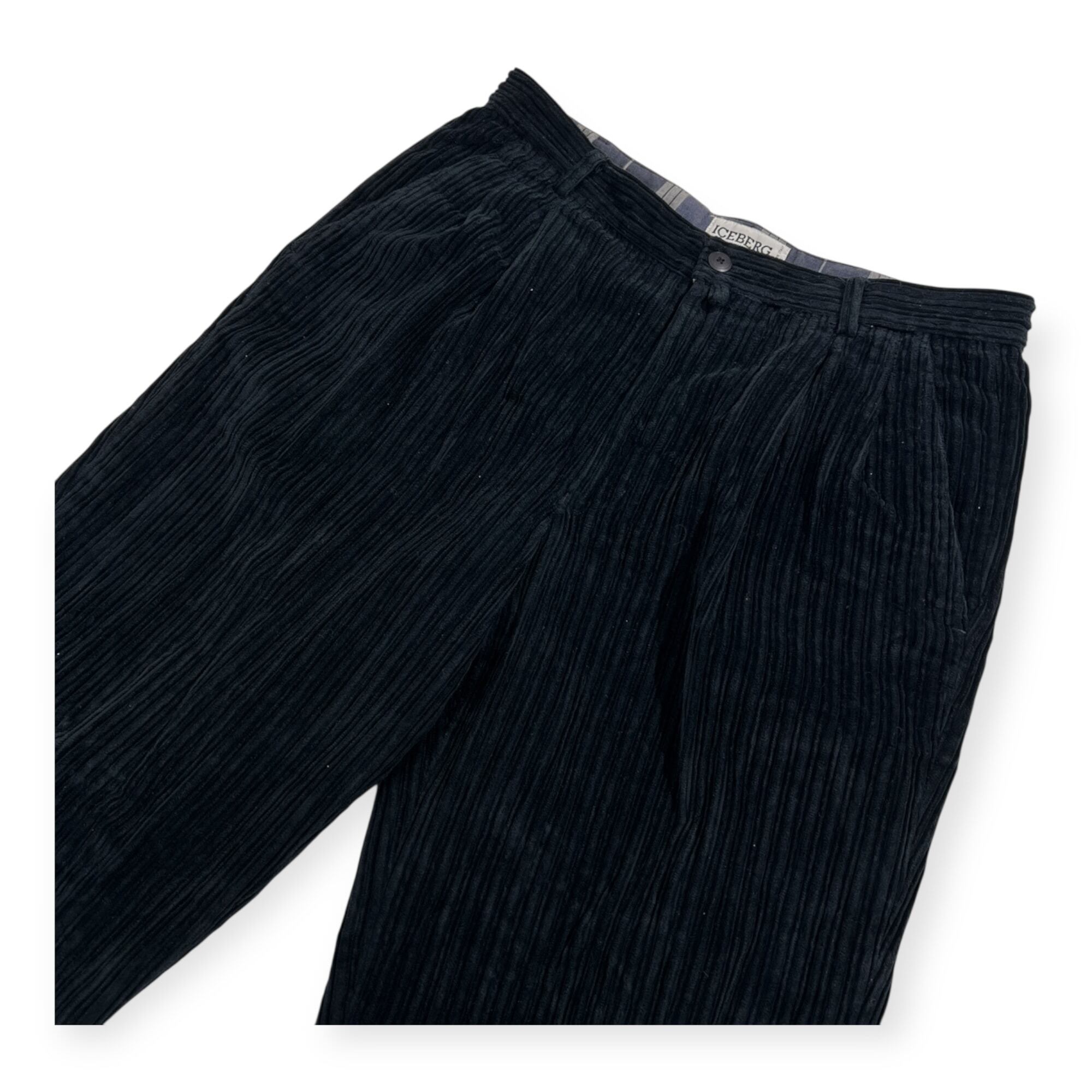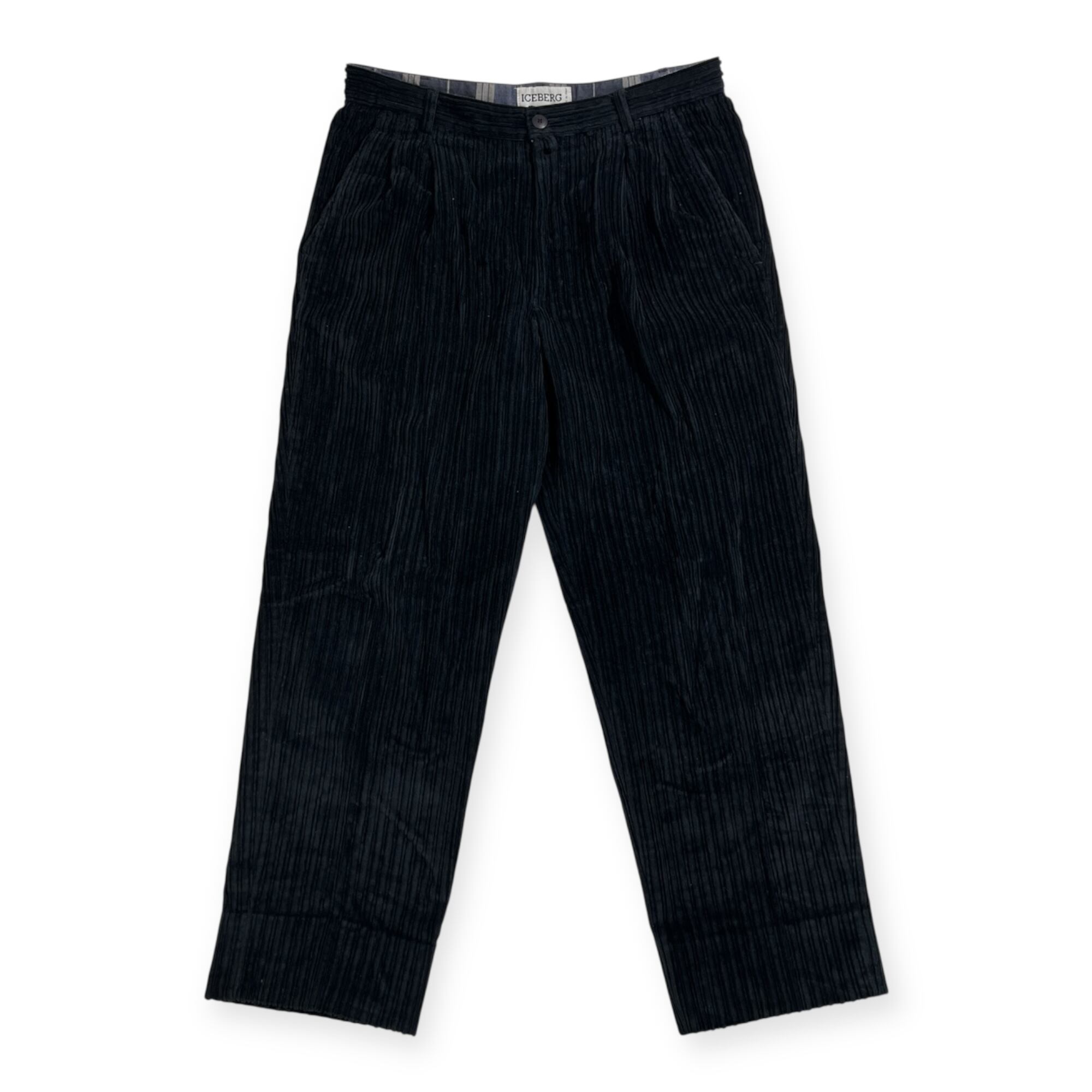 イタリア製 ICEBERG アイスバーグ 太畝 コーデュロイ ウール パンツ サイズ 52/36 /D-HG1118/ビンテージ/ブラック系