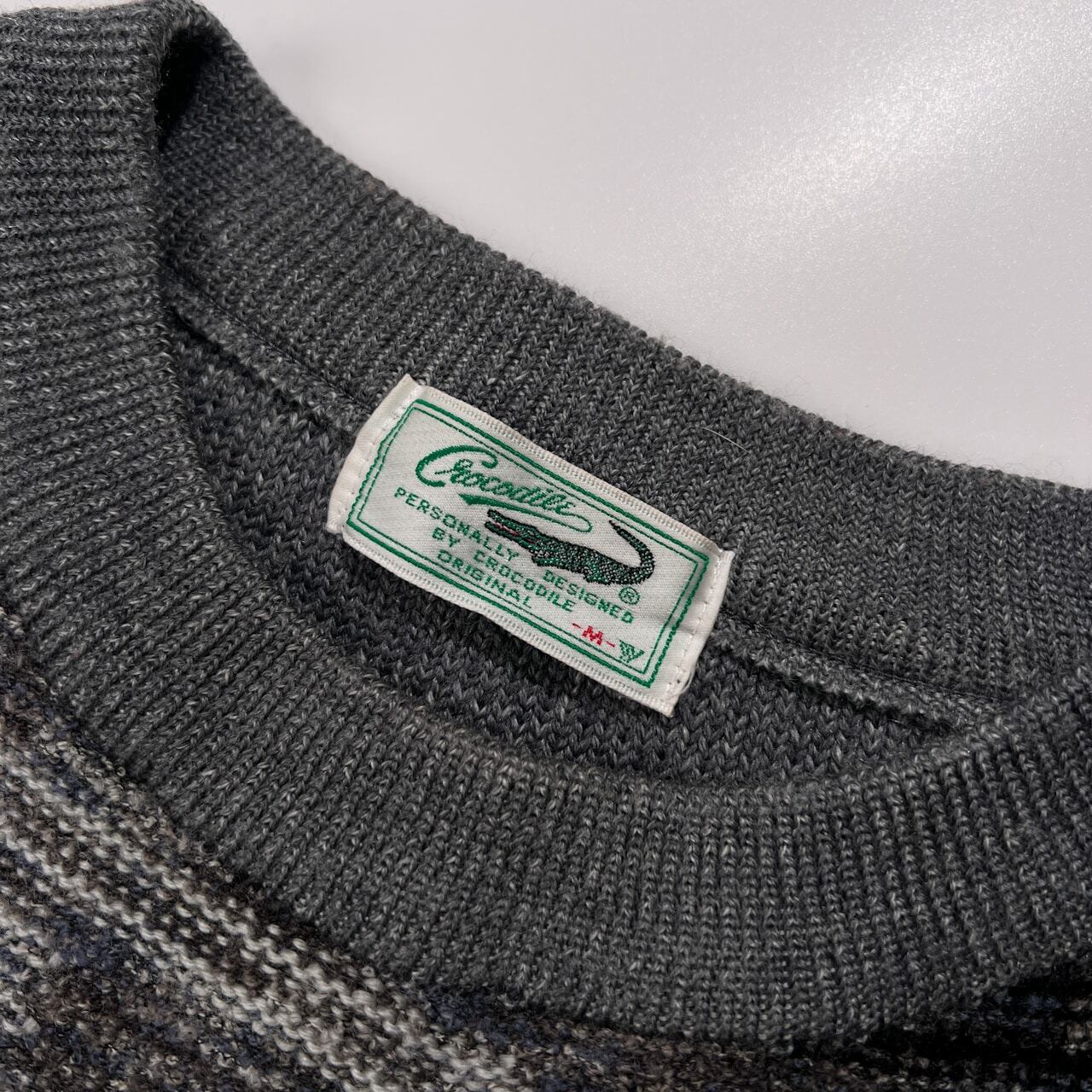 CROCODILE クロコダイル デザイン ウールニットセーター サイズ M /メンズ/グレー系