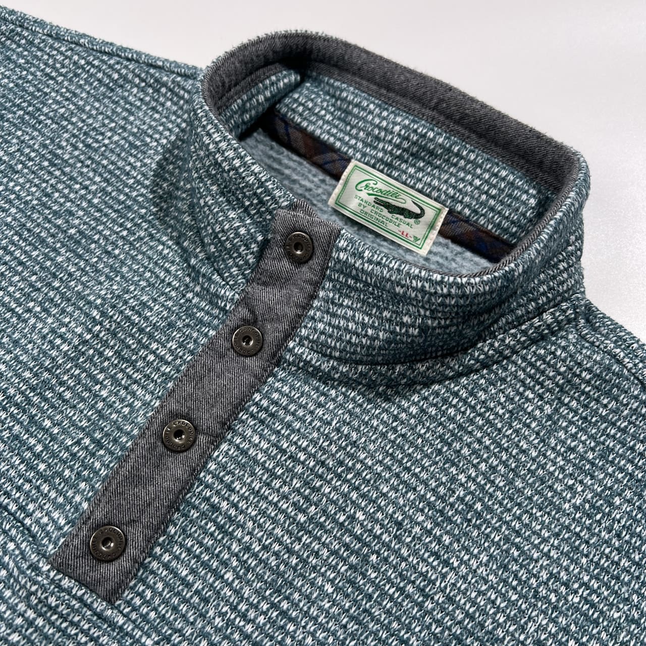 CROCODILE クロコダイル ハイネック ハーフスナップボタン ジャガード スウェット トレーナー シャツ サイズ LL /水色系/メンズ