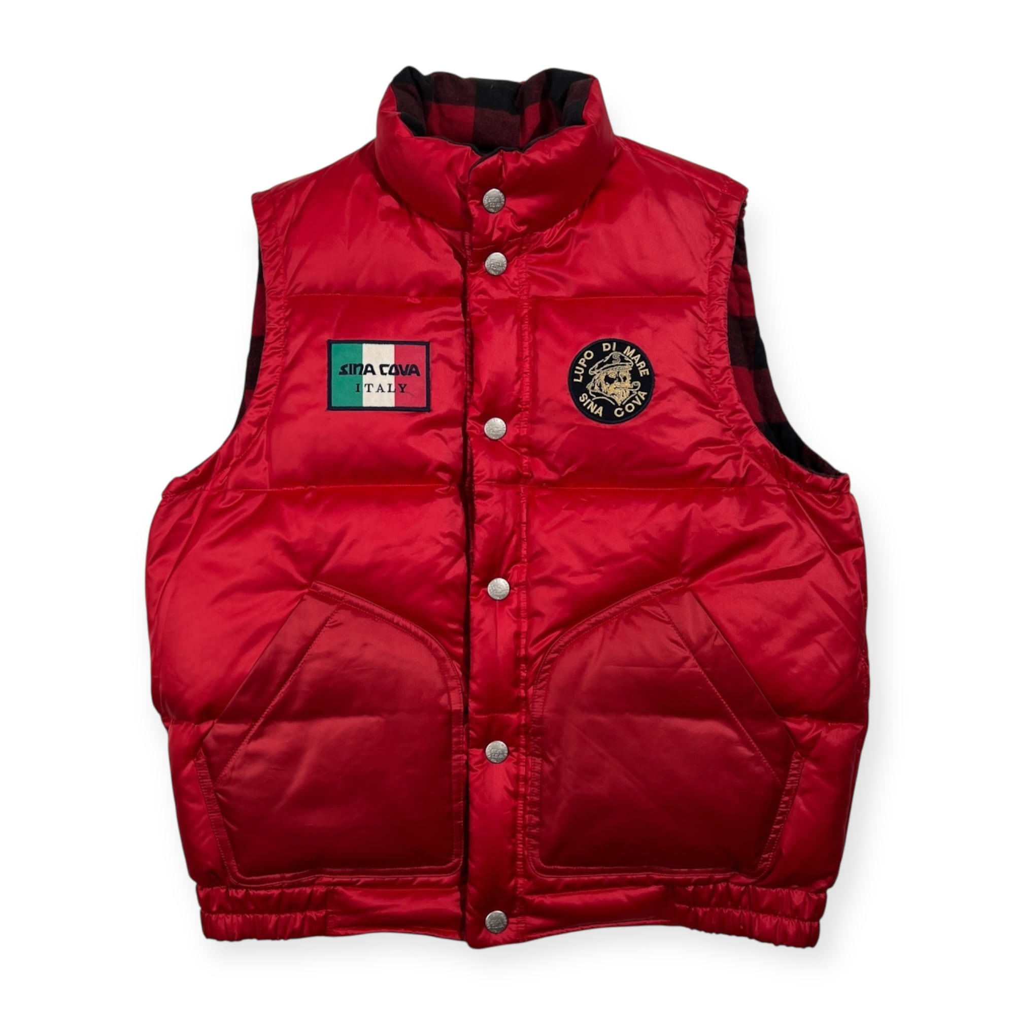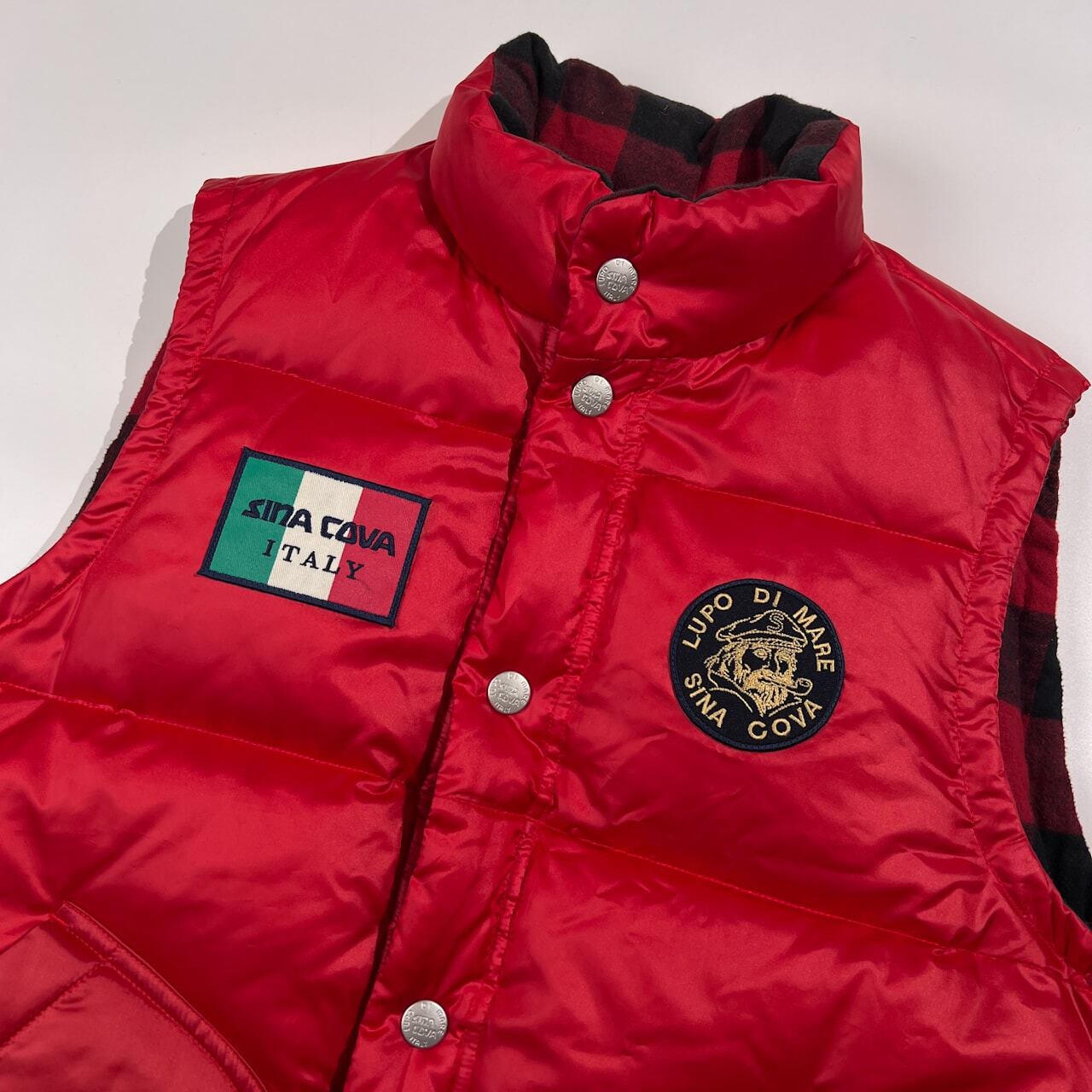 SINA COVA シナコバ リバーシブル ダウンベスト ワッペン サイズ L /メンズ/レッド/チェック柄