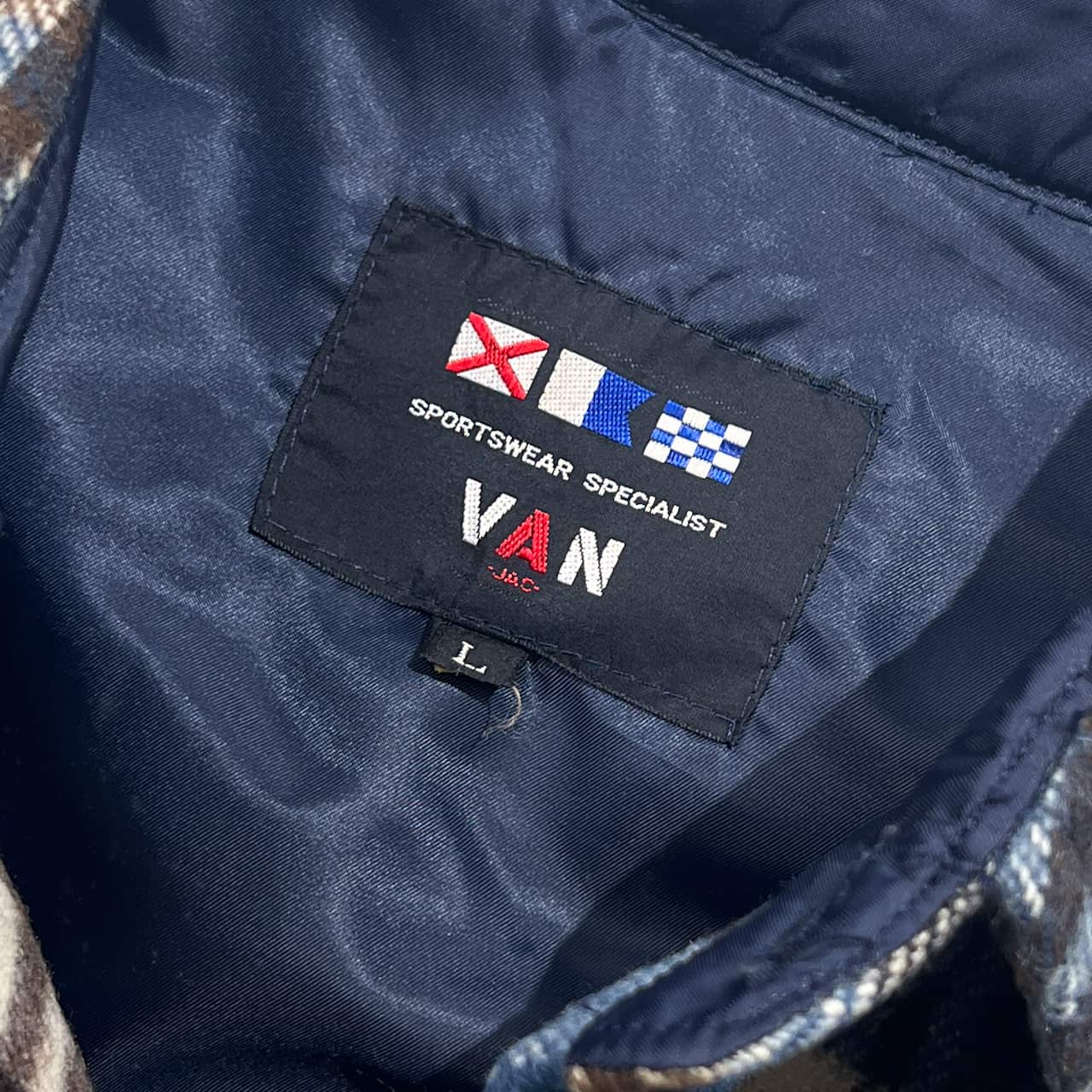 70s VAN JAC ヴァンヂャケット チェック 長袖 ウールシャツ ジャケット L/ブルー系 メンズ ビンテージ