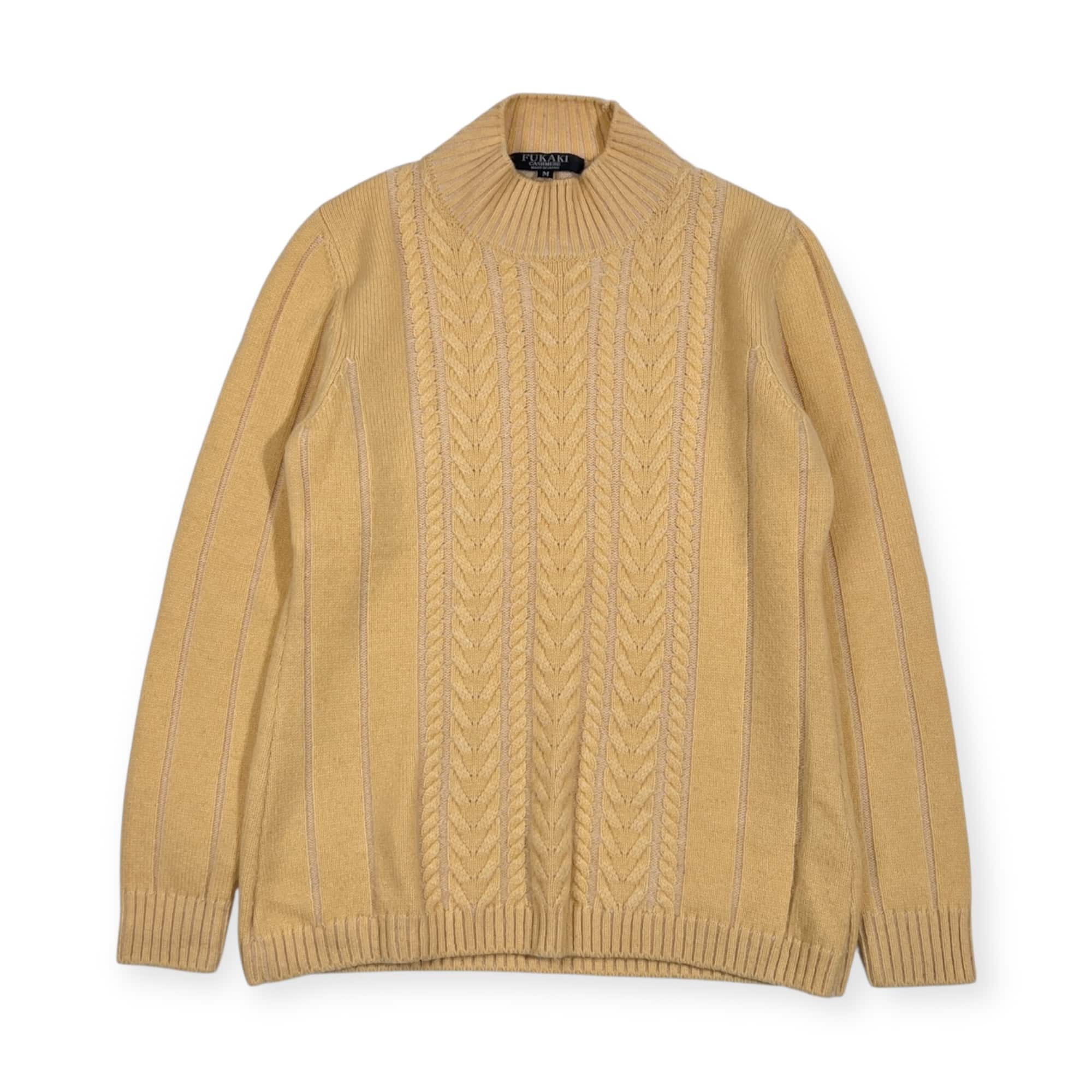カシミヤ100% FUKAKI フカキ ケーブル編み ニット セーター M/イエロー レディース