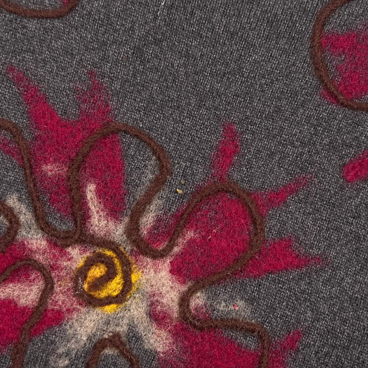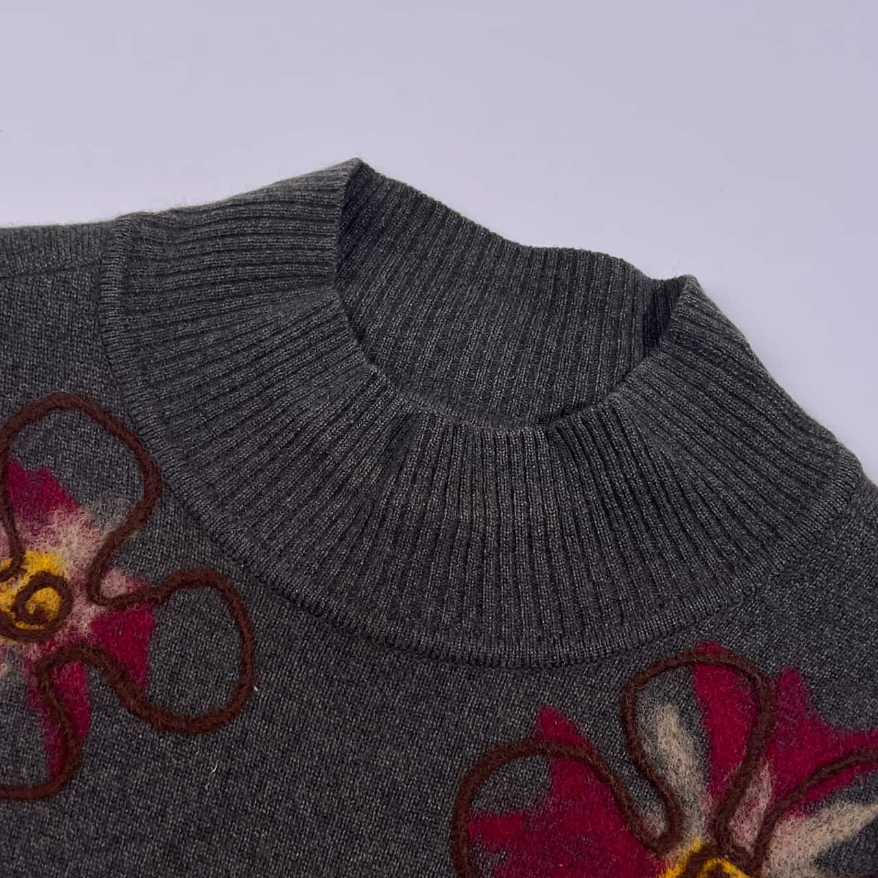 カシミヤ100% madame Binet マダムビネット フローラル ニット セーター L/グレー レディース