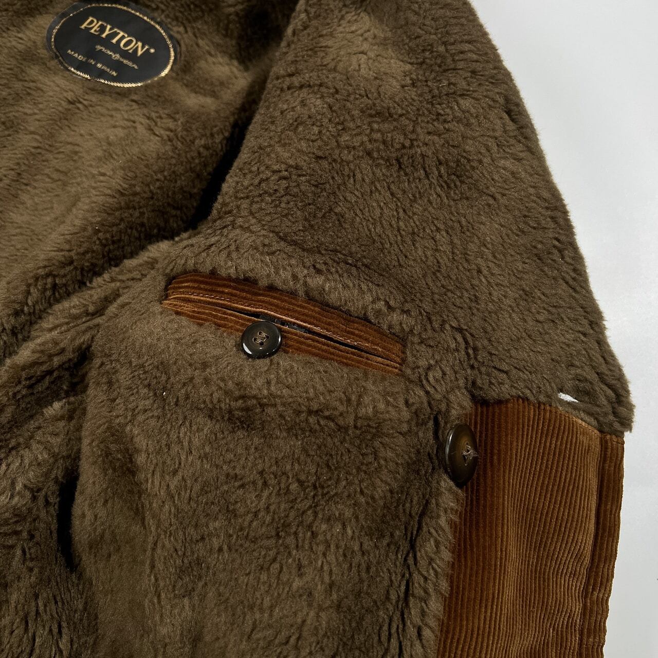 PEYTON sportswear スペイン製 コーデュロイ ダブル ランチ コート 裏ボア フリース S /ブラウン/ビンテージ/ベルト付き