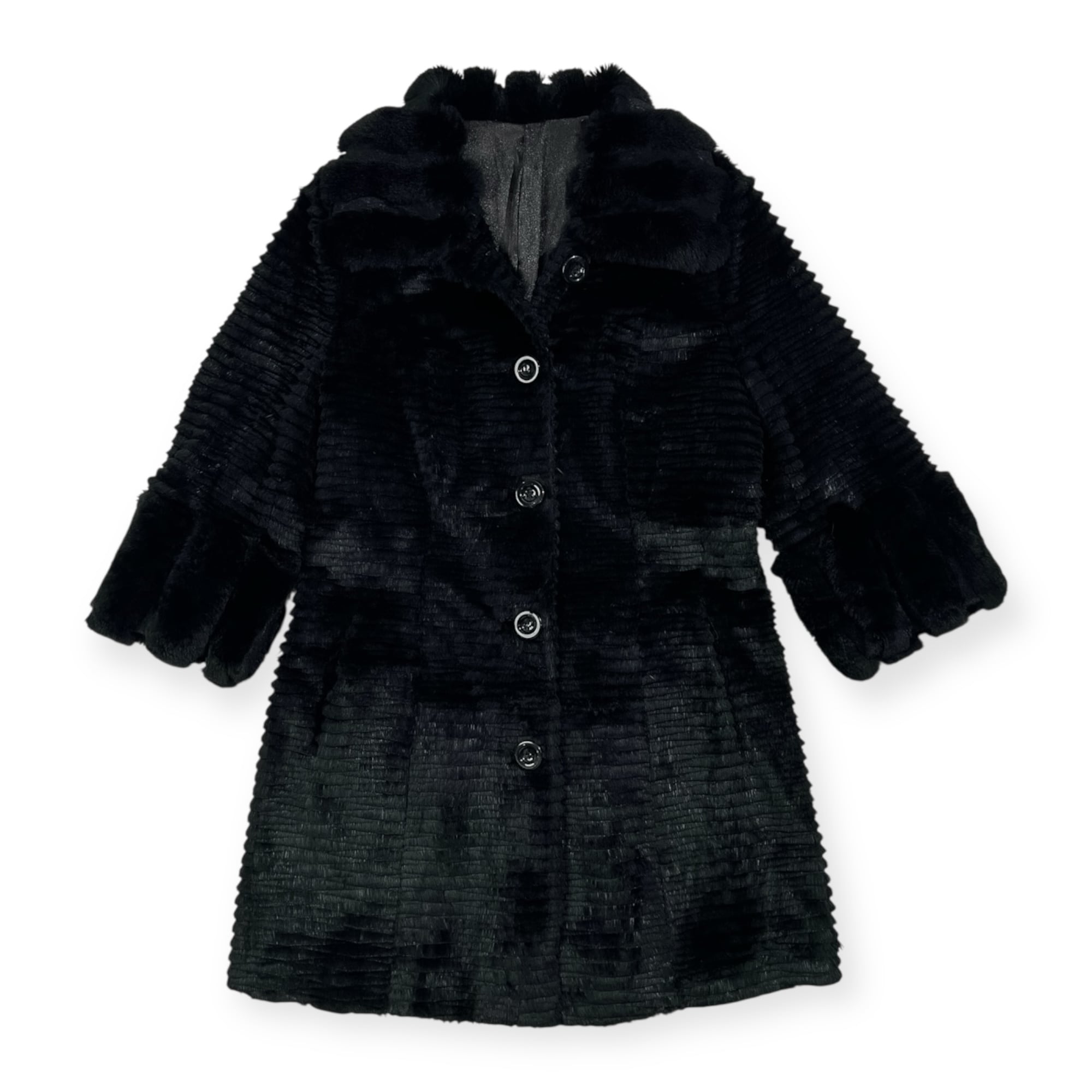 本毛皮 LORITTI ロリッティ 高級 毛皮 ラビット & レッキス ファー コート サイズ L /ブラック系/レディース