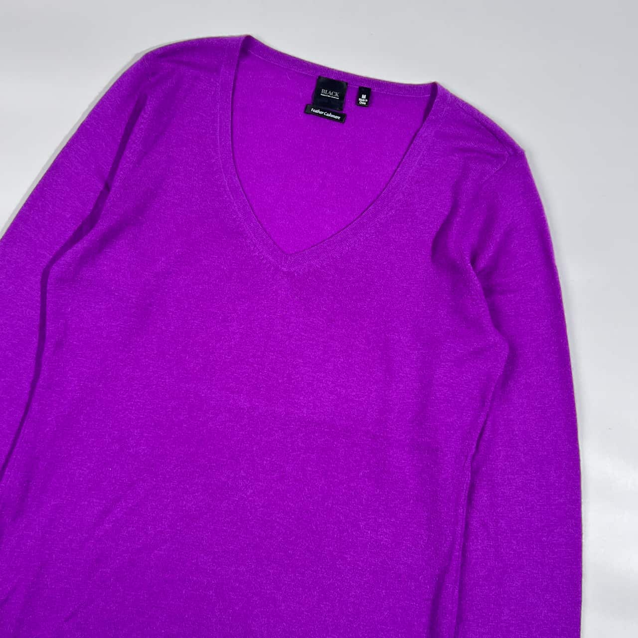 カシミヤ100% BLACK Saks Fifth Avenue ブラック Vネック ハイゲージ ニット セーター M/パープル レディース