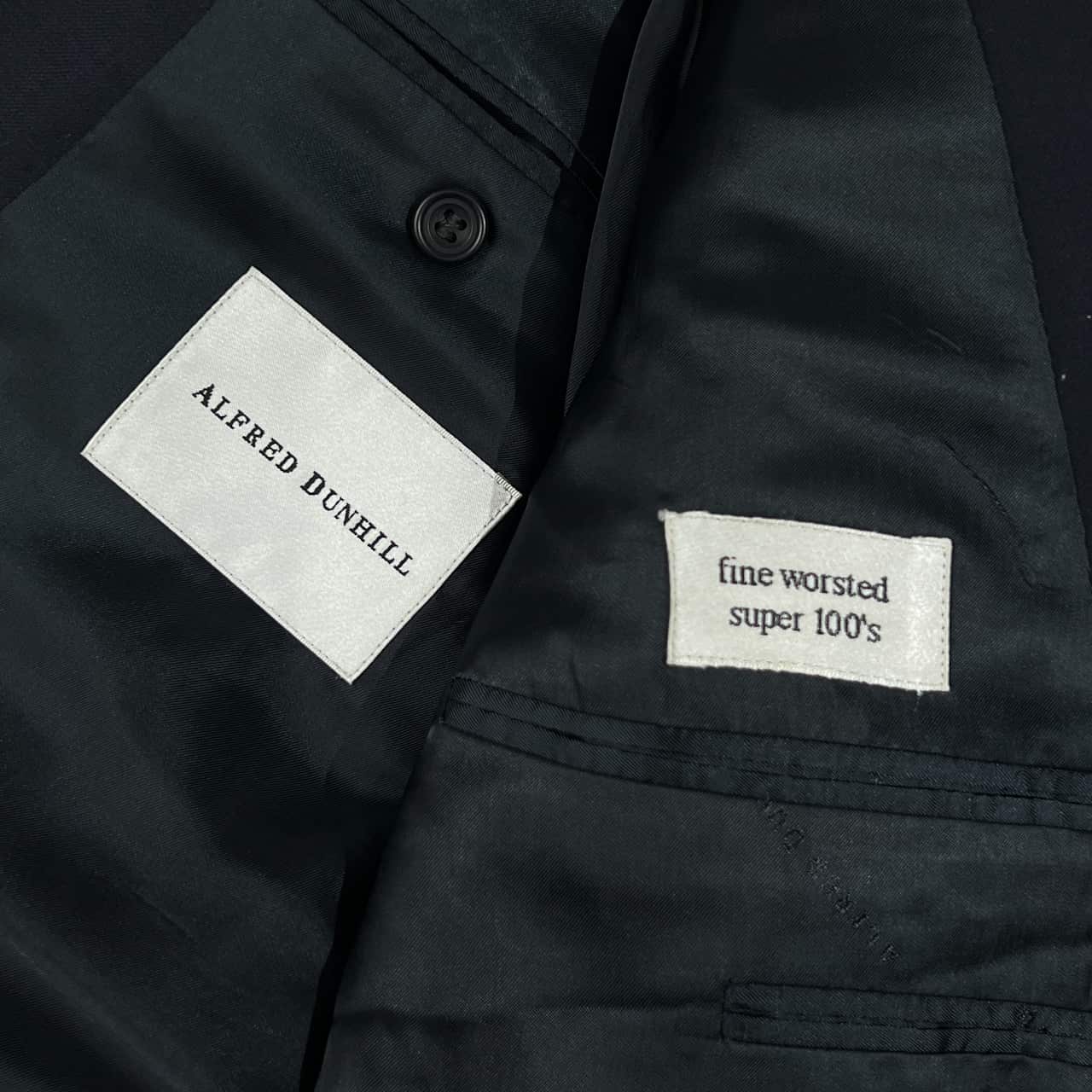 上下 イタリア製 ALFRED DUNHILL アルフレッドダンヒル ボタンデザイン super 100s ダブル テーラードジャケット パンツ スーツ 48/ネイビー ブラック メンズ