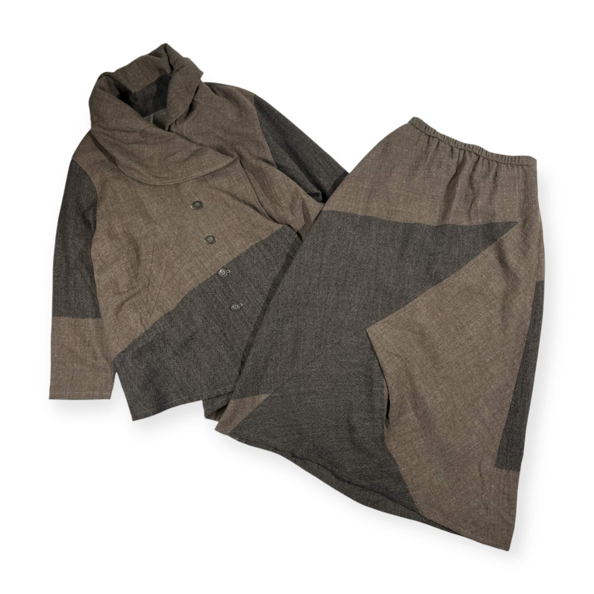 上下 慈雨 ジウ デザイン セットアップ ジャケット スカート 40/ベージュ グレー レディース