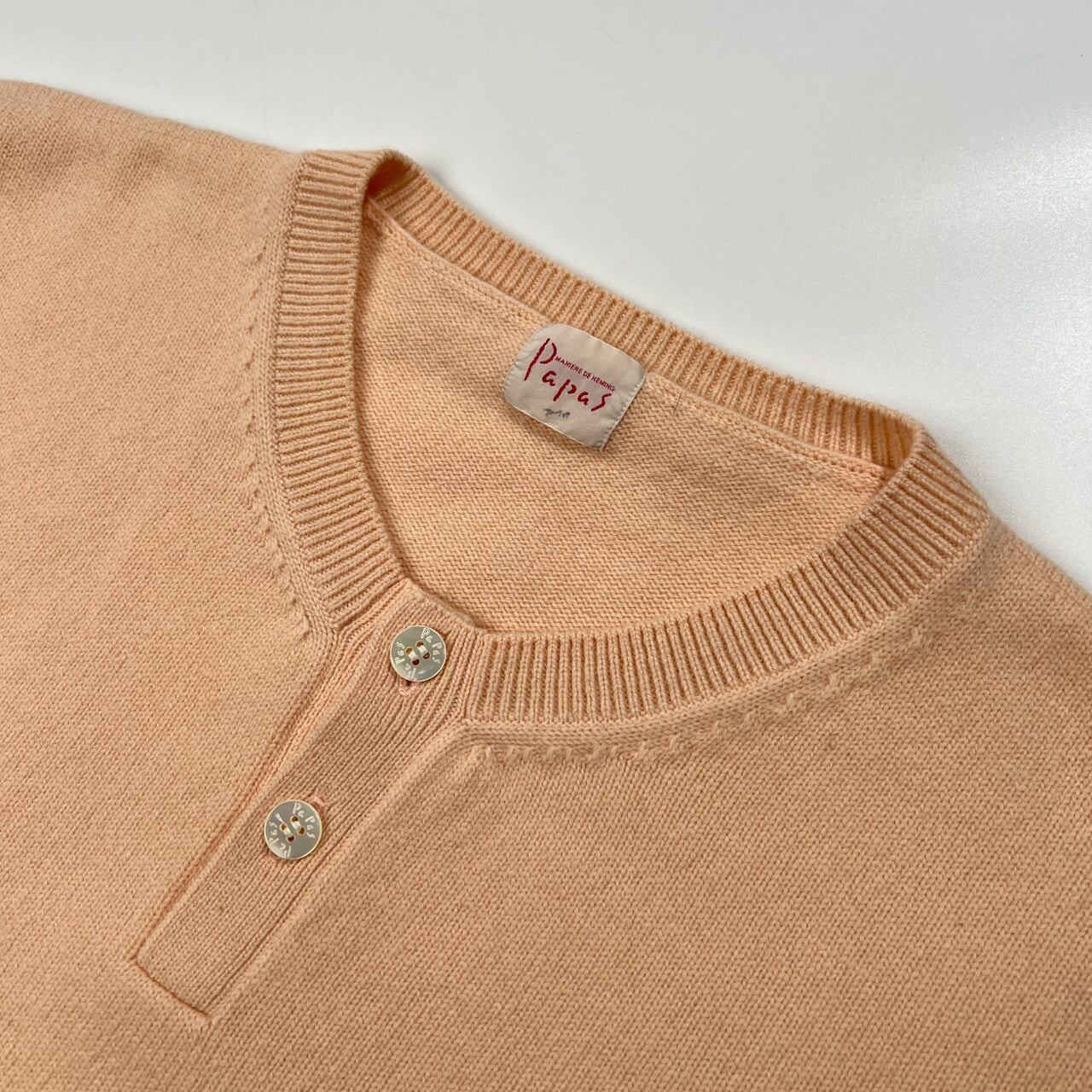 カシミヤ混 PAPAS パパス ヘンリー ウールニットセーター サイズ L /ペールオレンジ系/メンズ/日本製