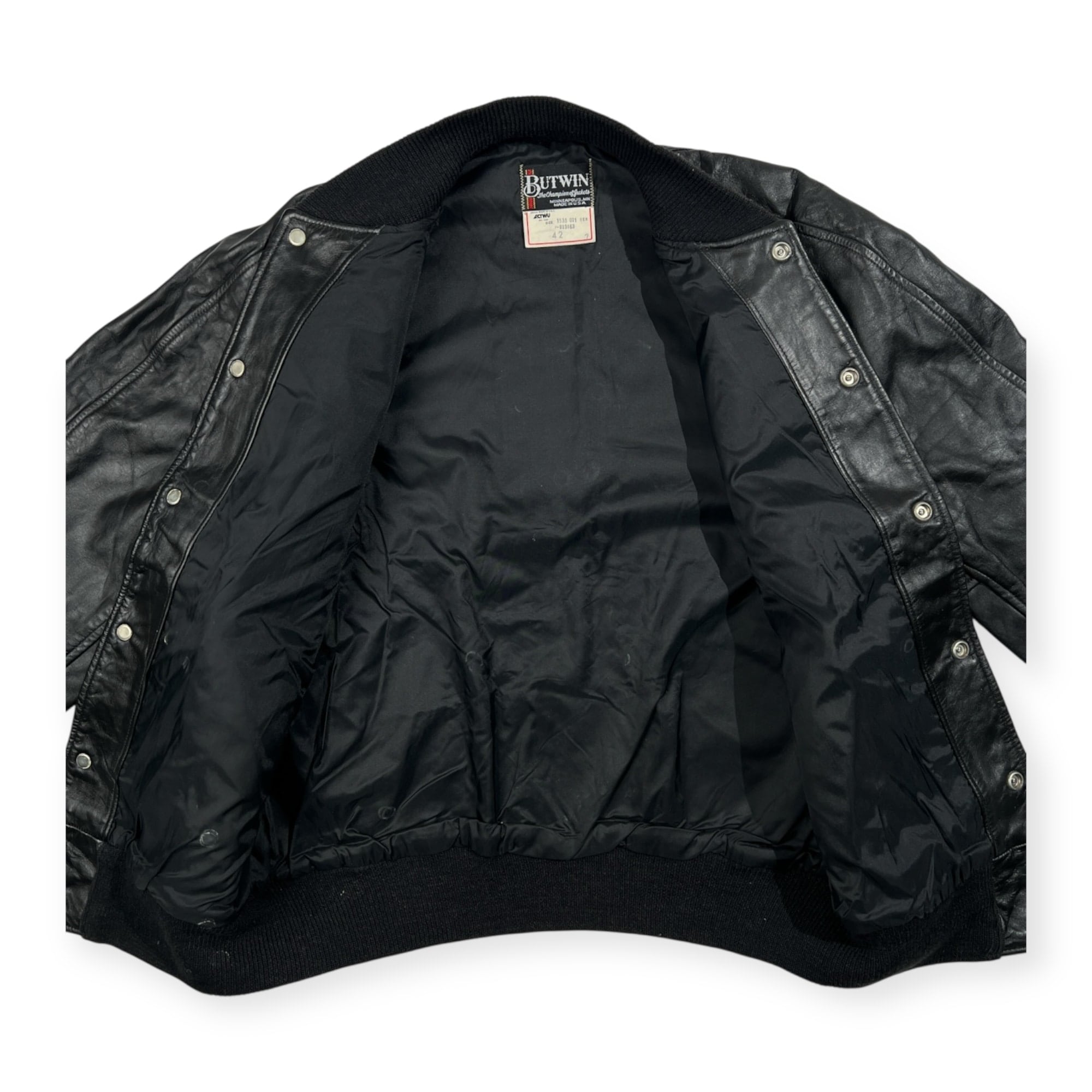 80s BUTWIN バトウィン オールレザー ビンテージ スタジャン バーシティジャケット サイズ 42 /オールブラック/オールド