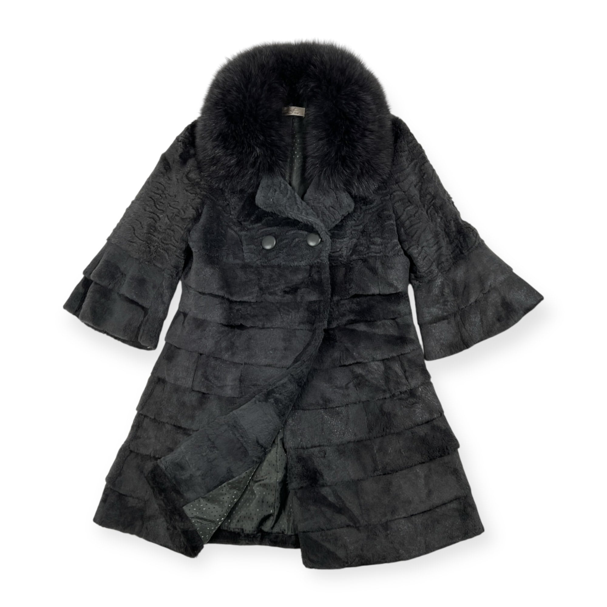 本毛皮 f shop ラビット & ブルーフォックス リアルファー デザイン コート サイズ M /チャコールグレー系/レディース