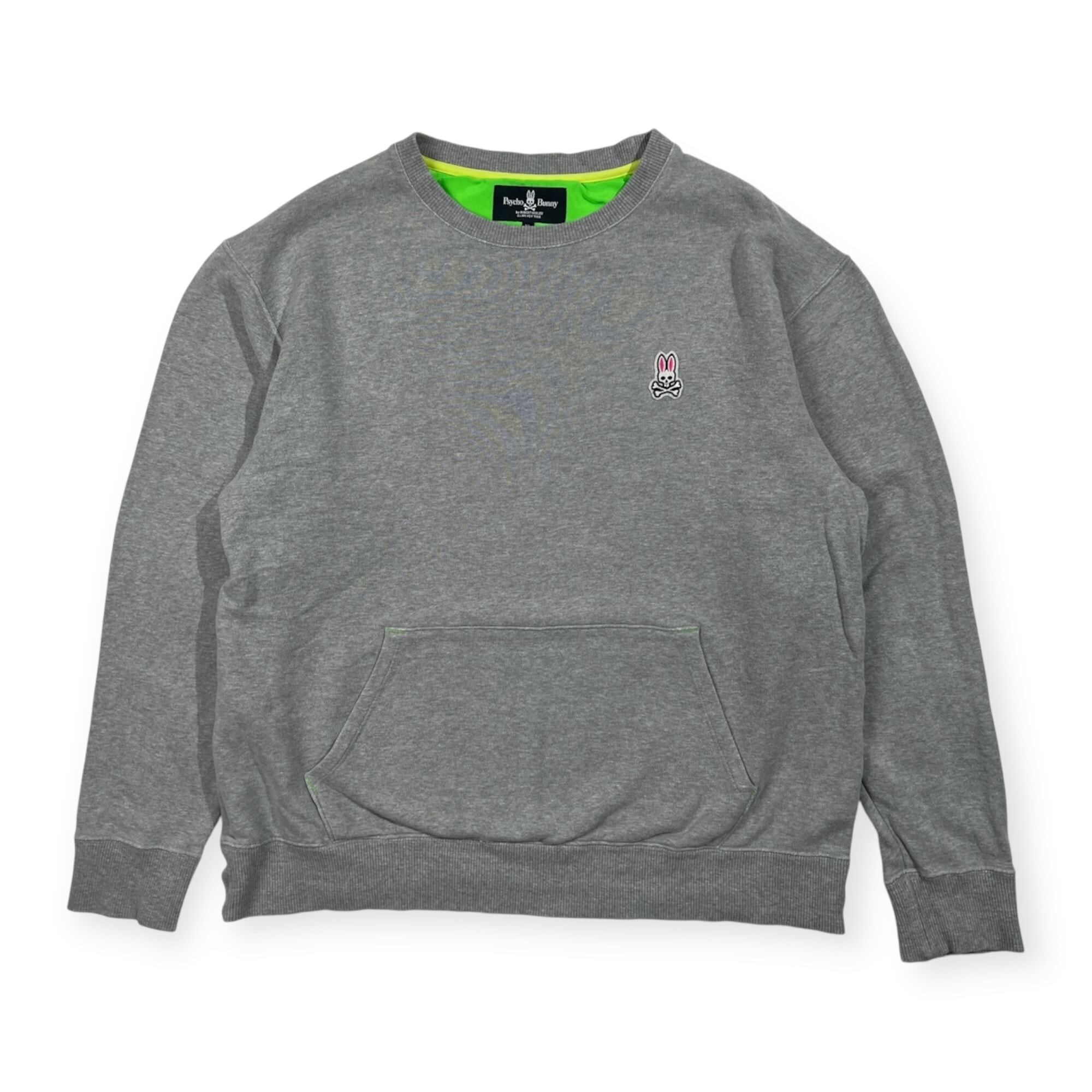 Psycho Bunny サイコバニー ワンポイントワッペン スウェット トレーナー サイズ XL /メンズ/グレー×蛍光グリーン/日本製