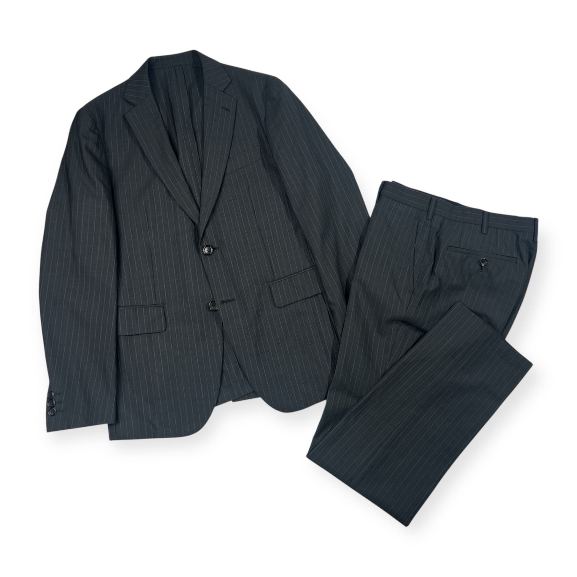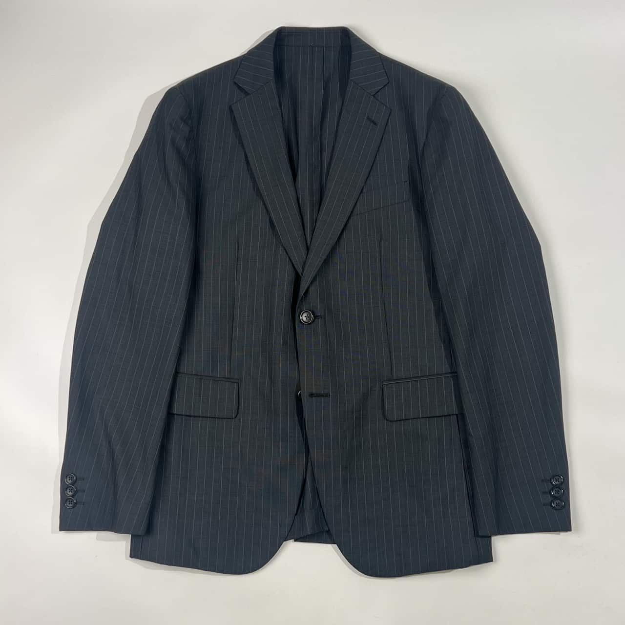 上下 TAKEO KIKUCHI タケオキクチ NIKKE MAF生地 ストライプ テーラードジャケット スラックス スーツ 2/ダークグレー系 メンズ