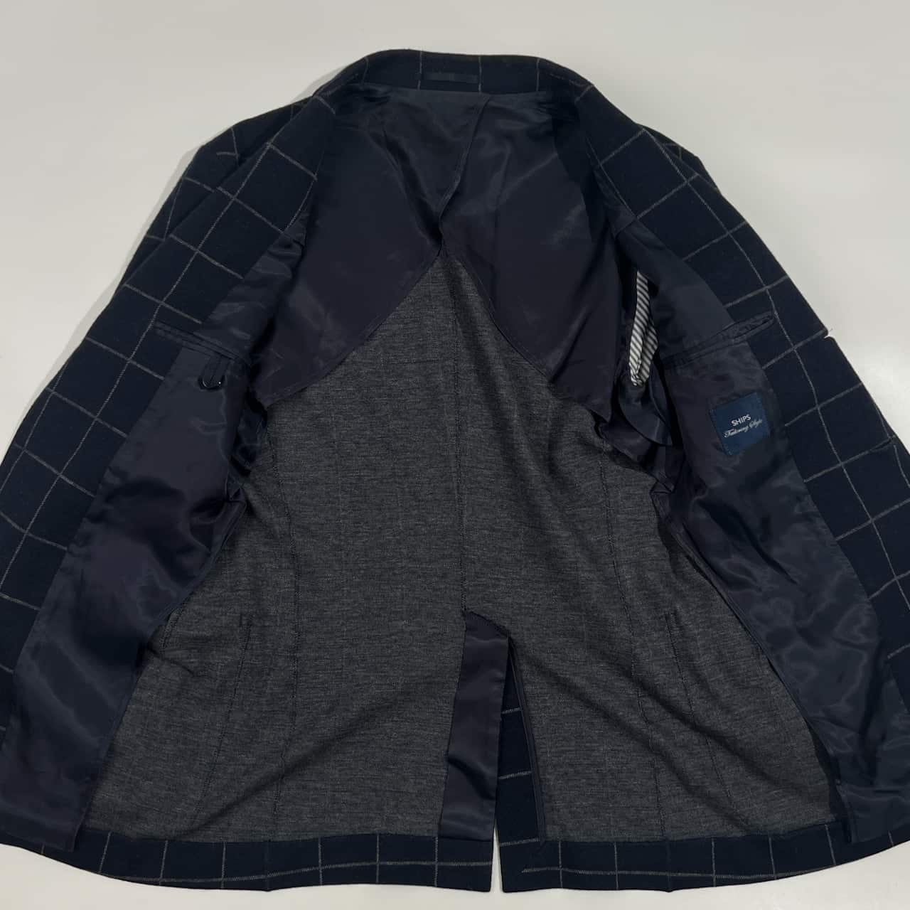 SHIPS シップス Tailoring Style チェック 段返3B テーラードジャケット 42/ネイビー系 メンズ