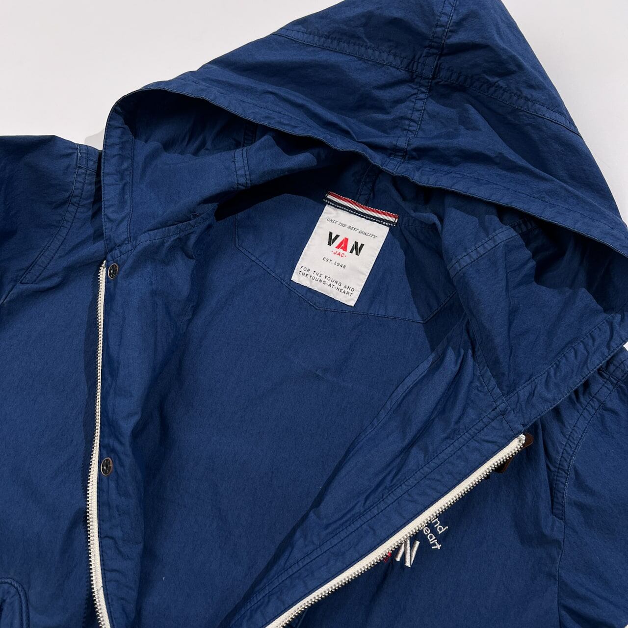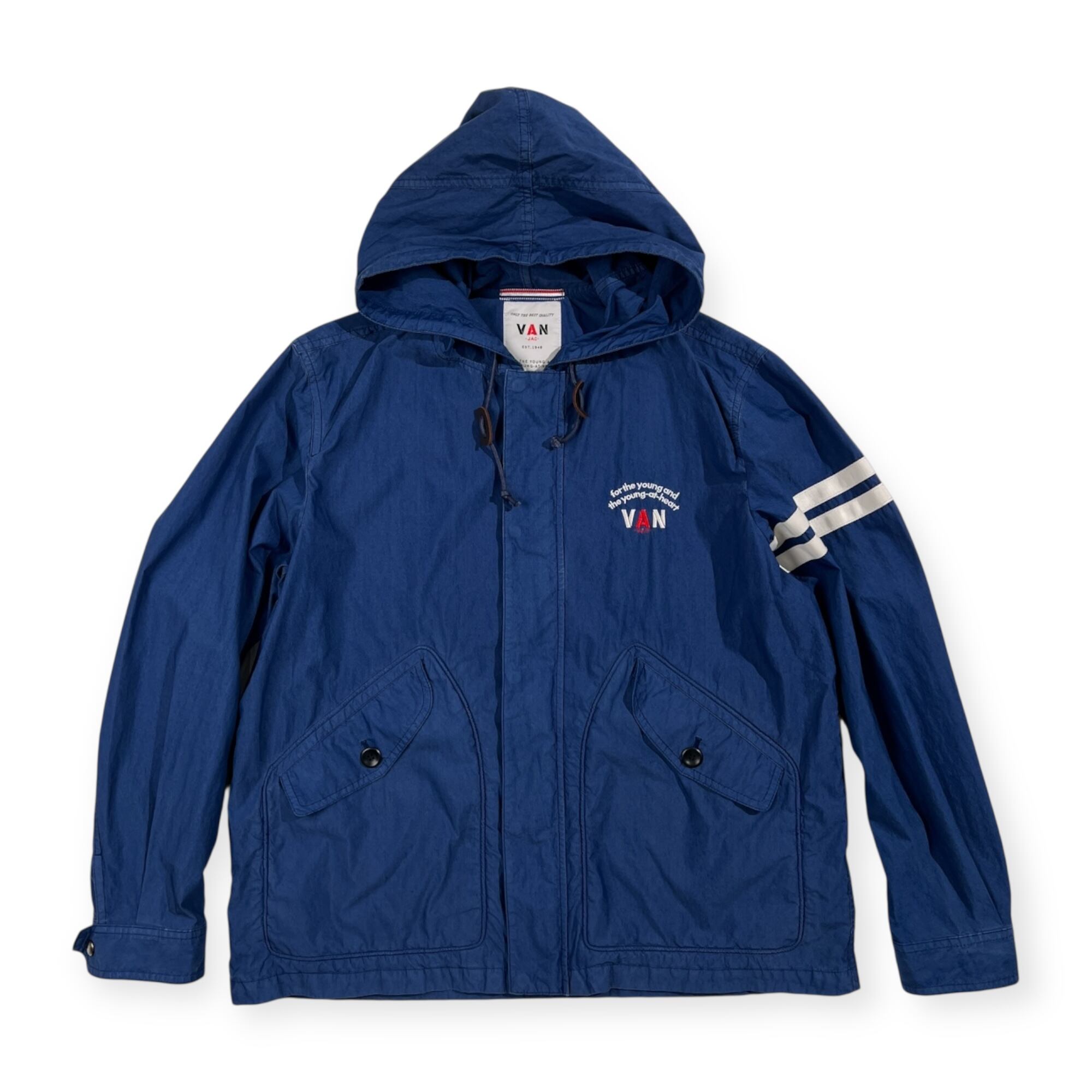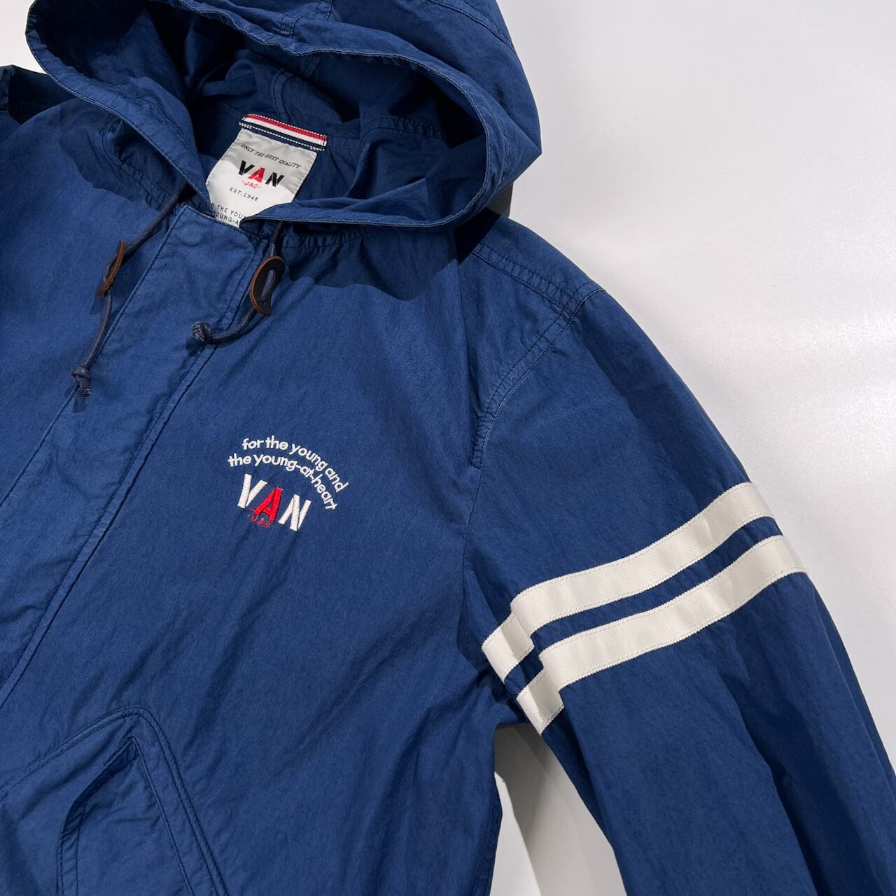 VAN JAC ヴァンヂャケット 袖ライン入り フード ライト ジャケット パーカー コットン&ナイロン サイズ LL /ブルー/メンズ