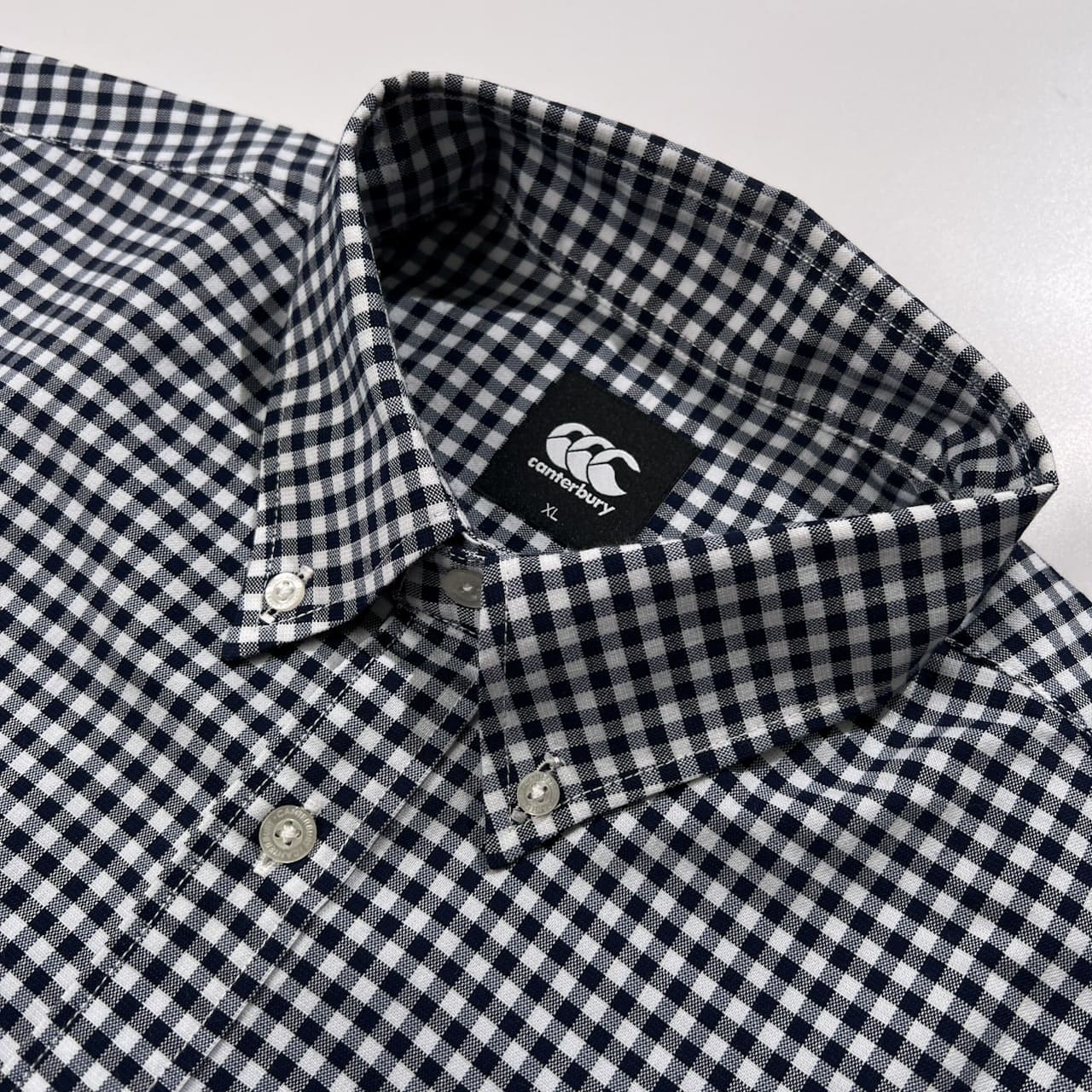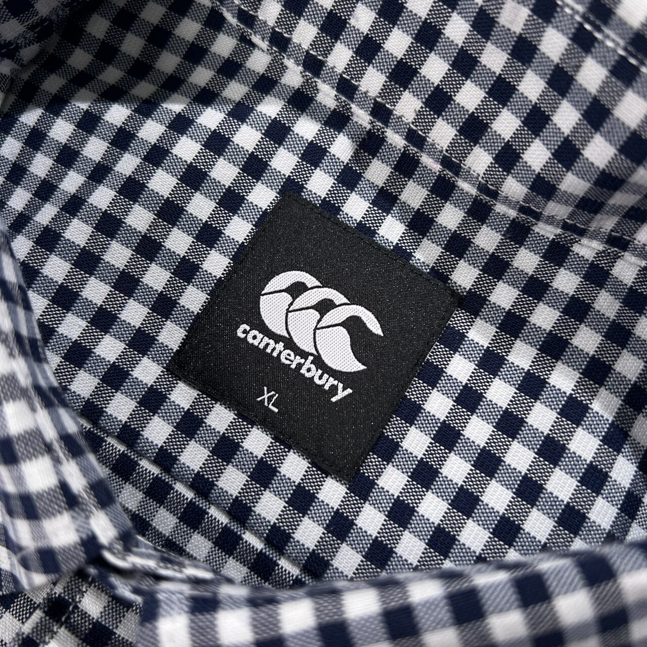 美品 CANTERBURY カンタベリー ギンガムチェック BD オックスフォード シャツ 長袖 プリマロフト サイズ XL /ホワイト×ネイビー/メンズ
