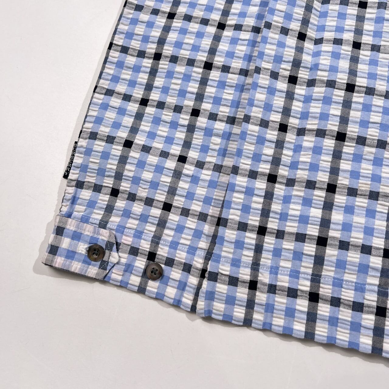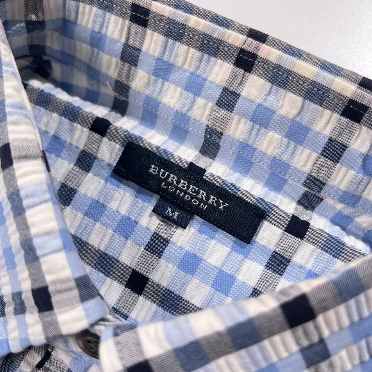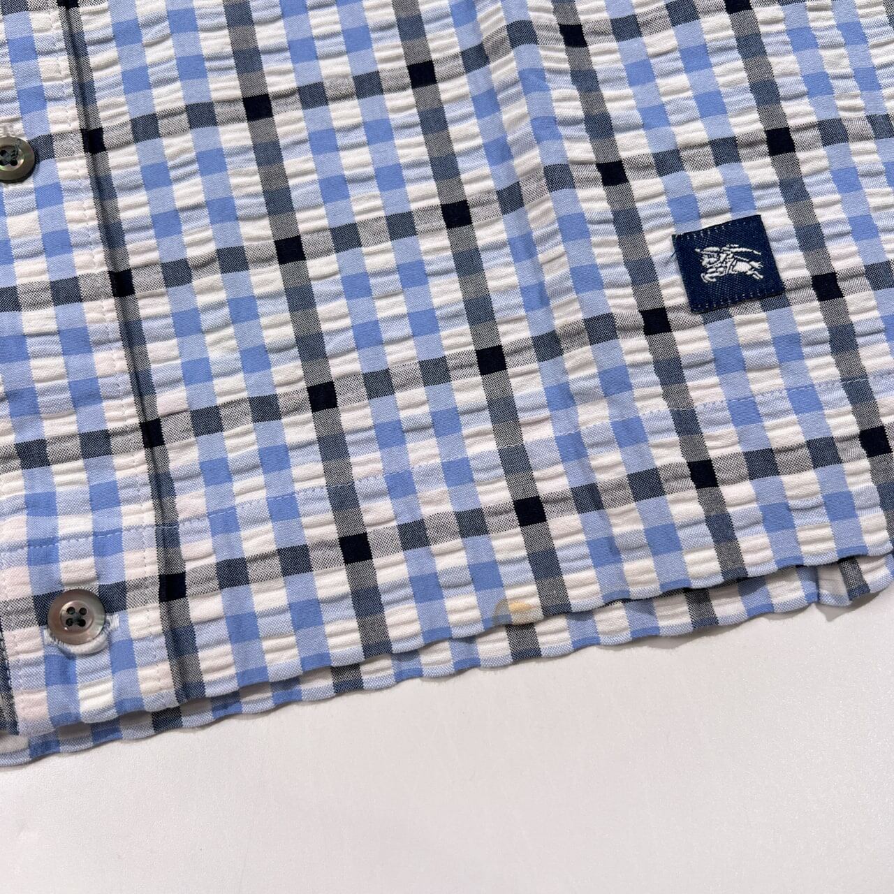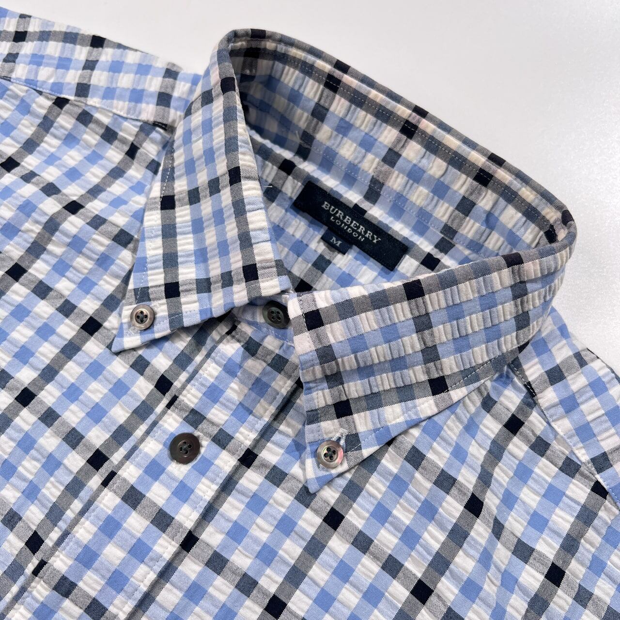 BURBERRY LONDON バーバリー チェック柄 シアサッカー BD 半袖シャツ サイズ M /ブルー系/三陽商会/メンズ