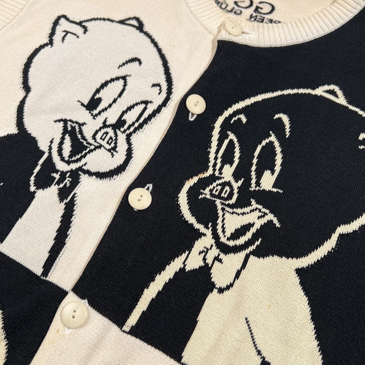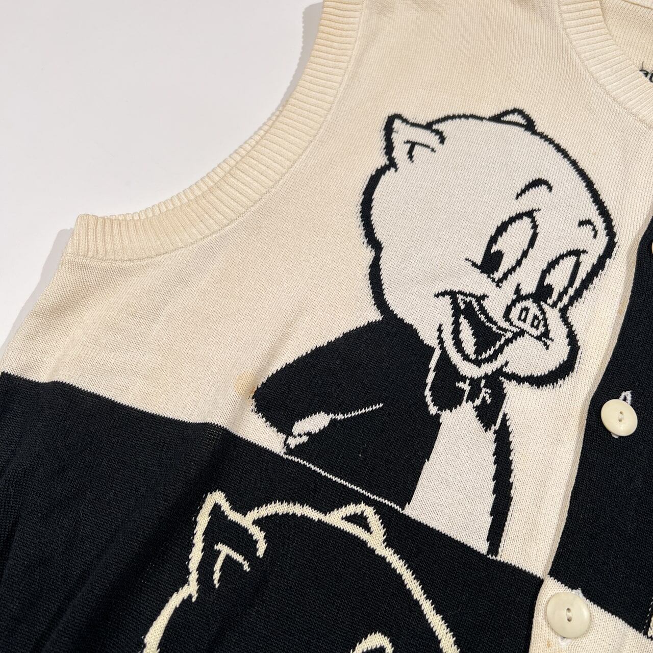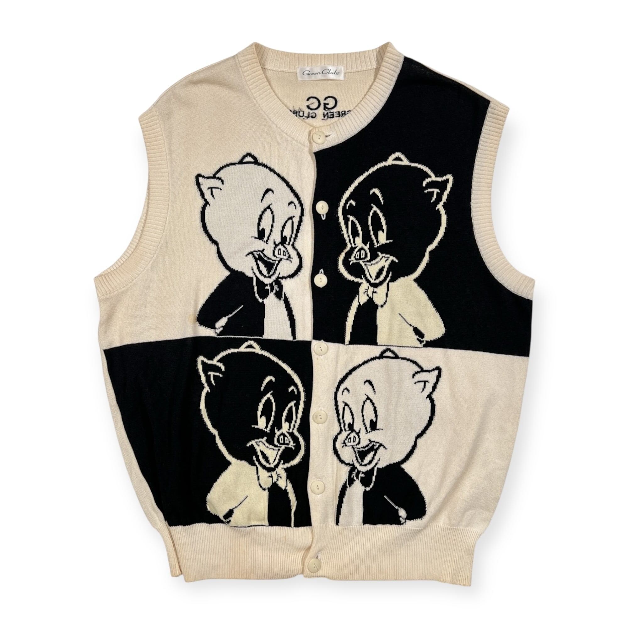 GREENCLUBS グリーンクラブ ポーキーピッグ 前ボタン コットンニット ベスト サイズ 5 /メンズ/アイボリー系×ブラック/ワーナー/日本製