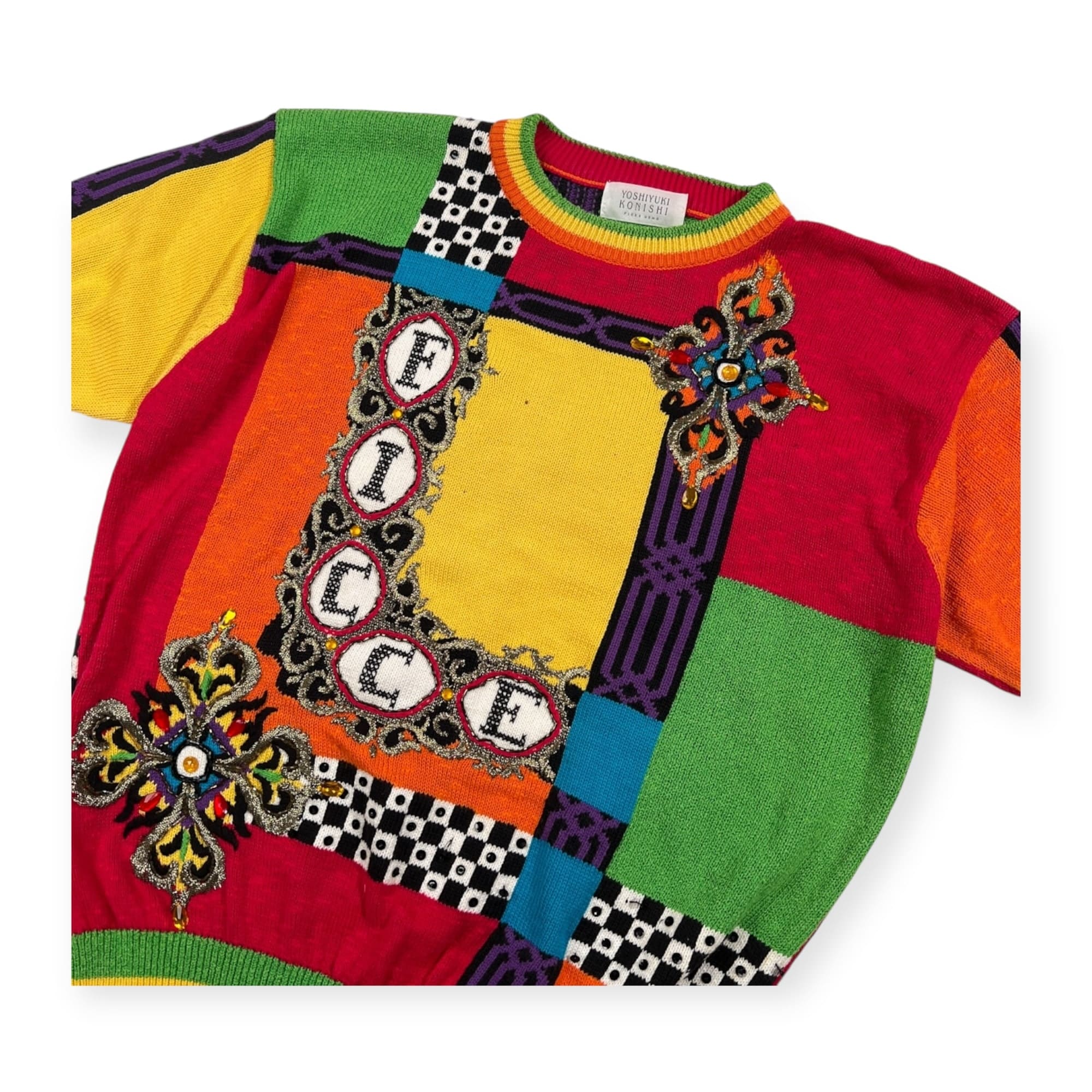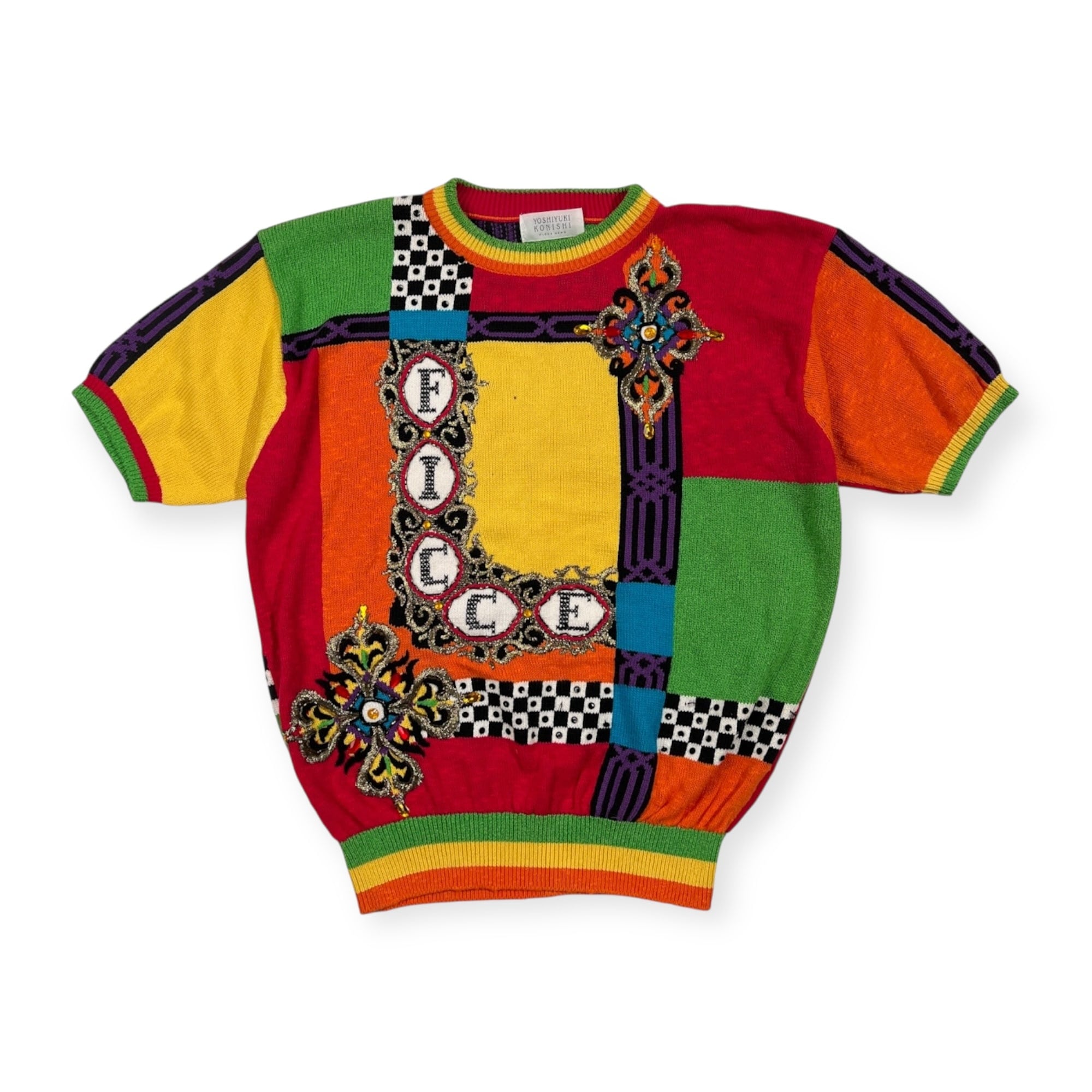 希少 YOSHIYUKI KONISHI ヨシユキコニシ マルチデザイン 3D 半袖 コットンニット セーター /ビンテージ