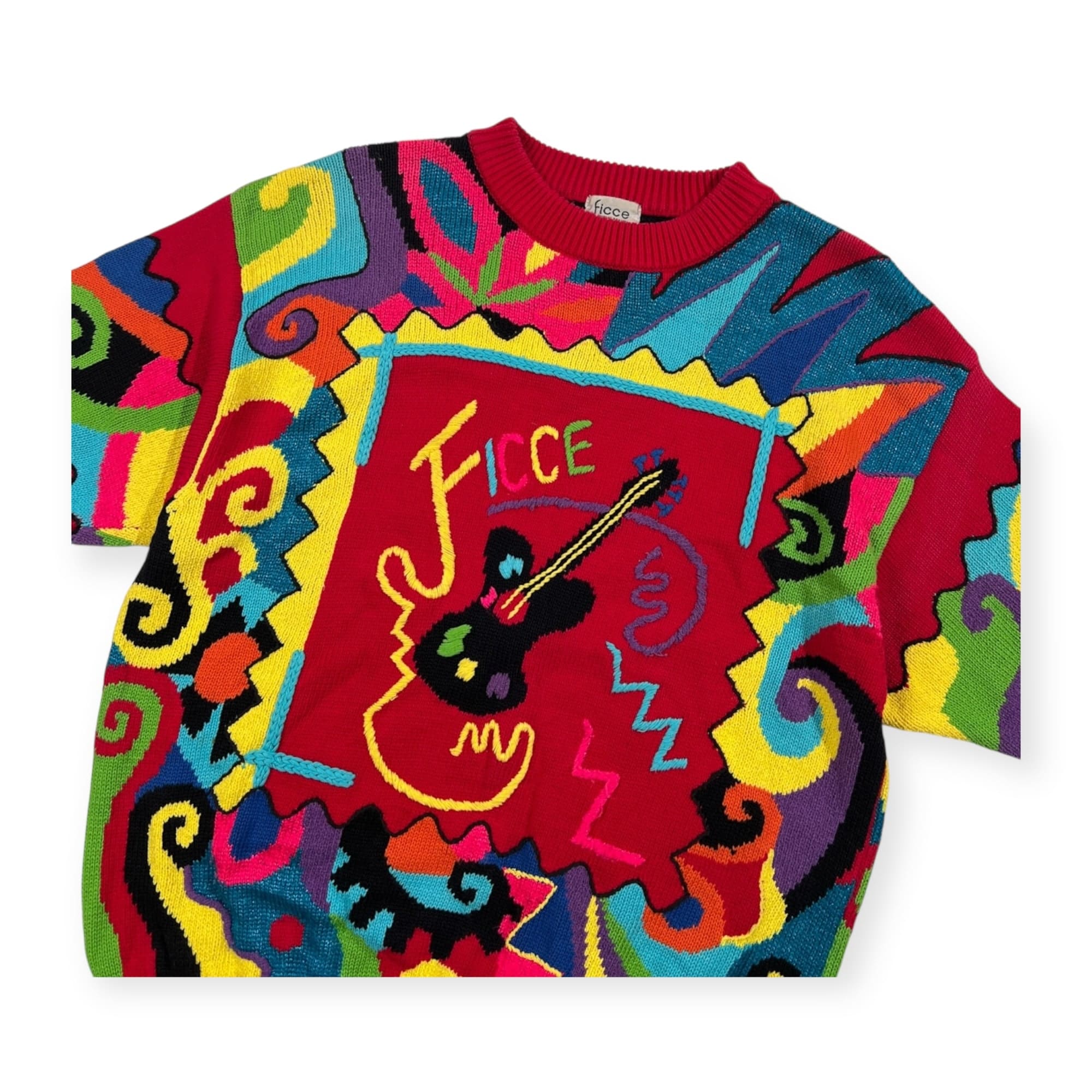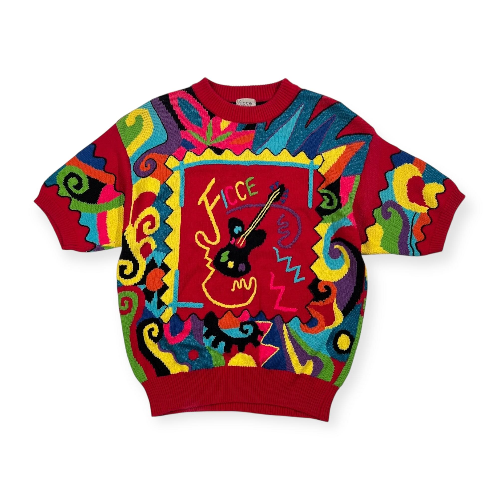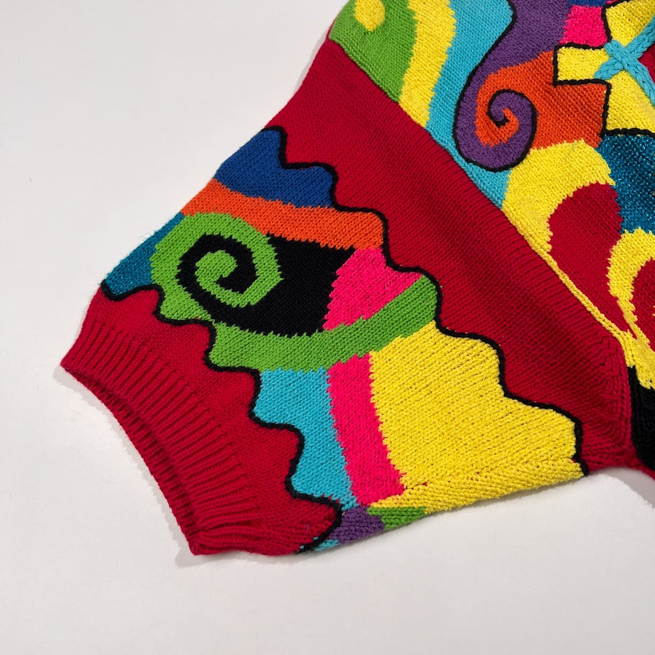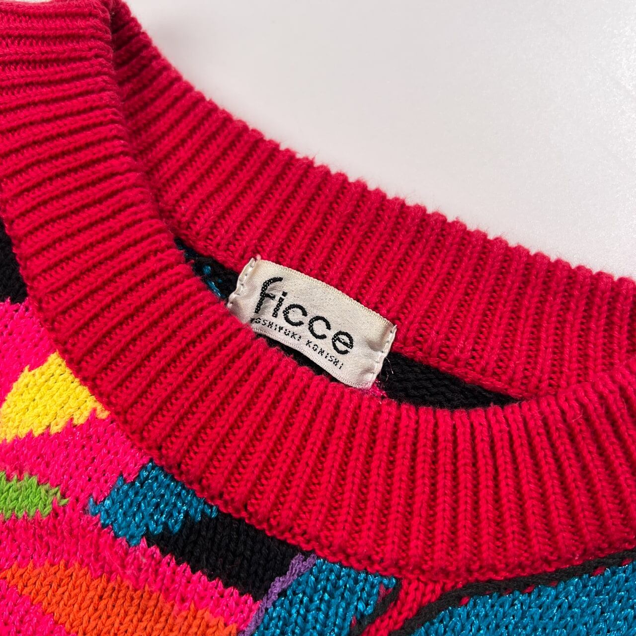 希少 FICCE YOSHIYUKI KONISHI フィッチェ ヨシユキコニシ 3D デザイン 半袖 コットンニット セーター /マルチ/ビンテージ