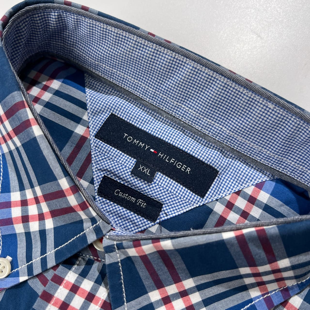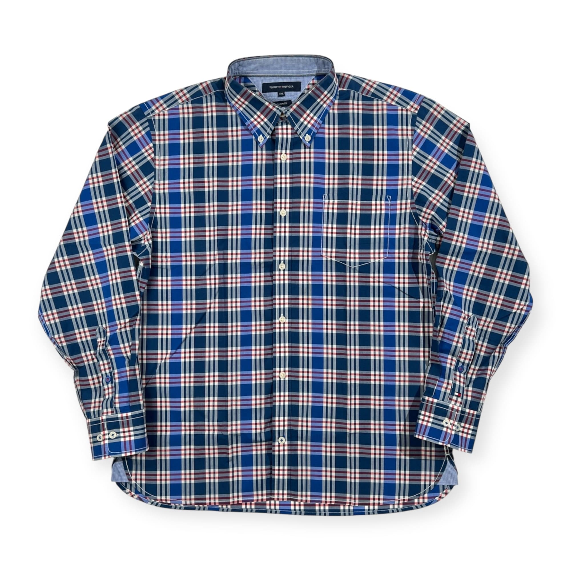美品 TOMMY HILFIGER トミーヒルフィガー チェック柄 BD 長袖シャツ サイズ XXL /ブルー系×レッド/オーバーサイズ