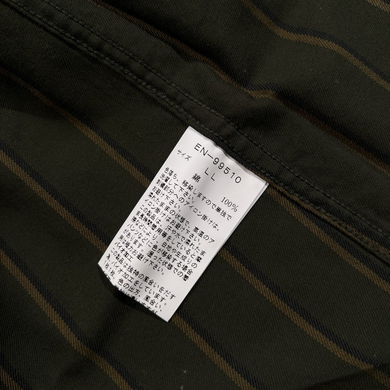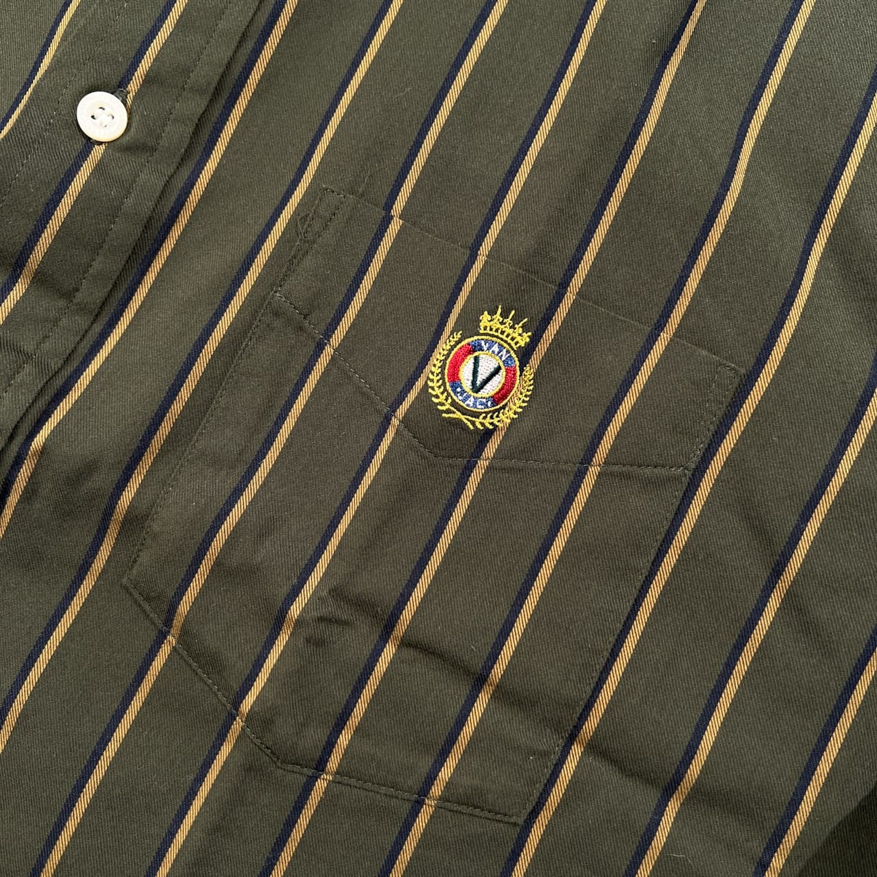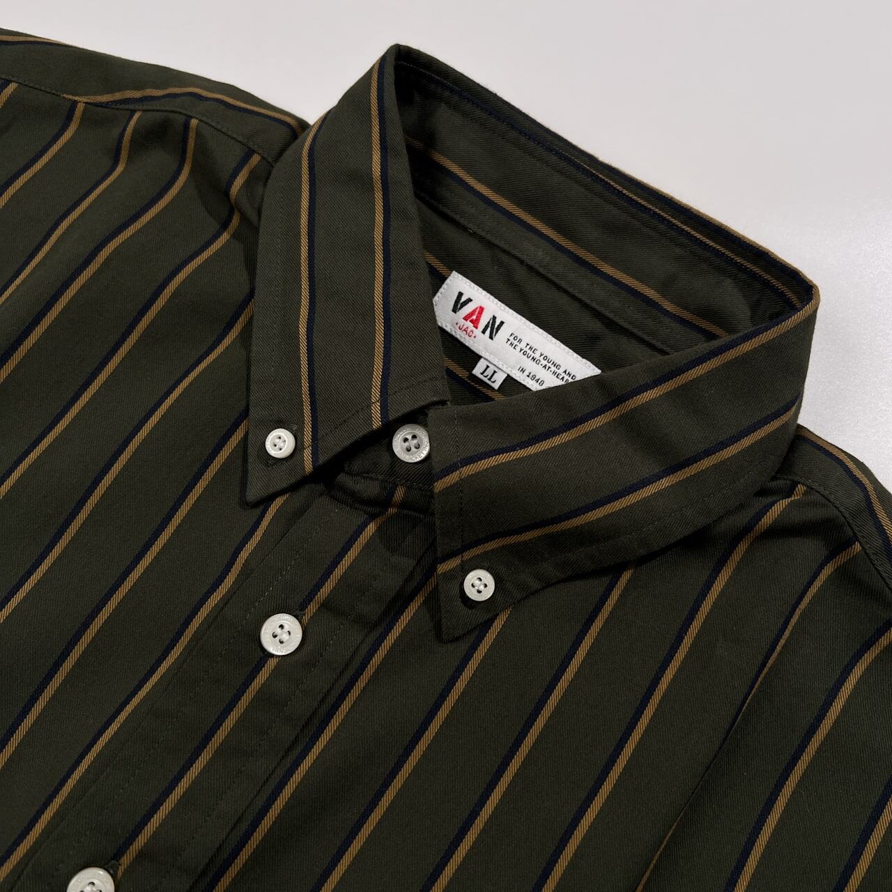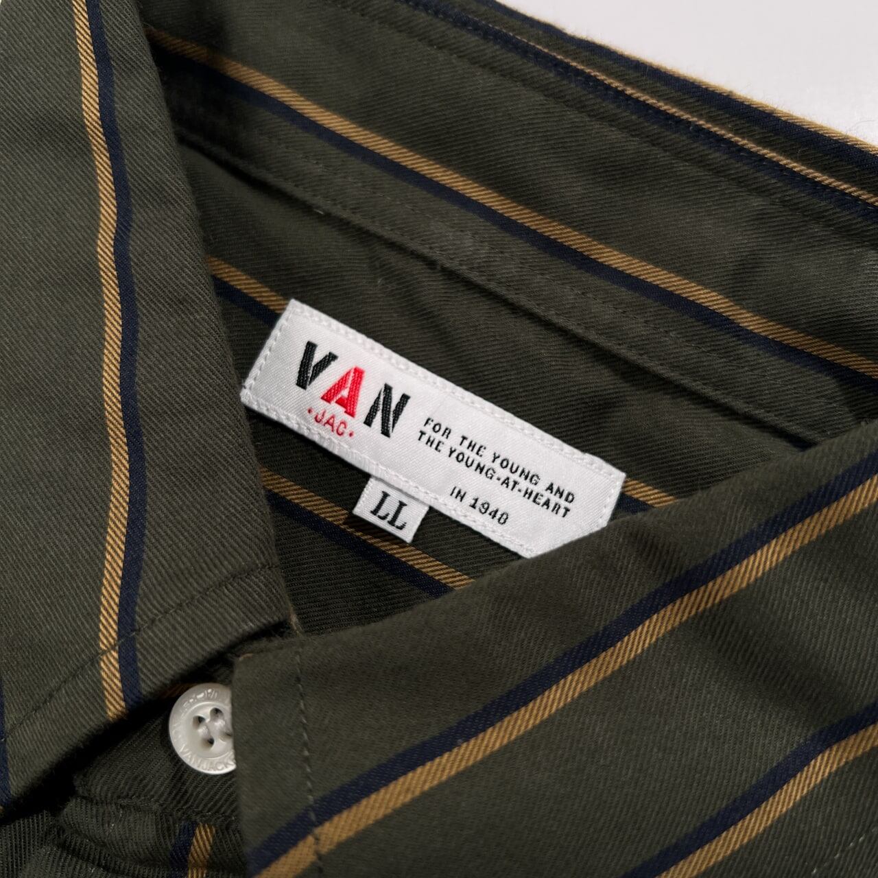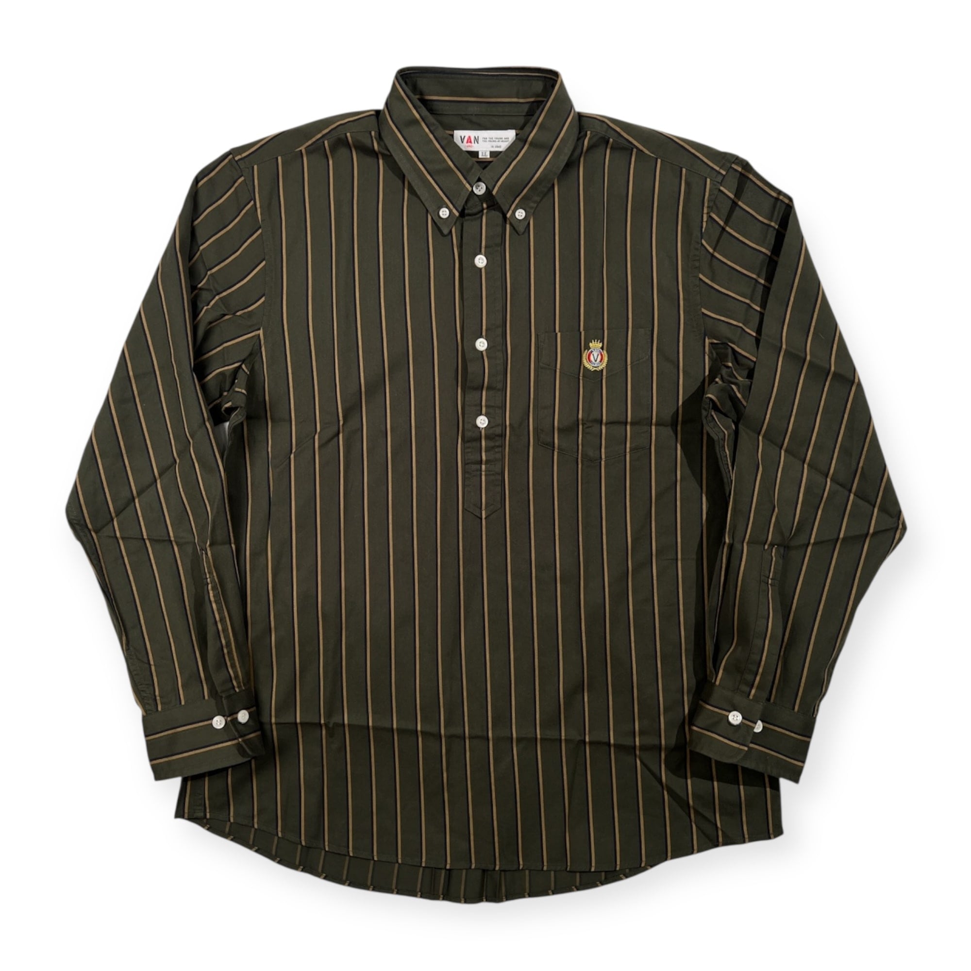 VAN JAC ヴァンヂャケット ワンポイント刺繍 ポケット付き ストライプ プルオーバー BD 長袖シャツ サイズ LL /カーキグリーン系/メンズ