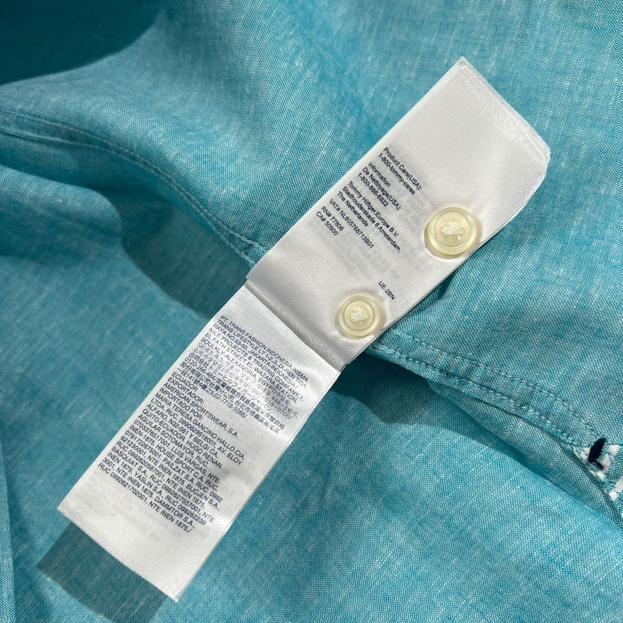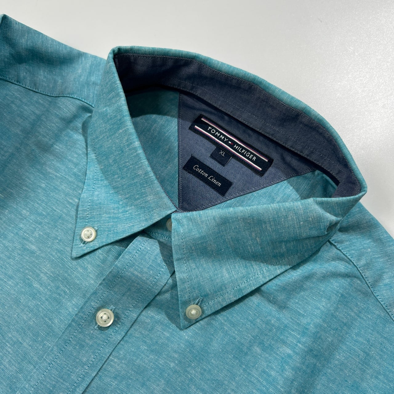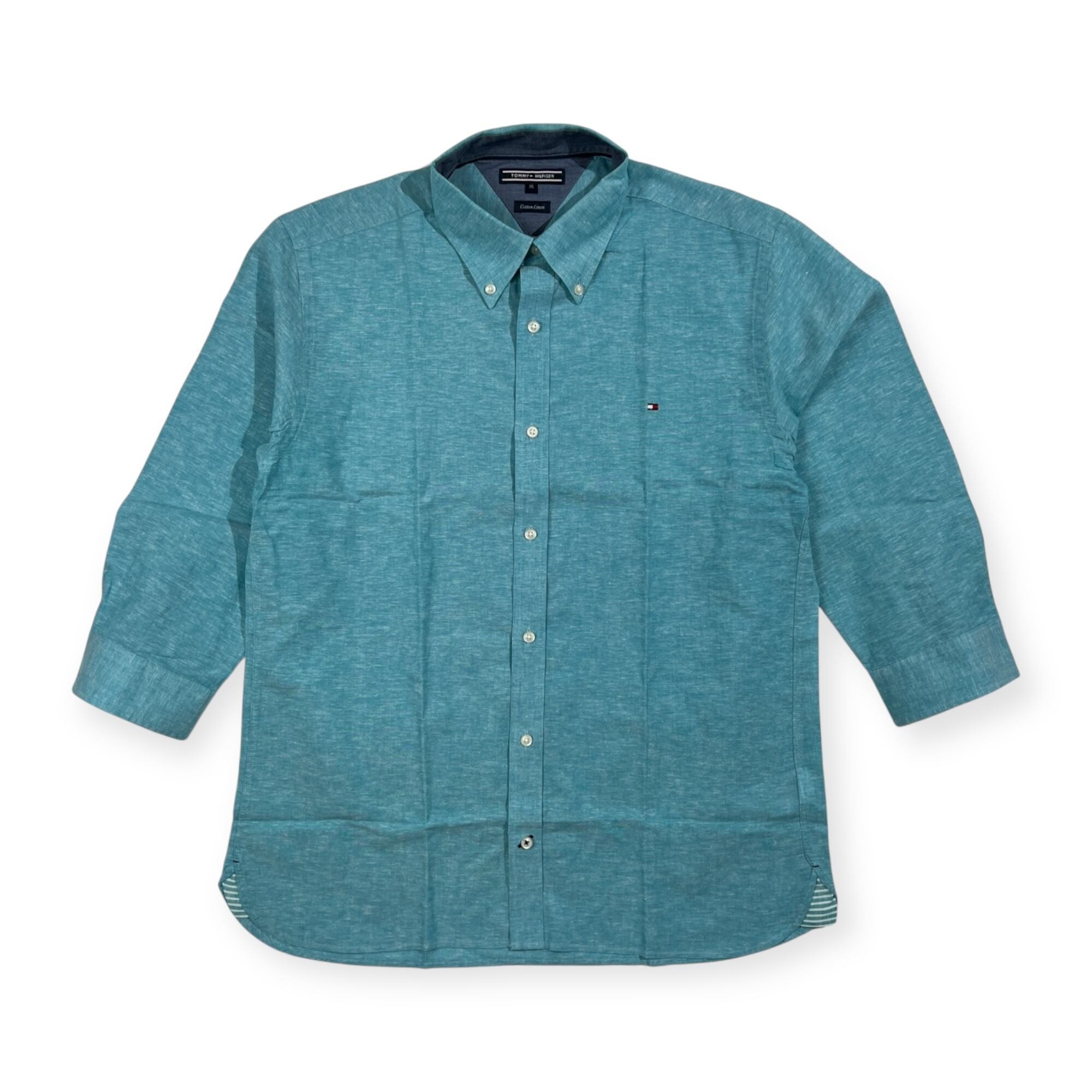 美品 TOMMY HILFIGER トミーヒルフィガー コットン & リネン BD 7分袖 シャツ サイズ XL /ライトブルー系/メンズ