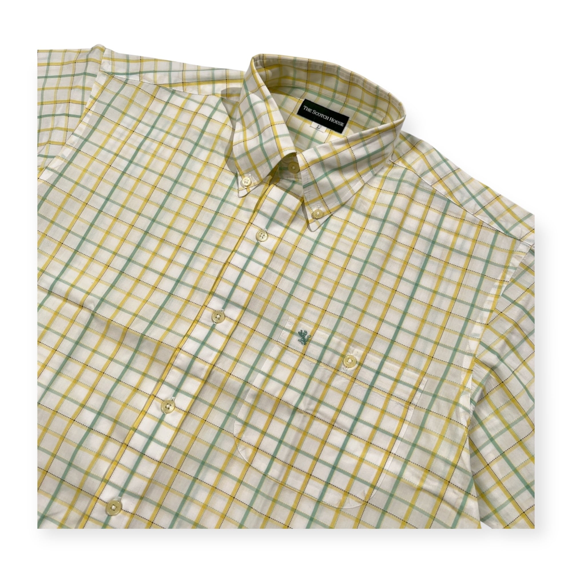 美品 THE SCOTCH HOUSE スコッチハウス チェック柄 BD 半袖シャツ サイズ L /イエロー×グリーン/三陽商会/メンズ