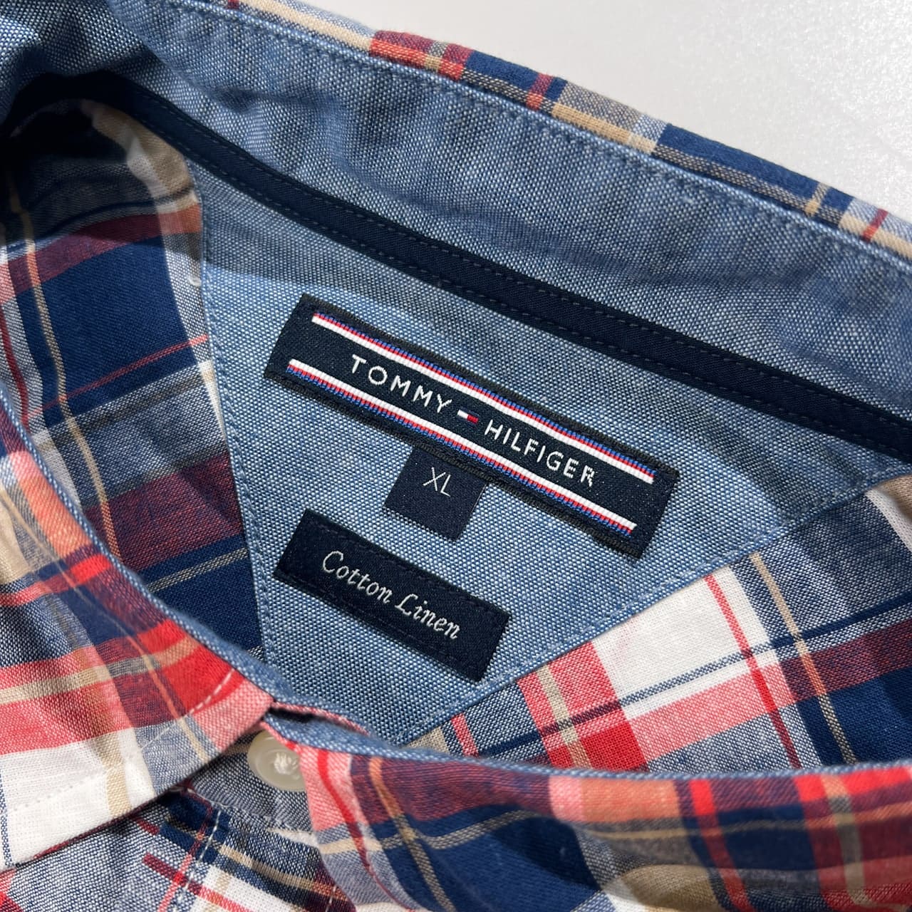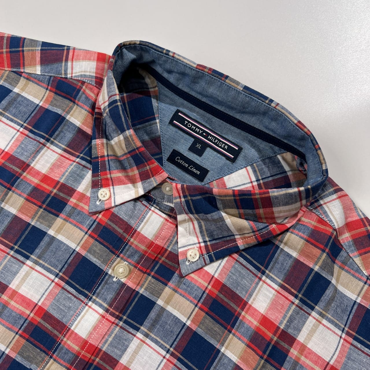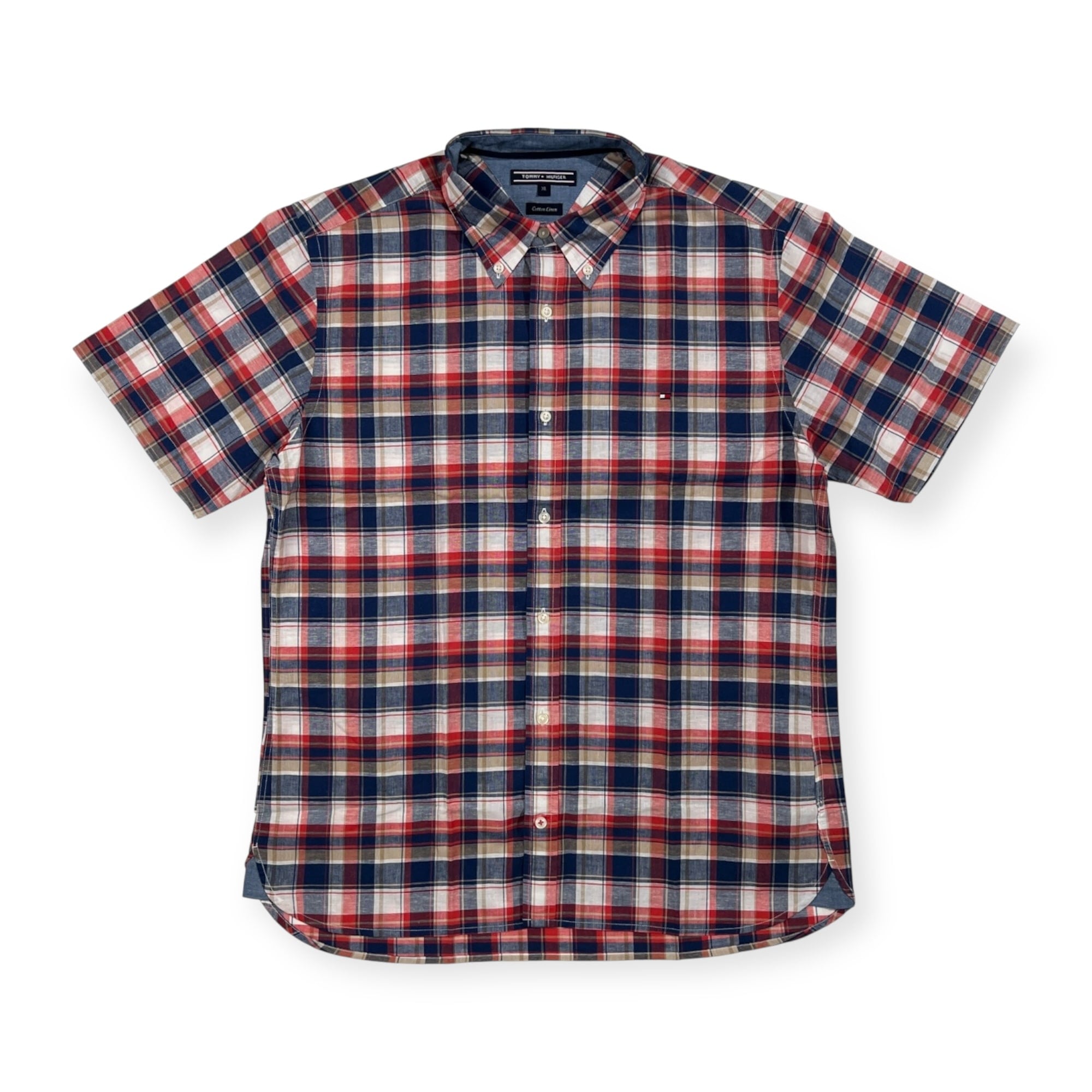 TOMMY HILFIGER トミーヒルフィガー チェック柄 コットン & リネン BD 半袖シャツ サイズ XL /マルチ系/メンズ