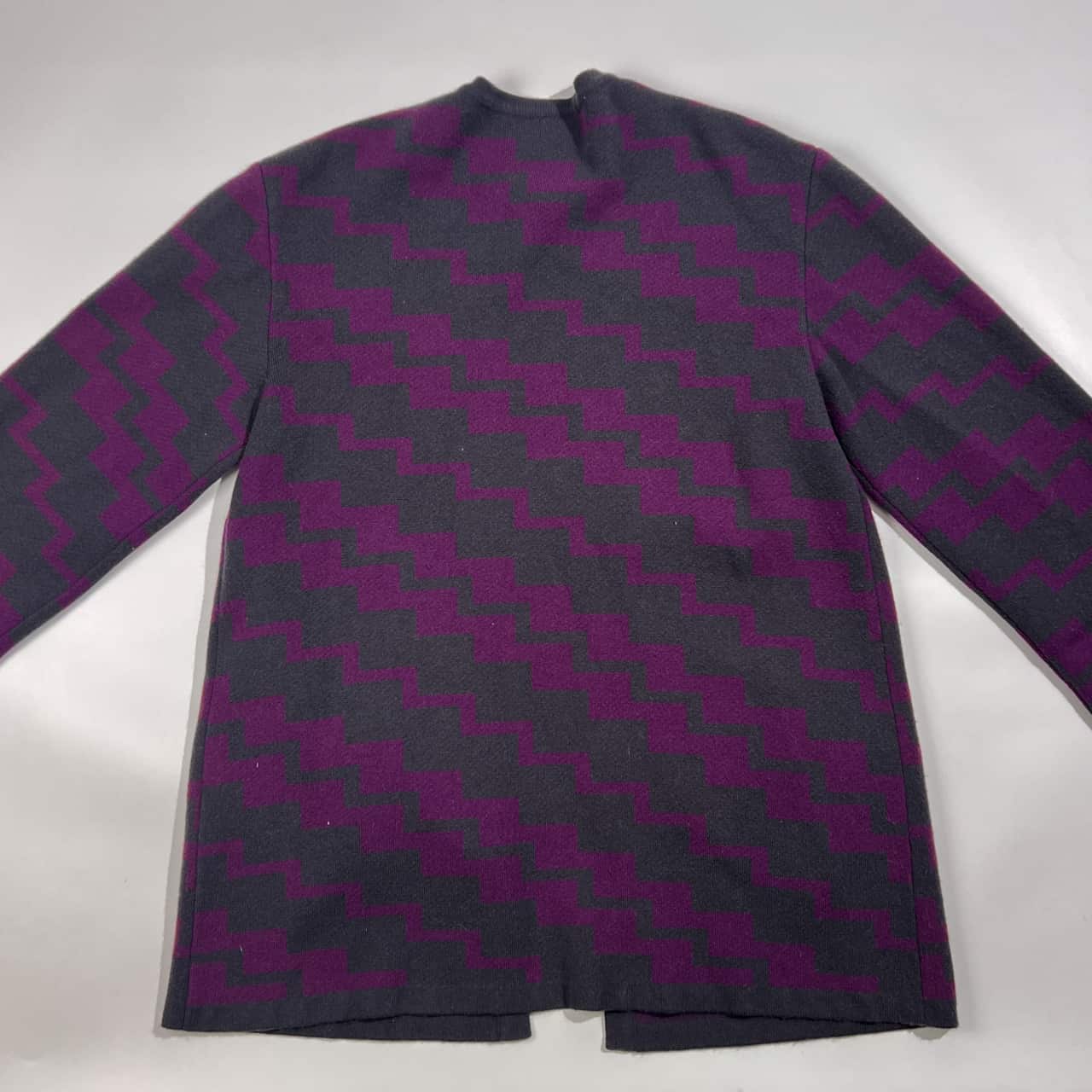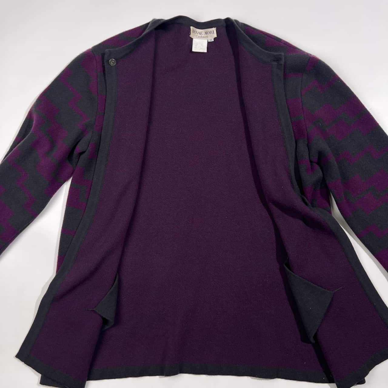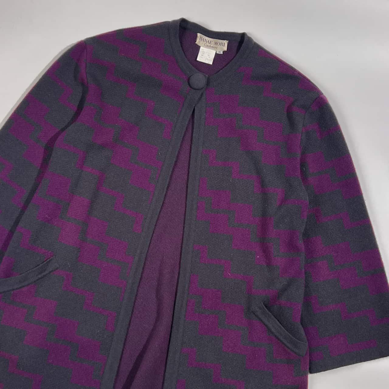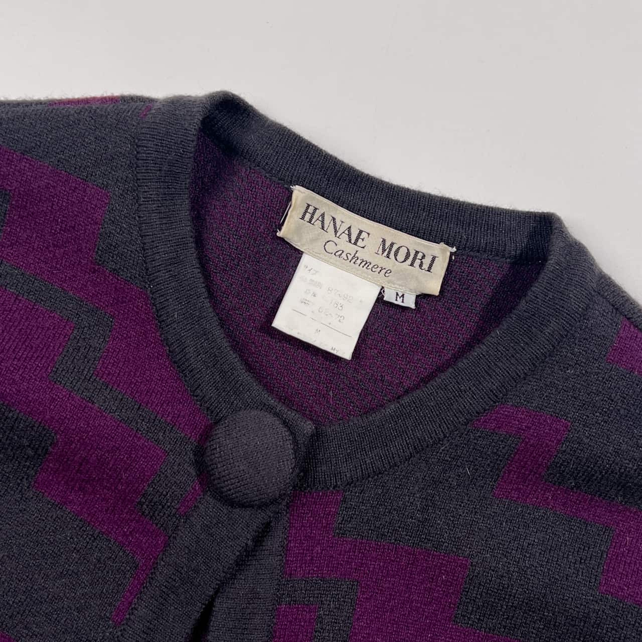 カシミヤ100% HANAE MORI ハナエモリ デザイン ニット カーディガン 羽織 M/グレー×パープル レディース