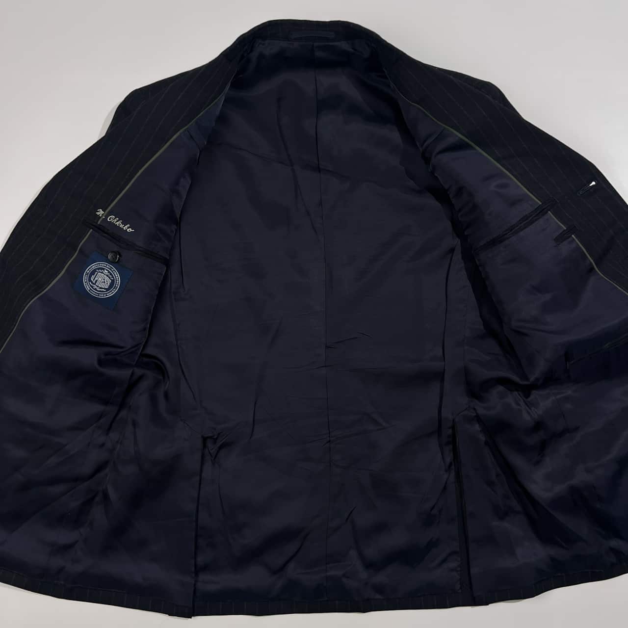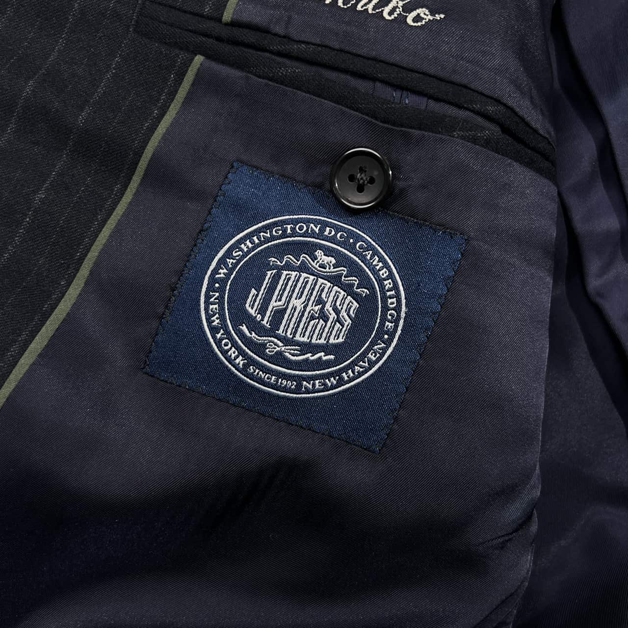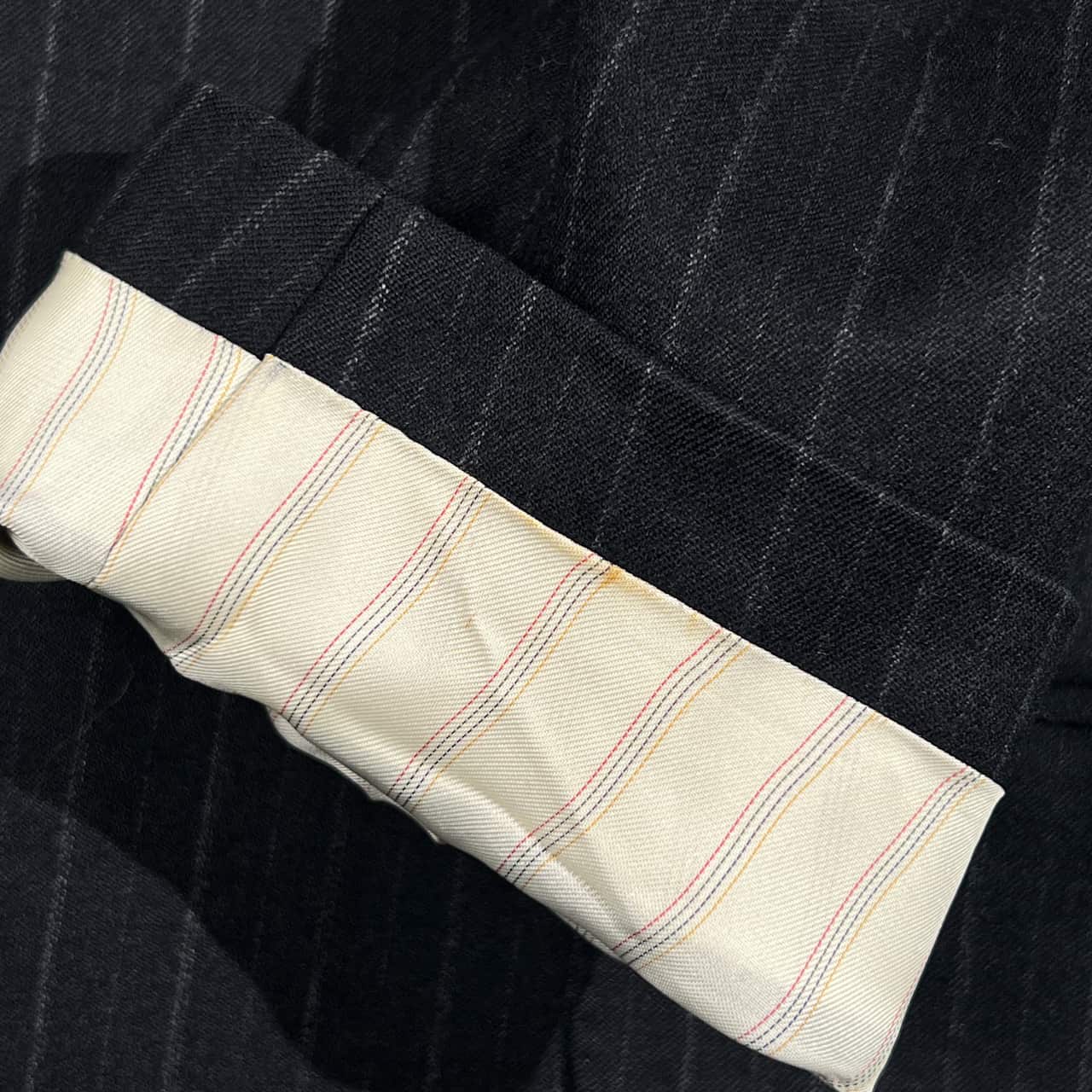 上下 J.PRESS ジェイプレス セットアップ ストライプ テーラードジャケット 裾ダブル スラックス スーツ /ダークグレー ブラック系 メンズ カシミヤ混