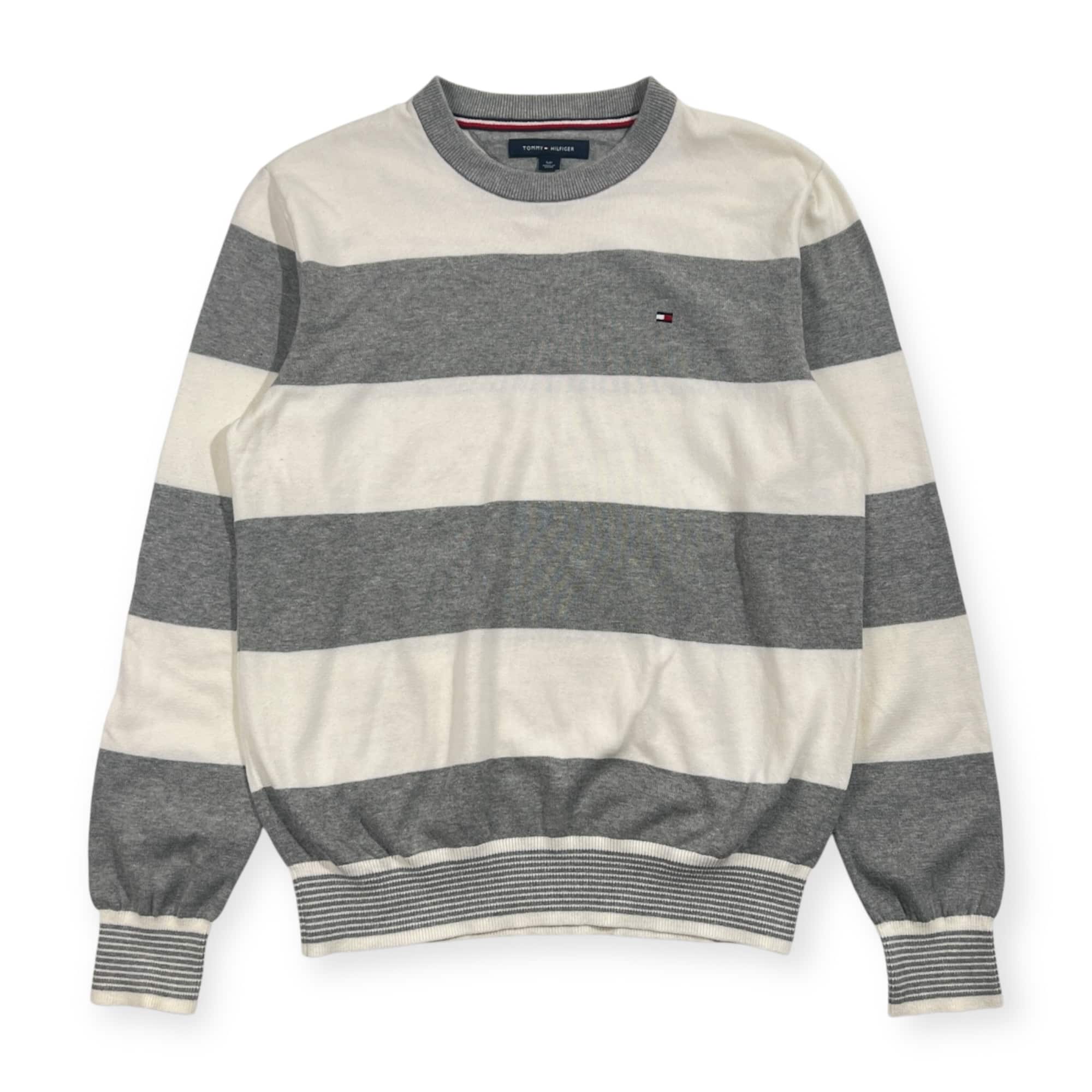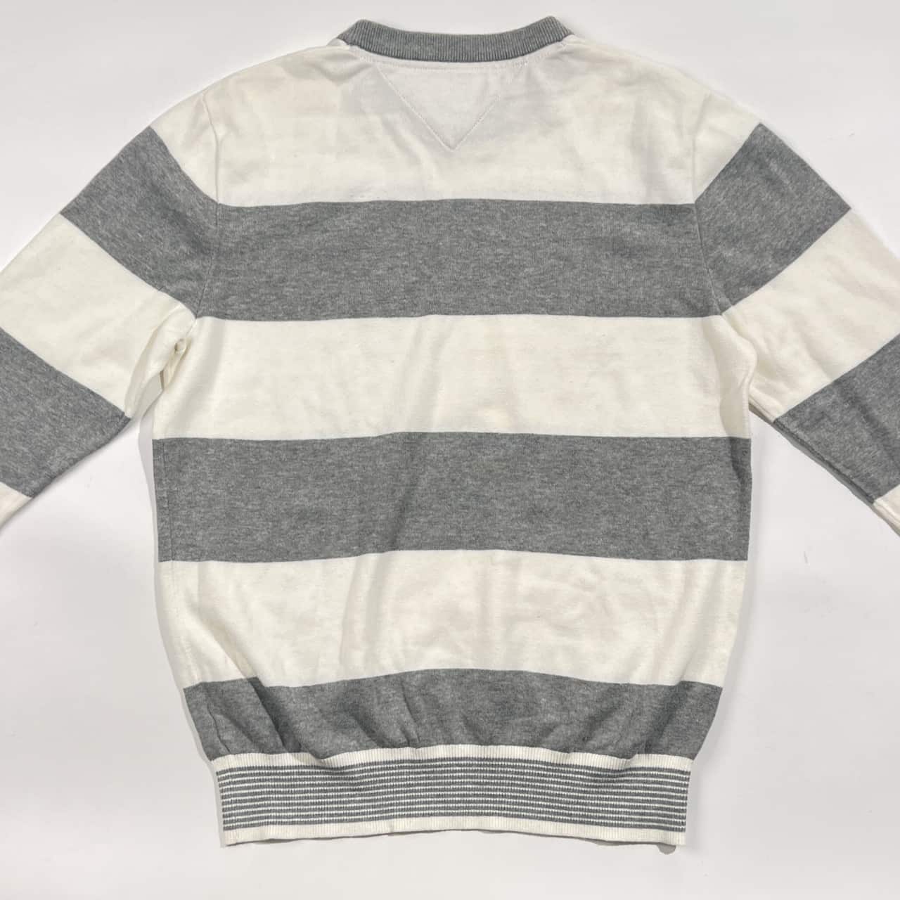 TOMMY HILFIGER トミーヒルフィガー ボーダー コットン ニット トレーナー S/ホワイト×グレー メンズ