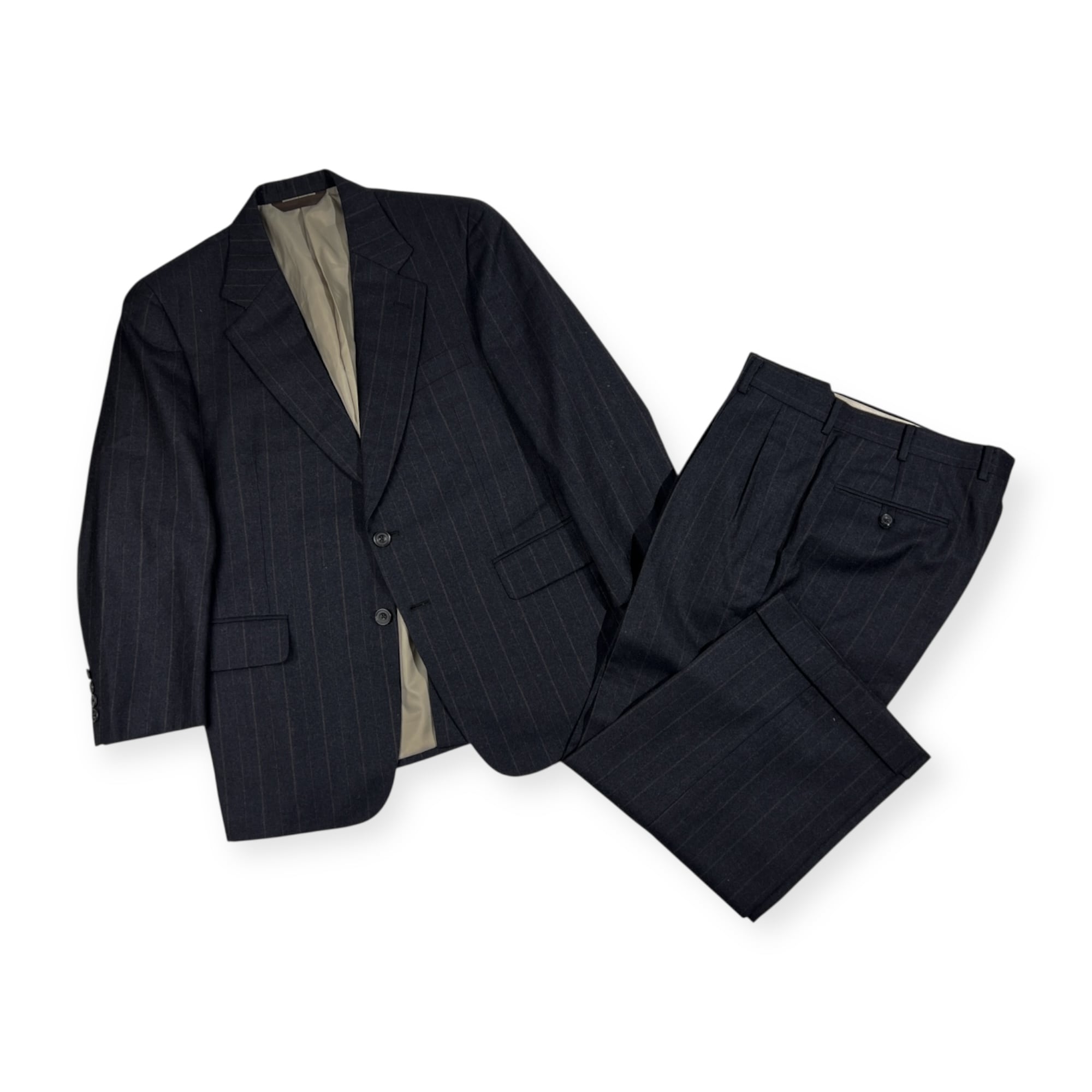 上下 Paul Stuart ポールスチュアート セットアップ ストライプ テーラードジャケット 裾ダブル スラックス スーツ 94-84-165 AB4/ダークグレー 系 メンズ