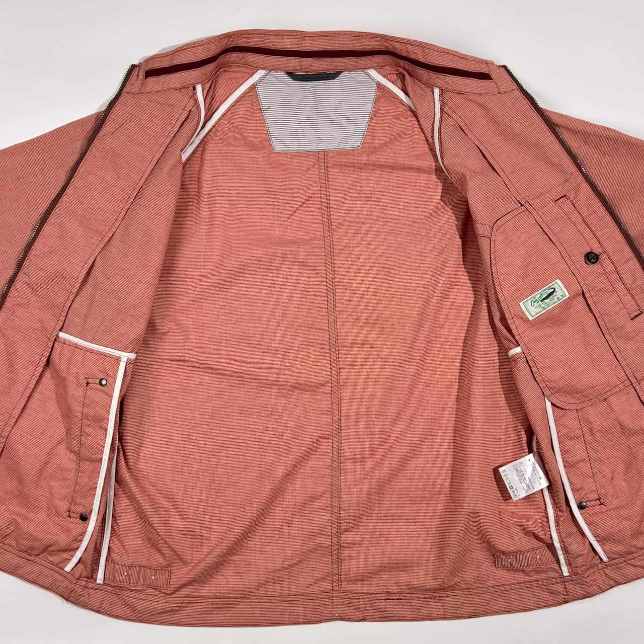 リネン混 CROCODILE クロコダイル チェック ジャケット ブルゾン M/レッド系 メンズ