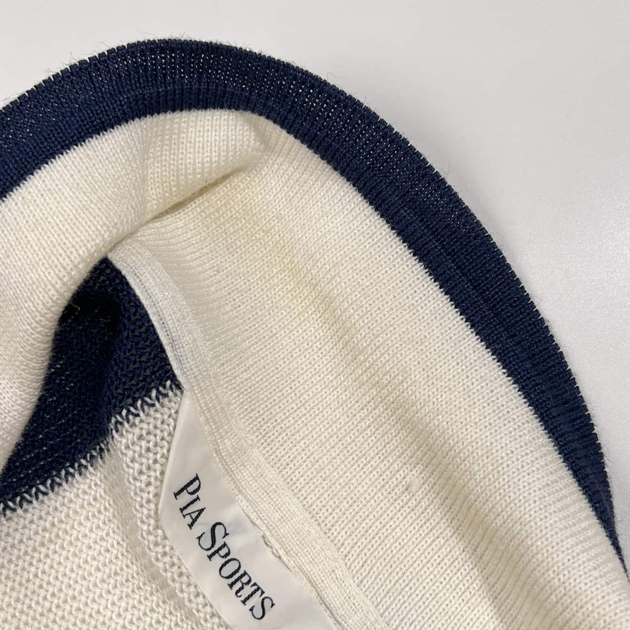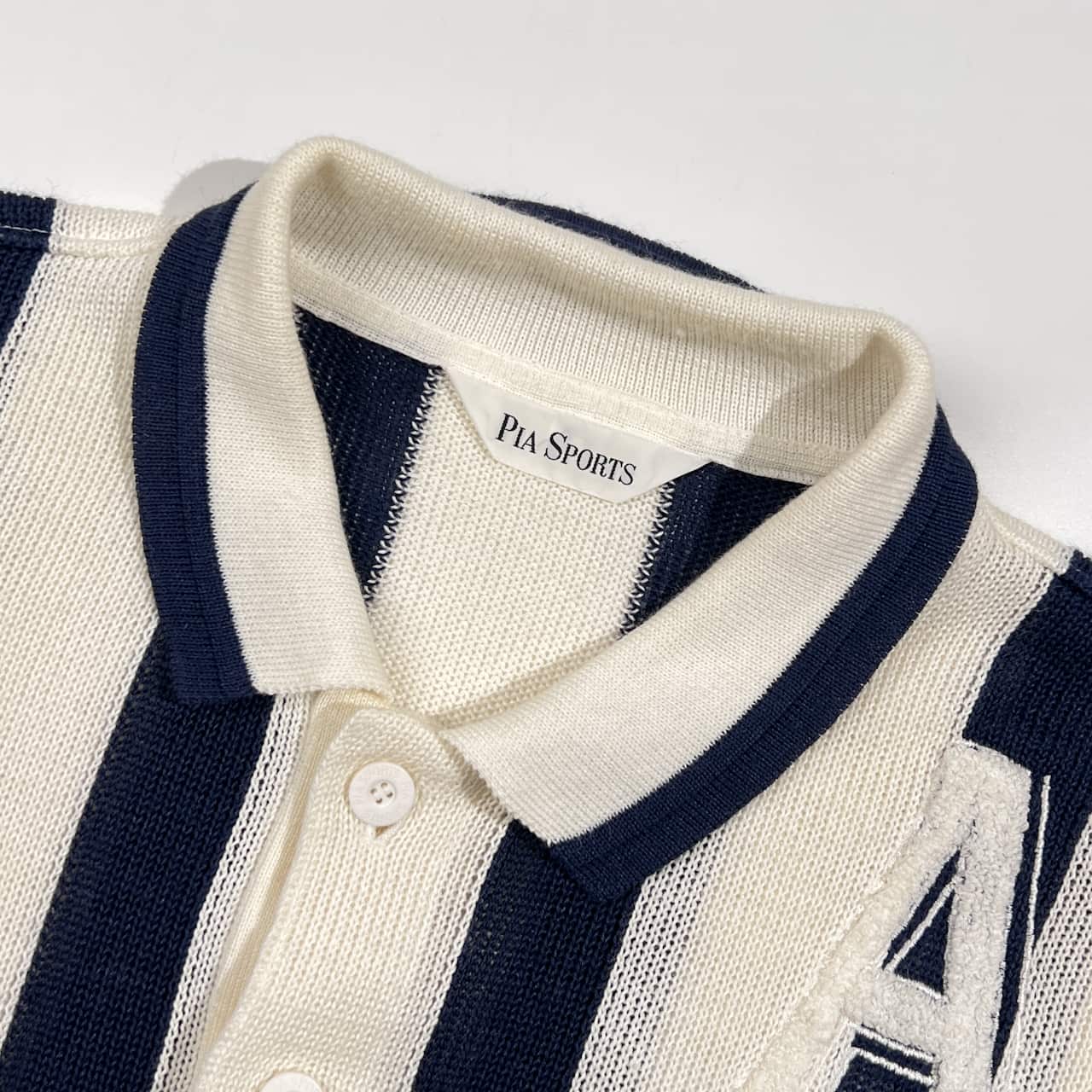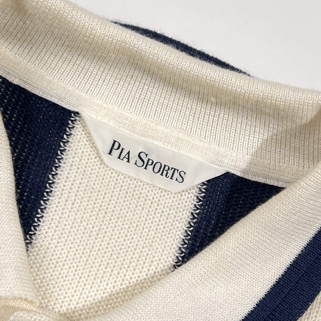リネン混 PIA SPORTS ピアスポーツ ストライプ ポロ ニット 4/ホワイト×ネイビー メンズ ライカ ゴルフ