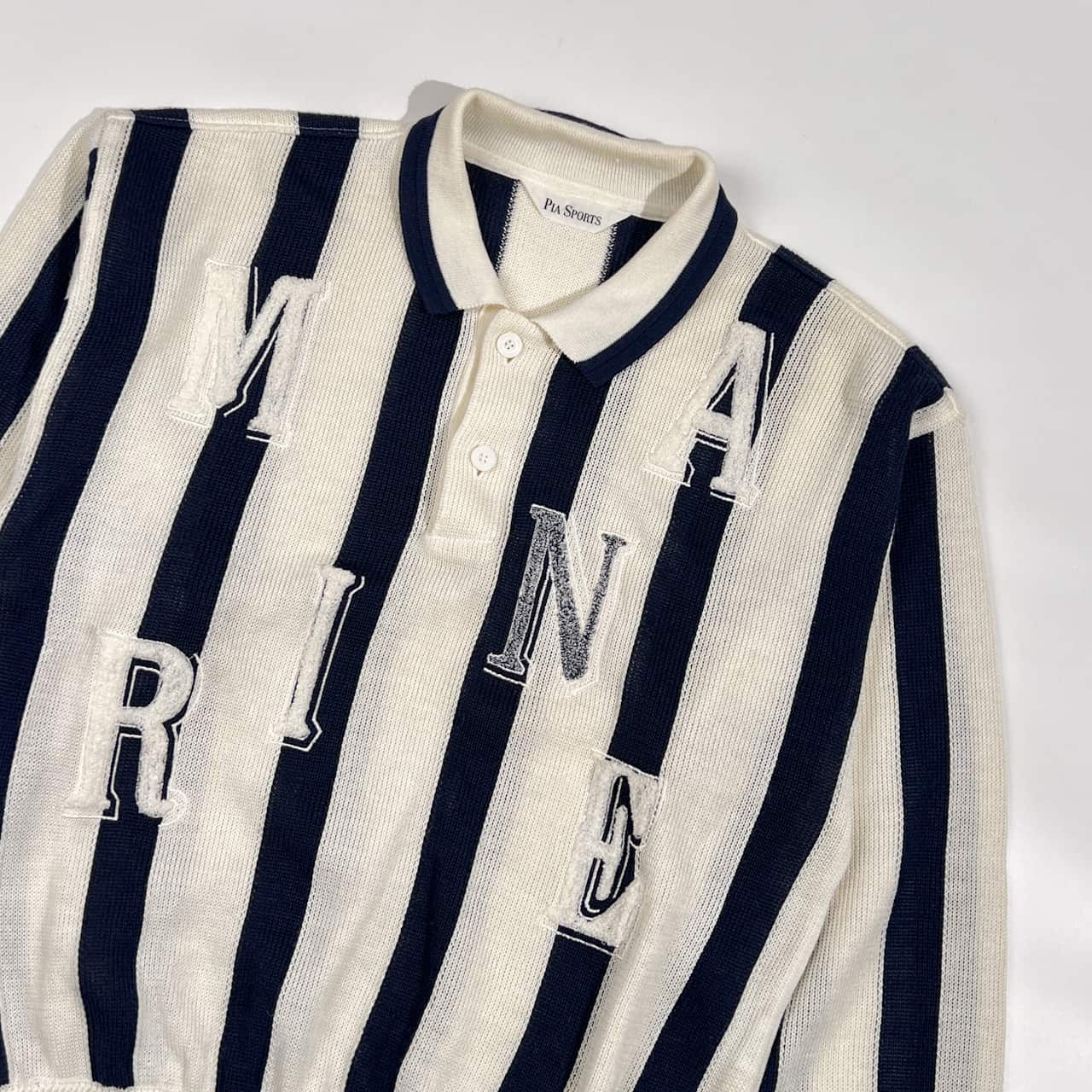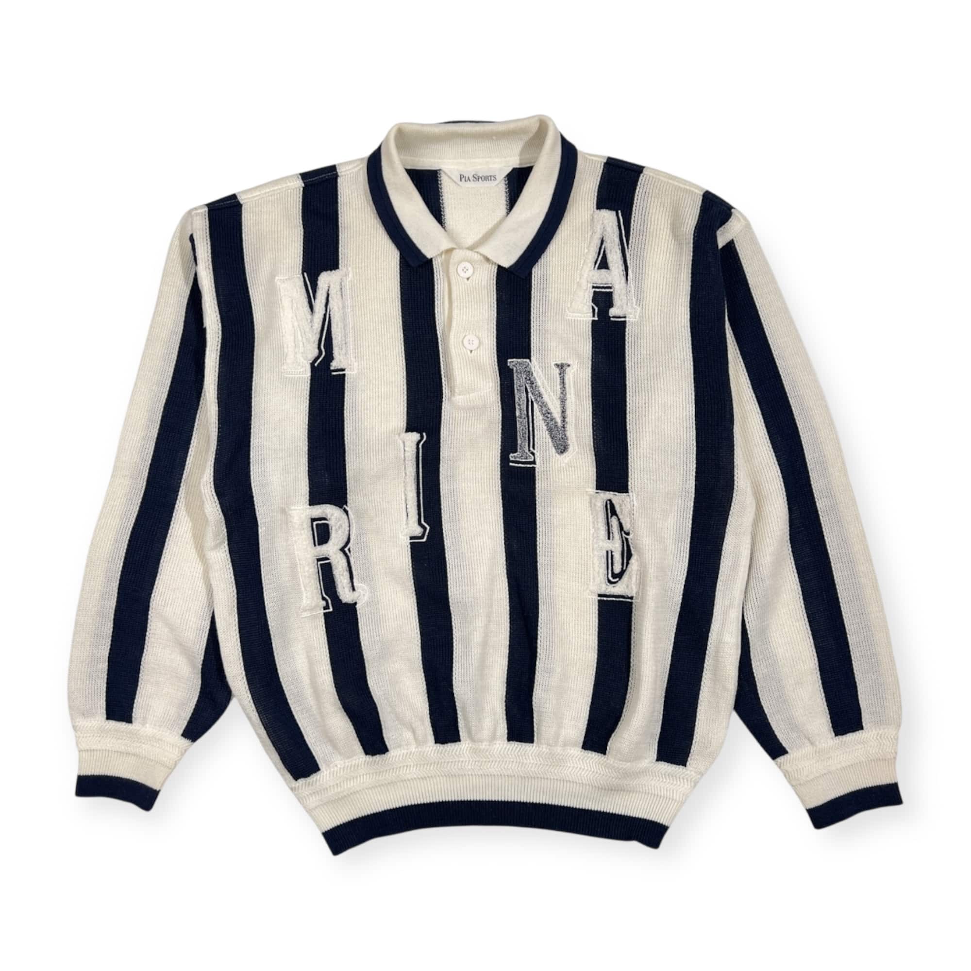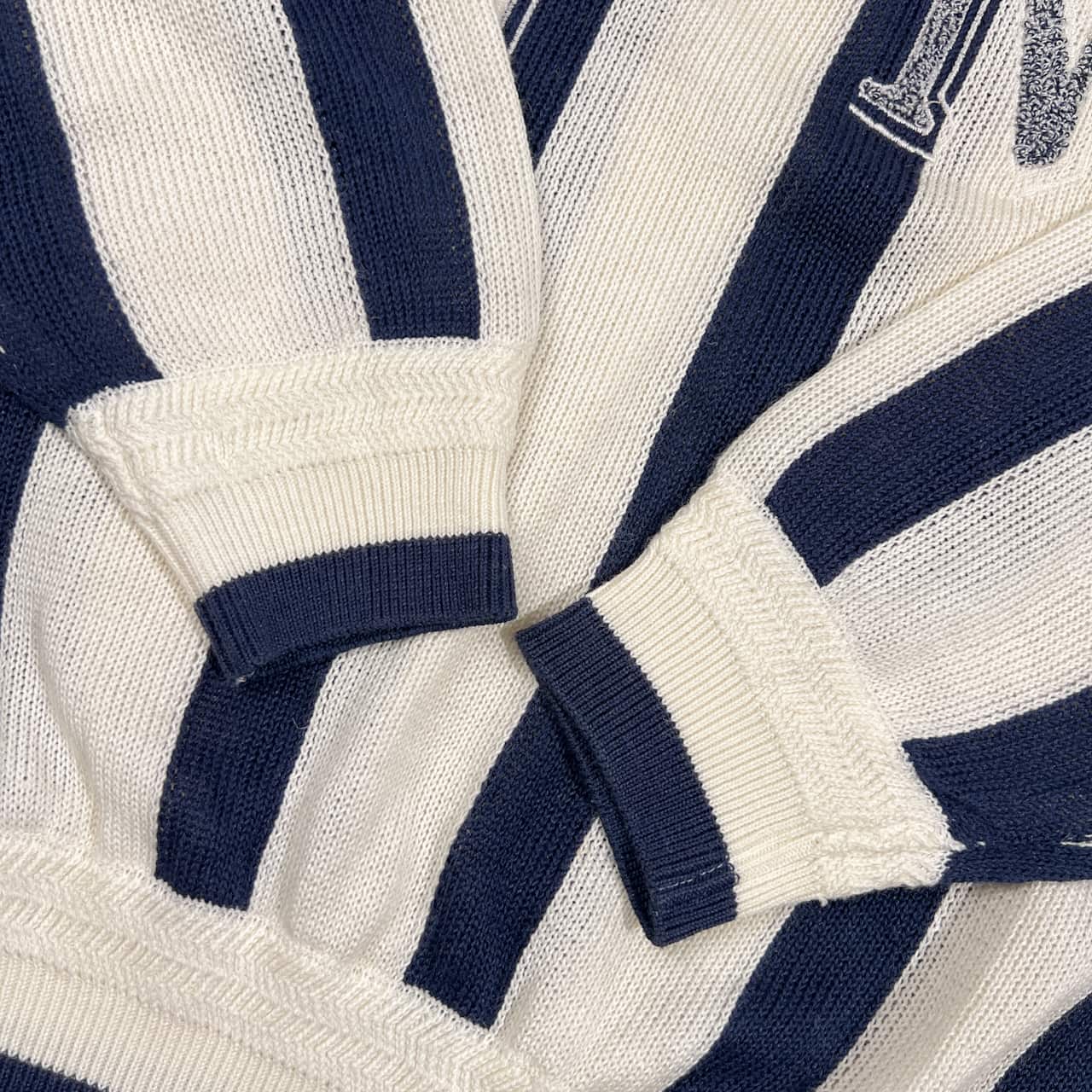 リネン混 PIA SPORTS ピアスポーツ ストライプ ポロ ニット 4/ホワイト×ネイビー メンズ ライカ ゴルフ