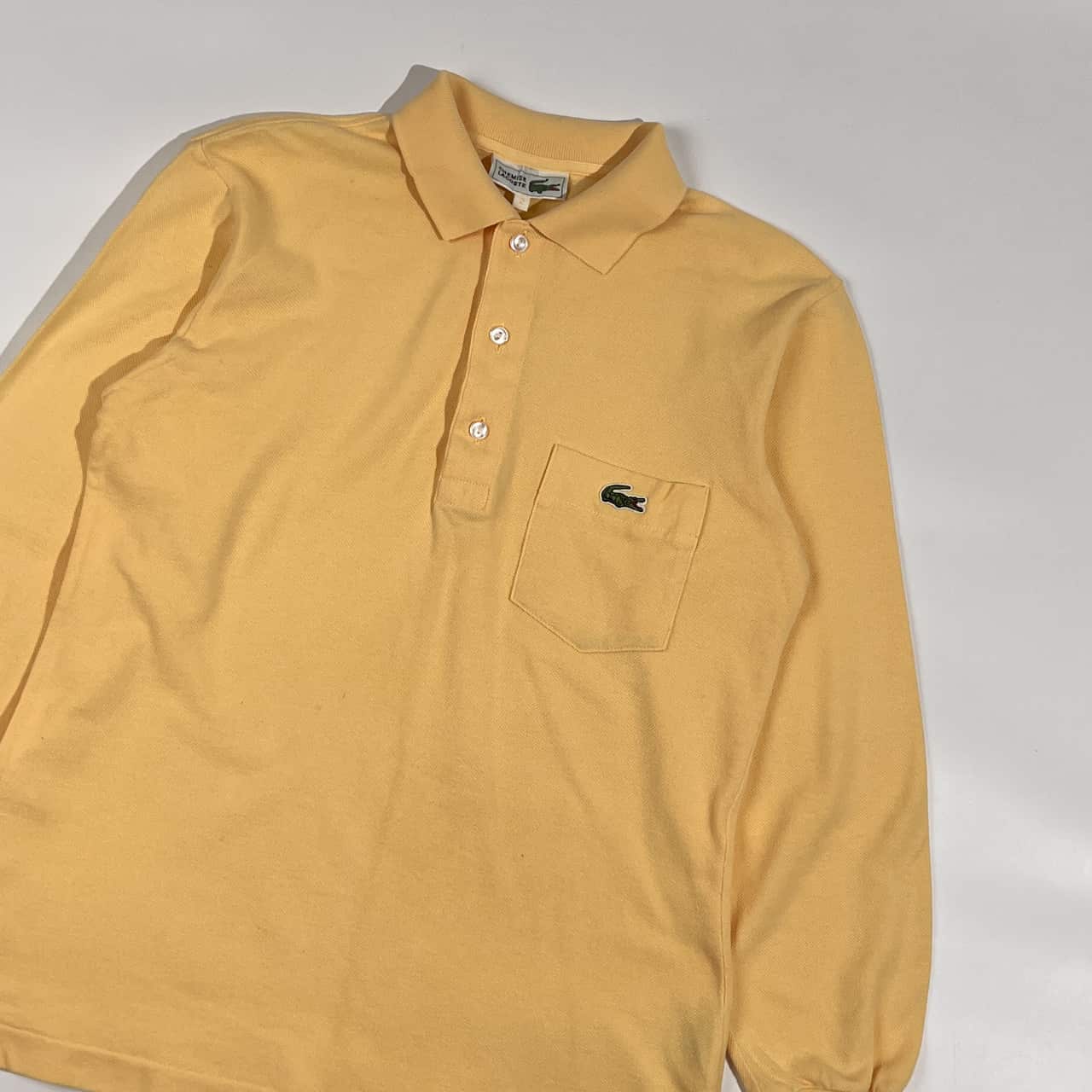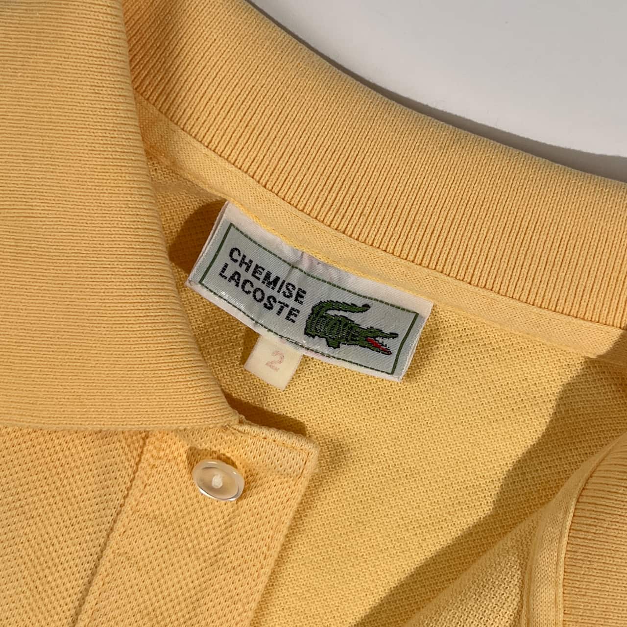 80s CHEMISE LACOSTE シューミーズラコステ 鹿の子 長袖 ポロシャツ 2/クリーム イエロー系 メンズ