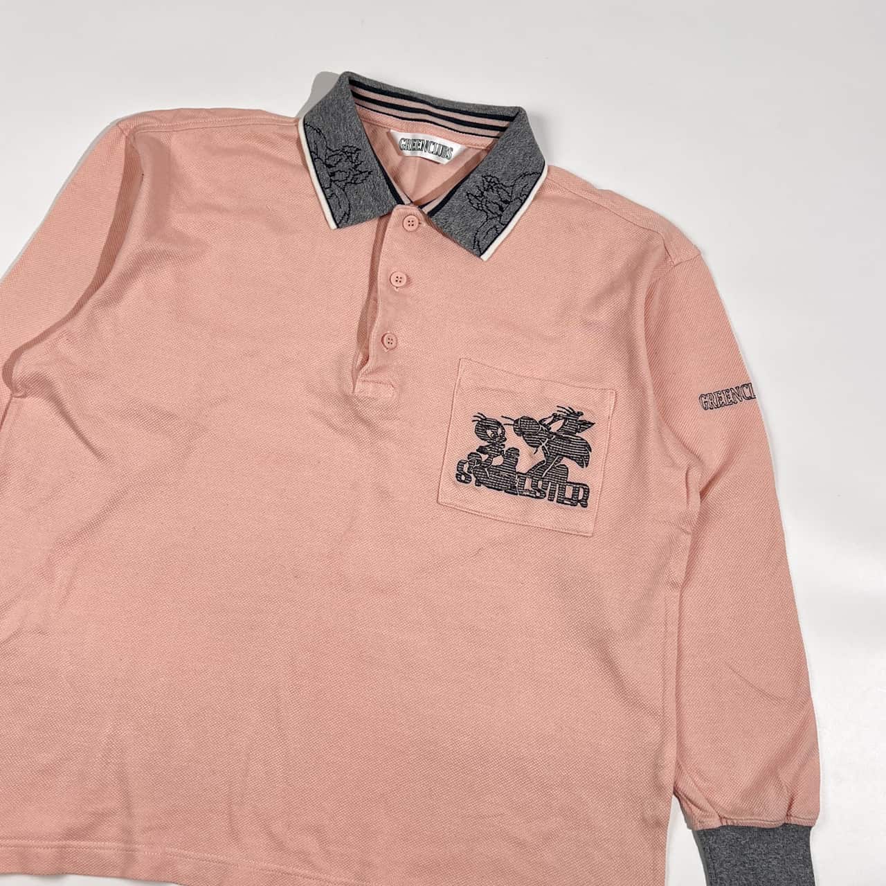 GREENCLUBS グリーンクラブ ワーナー コラボ 鹿の子 長袖 ポロシャツ 3/ピンク系 メンズ ライカ