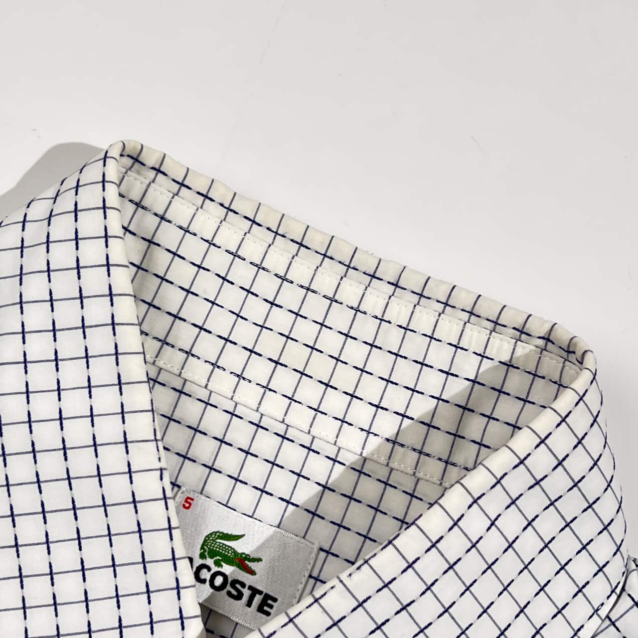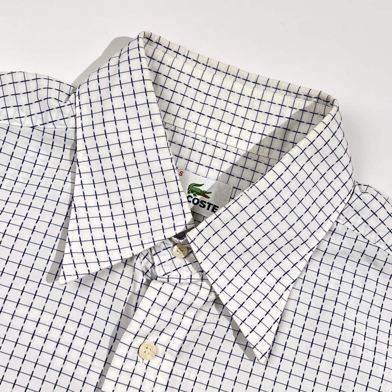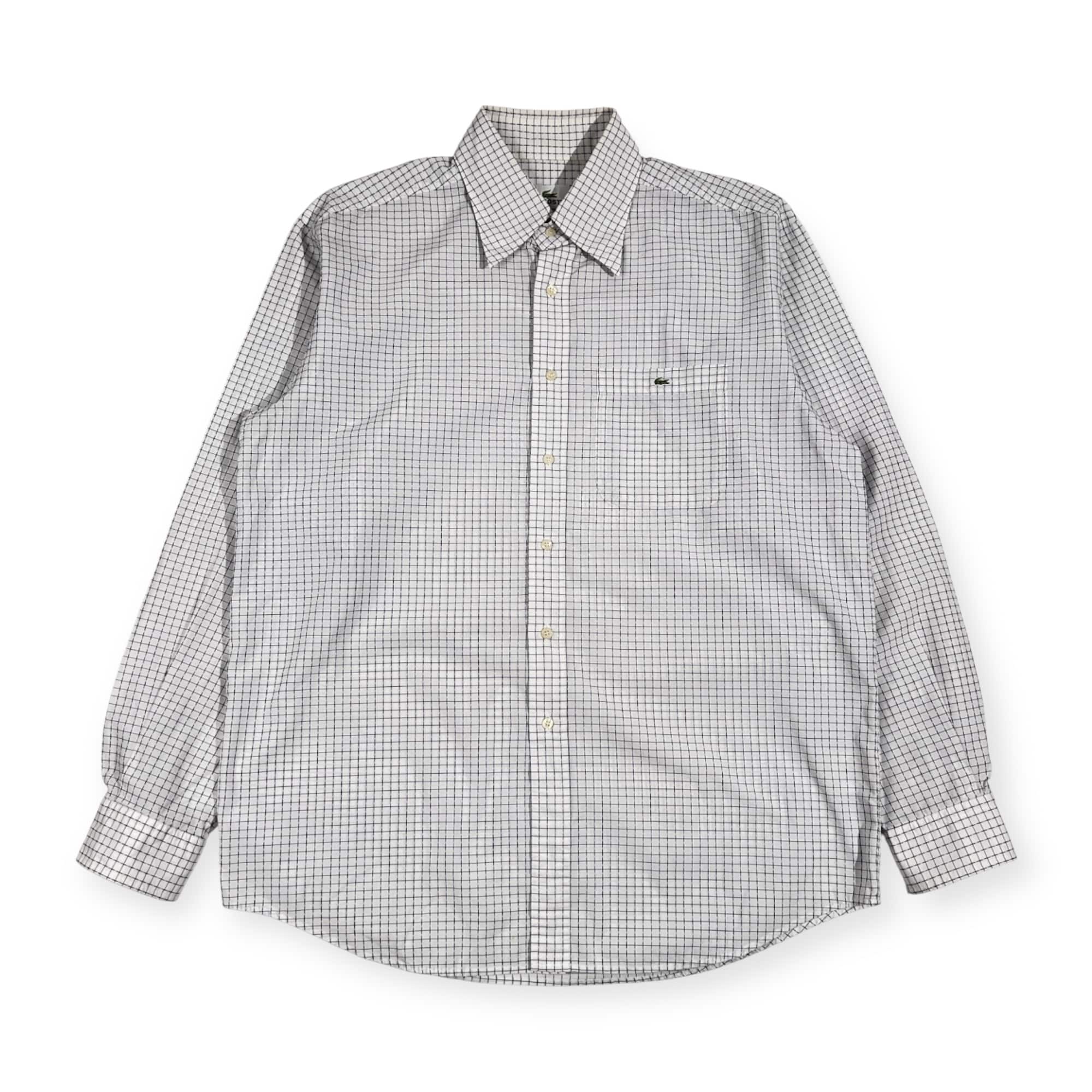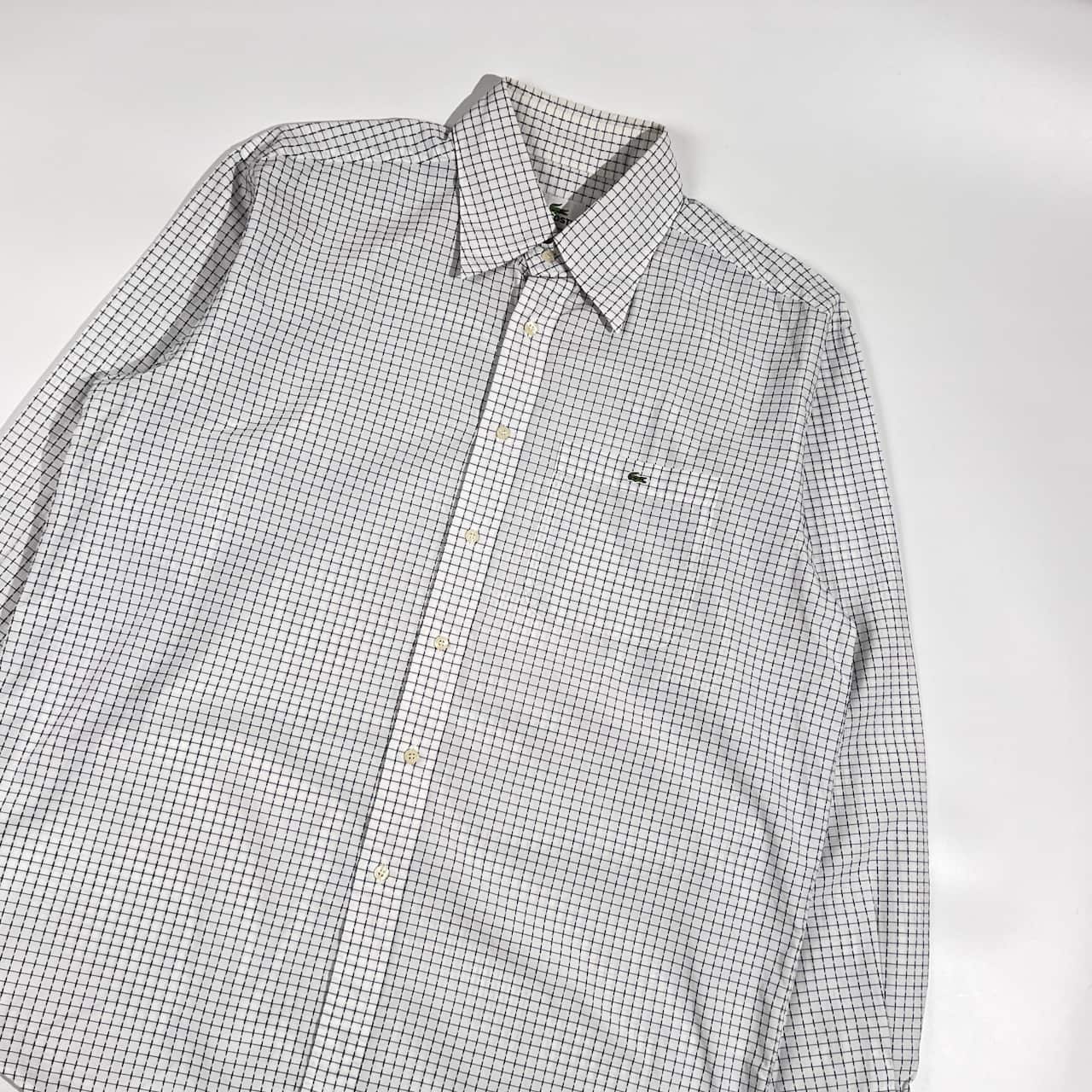 90s LACOSTE ラコステ 総柄 長袖シャツ 5/ホワイト系 メンズ ビンテージ