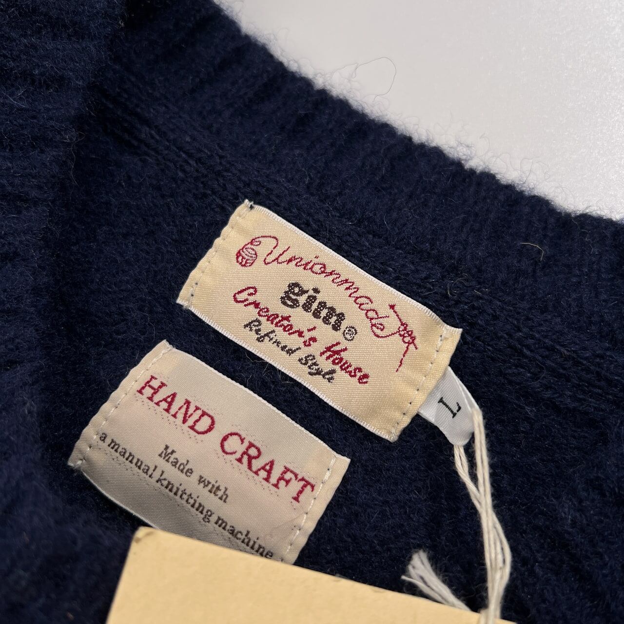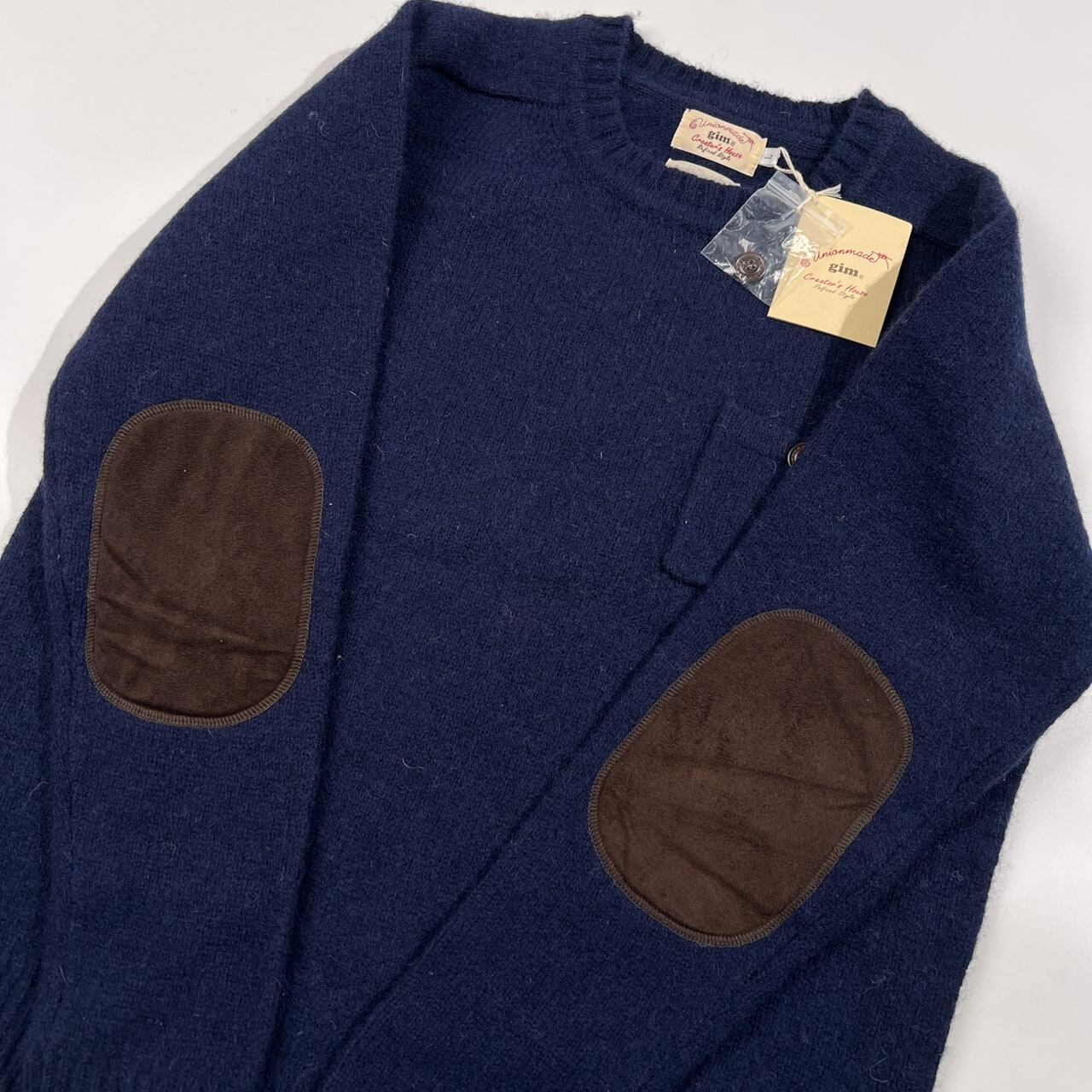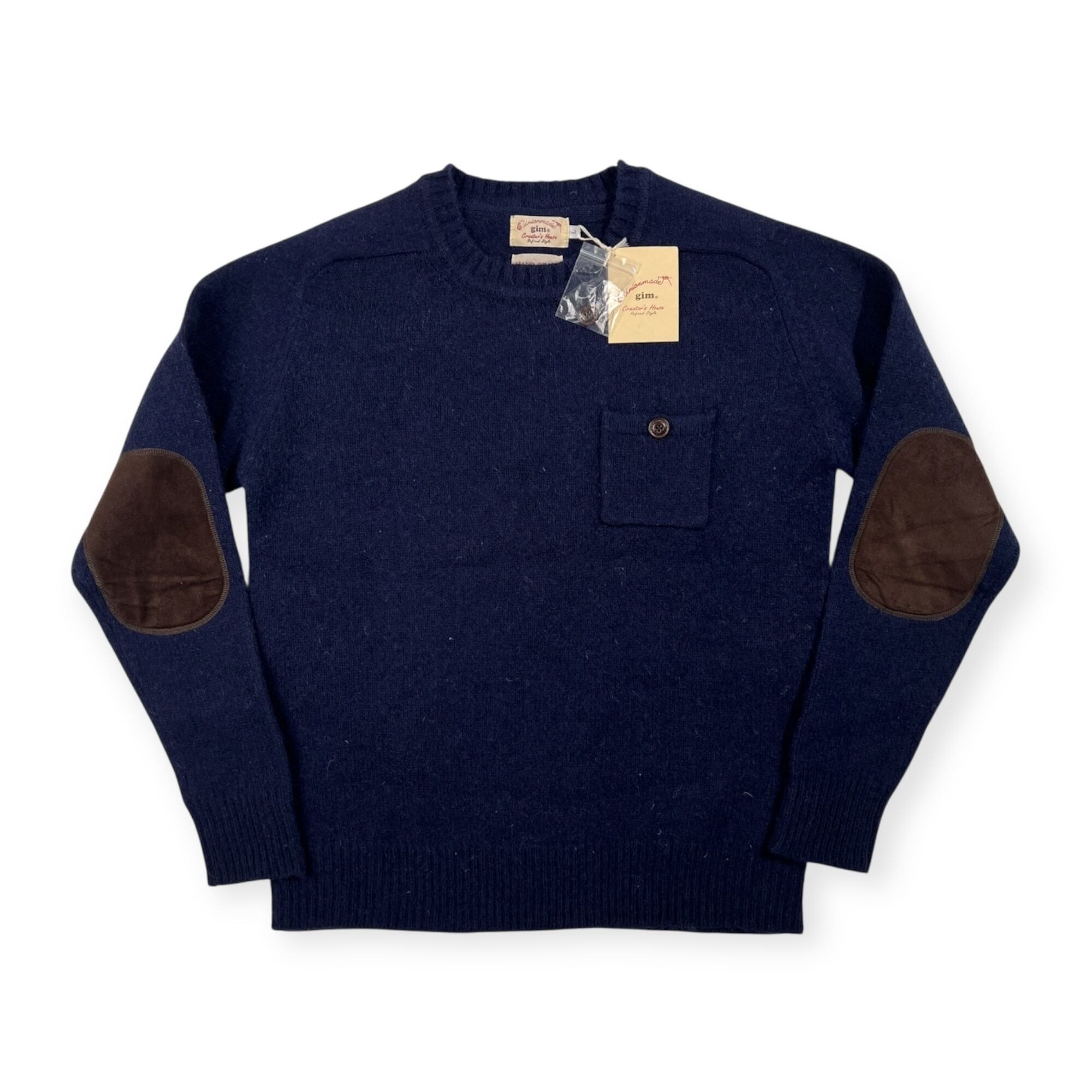 未使用品 タグ付き gim ジム ポケット付き エルボーパッチ ウールニットセーター サイズ L /ネイビー/メンズ