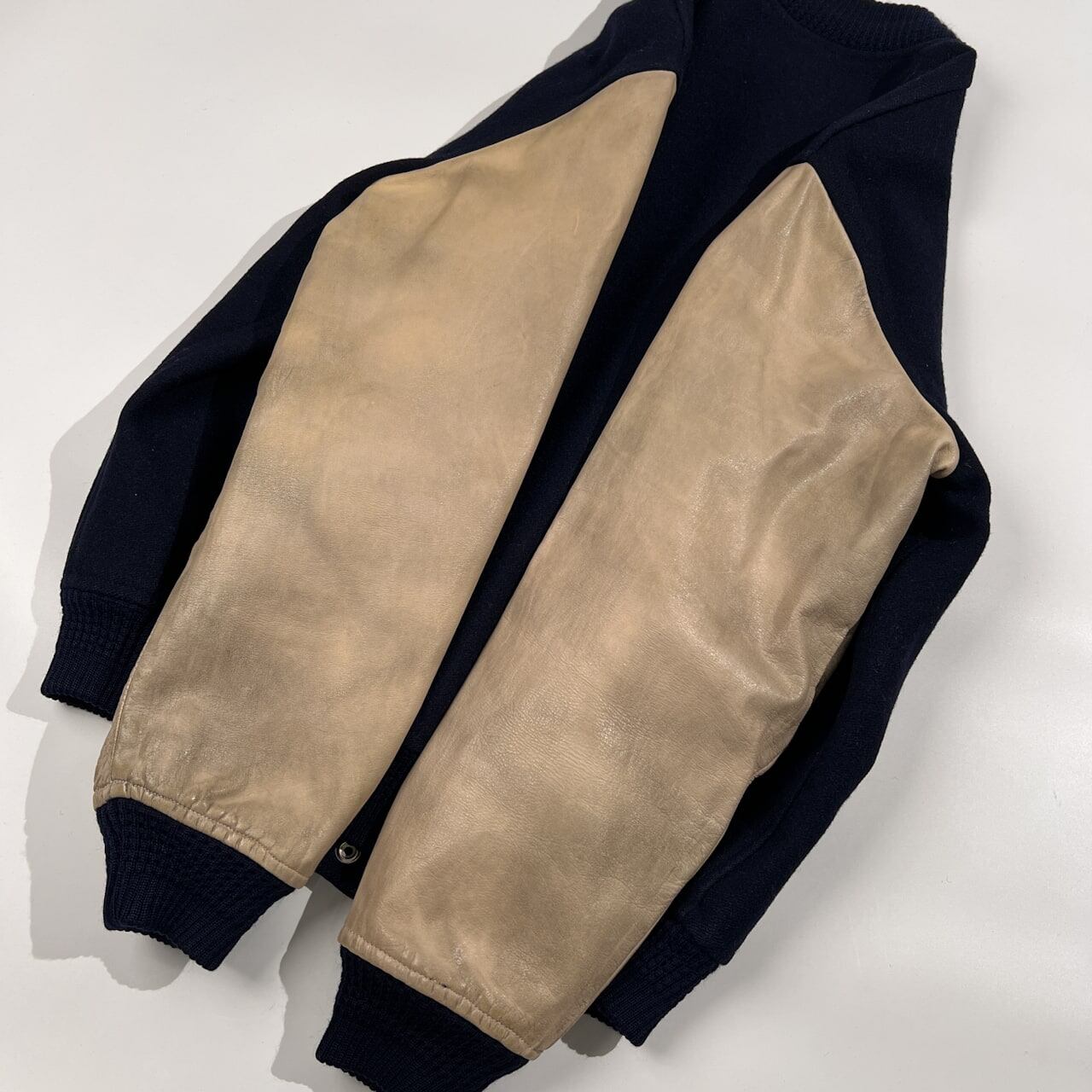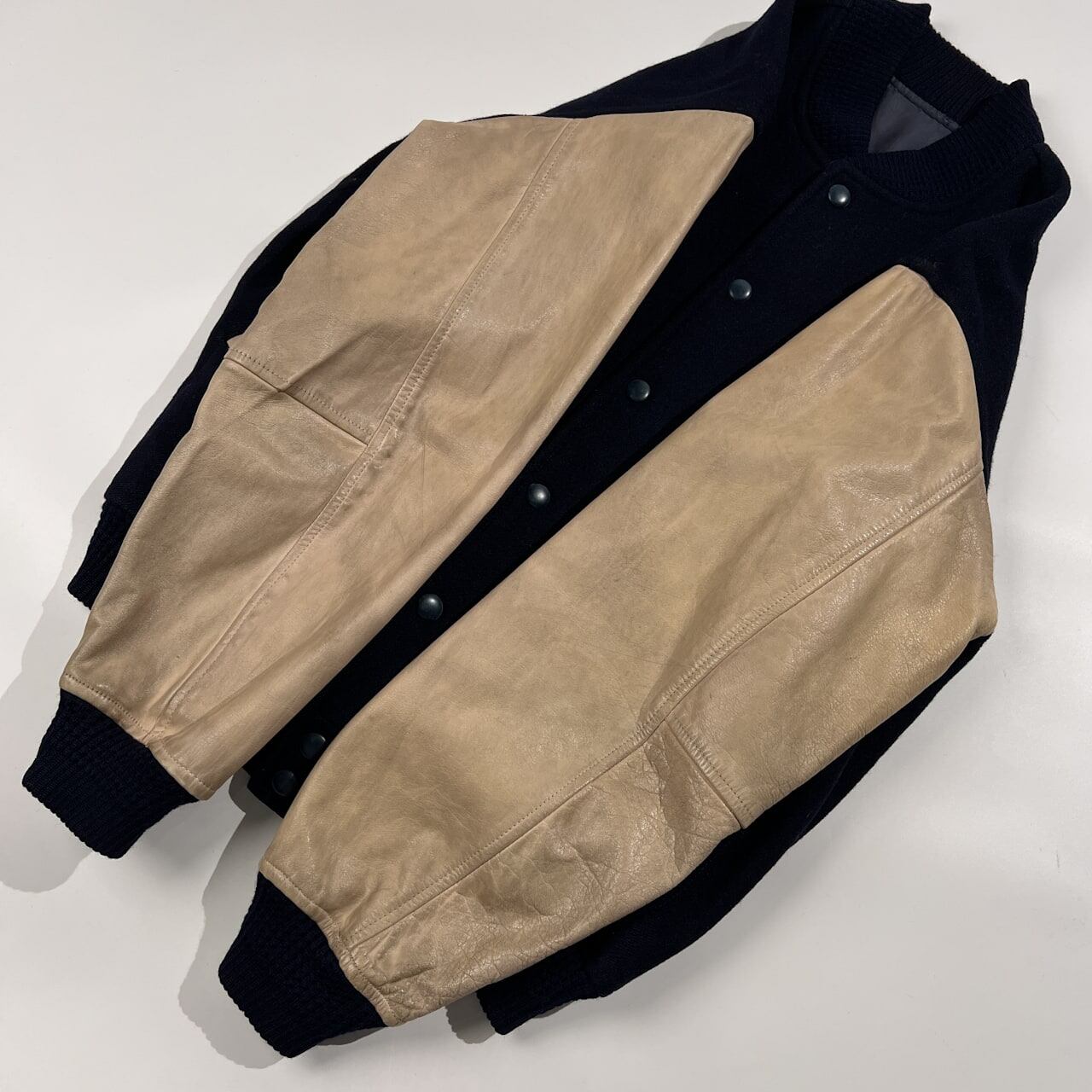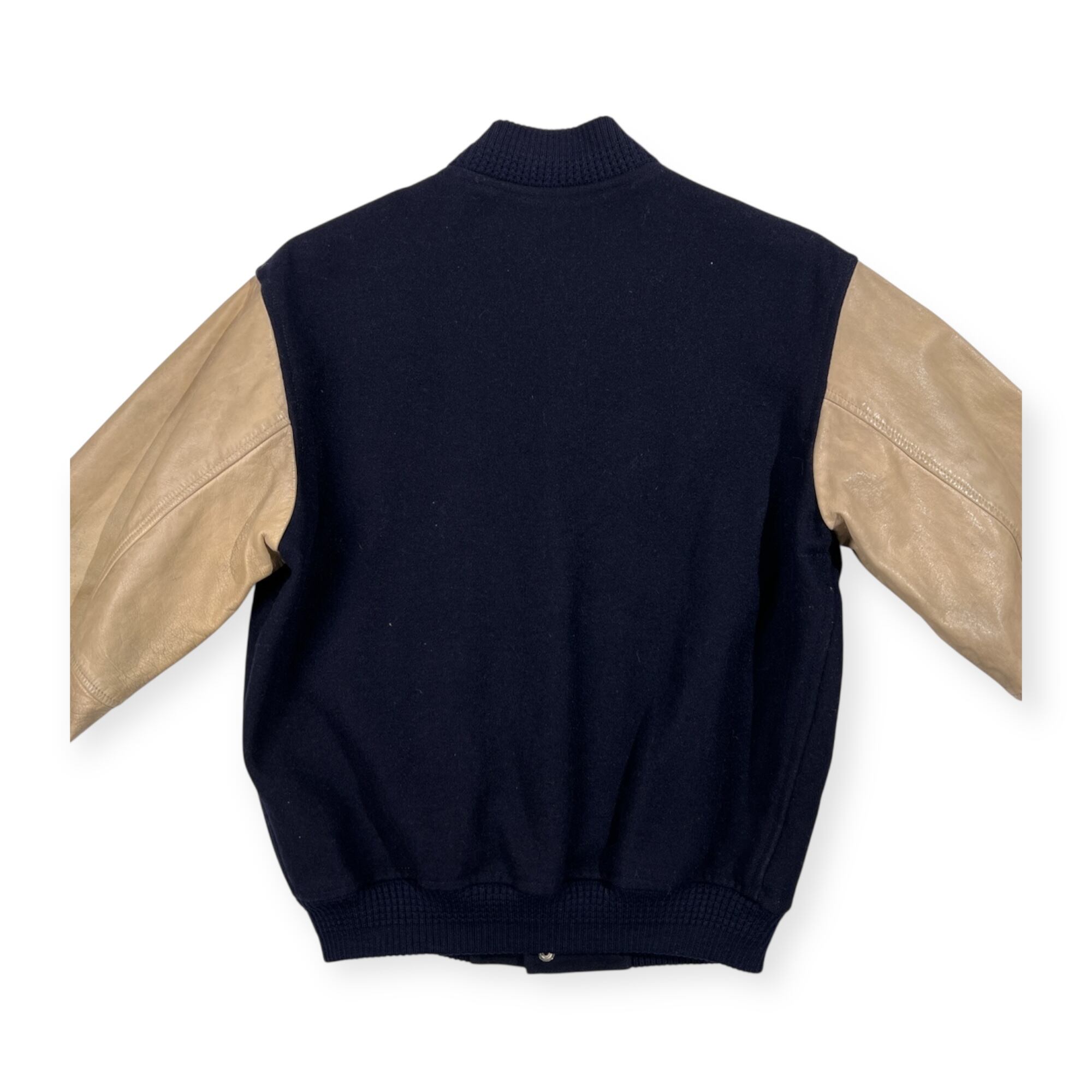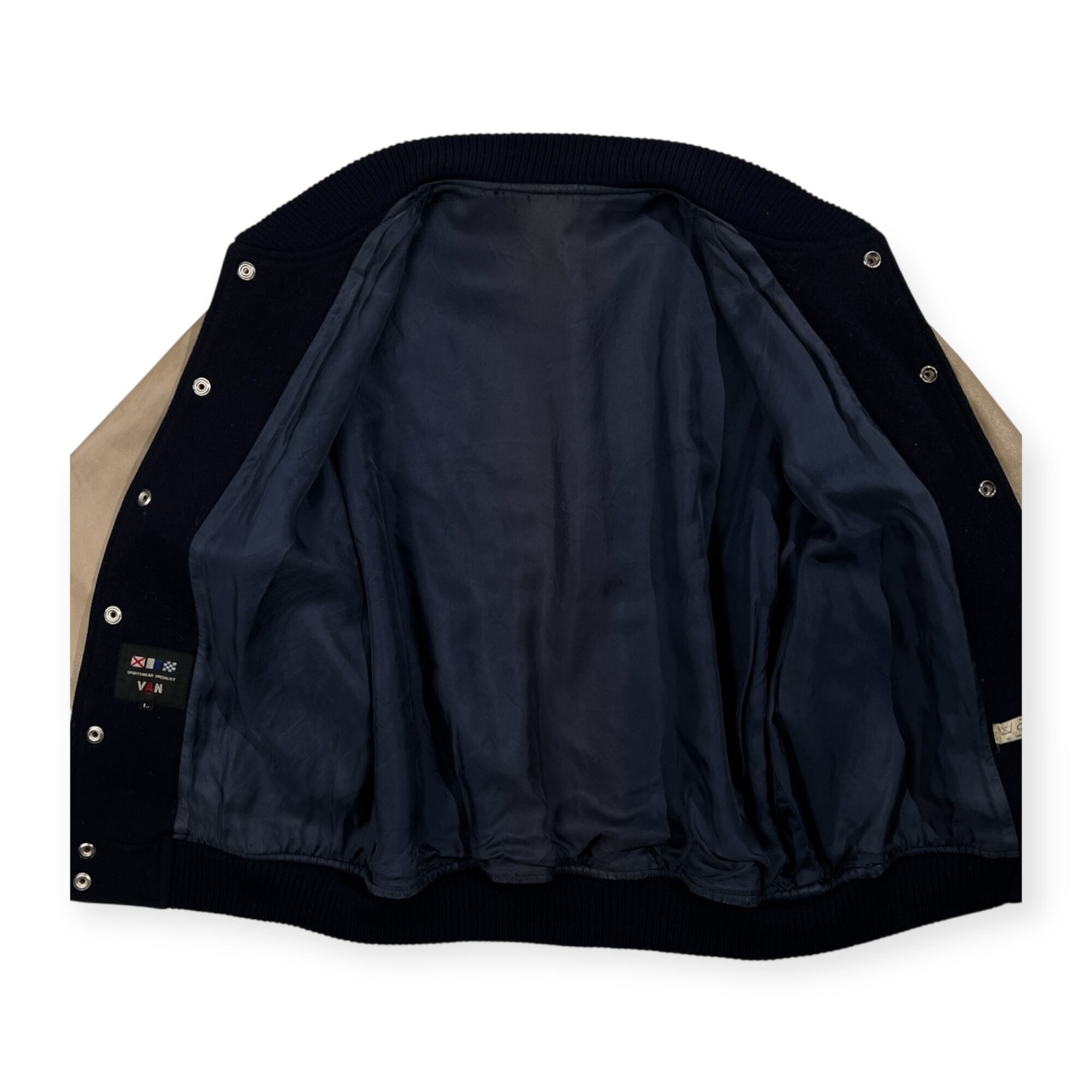 70s 当時物 VAN JAC ヴァンヂャケット SPORTSWEAR SPECIALIST 袖革 レザー スタジャン サイズ L /ネイビー×ベージュ系/ビンテージ