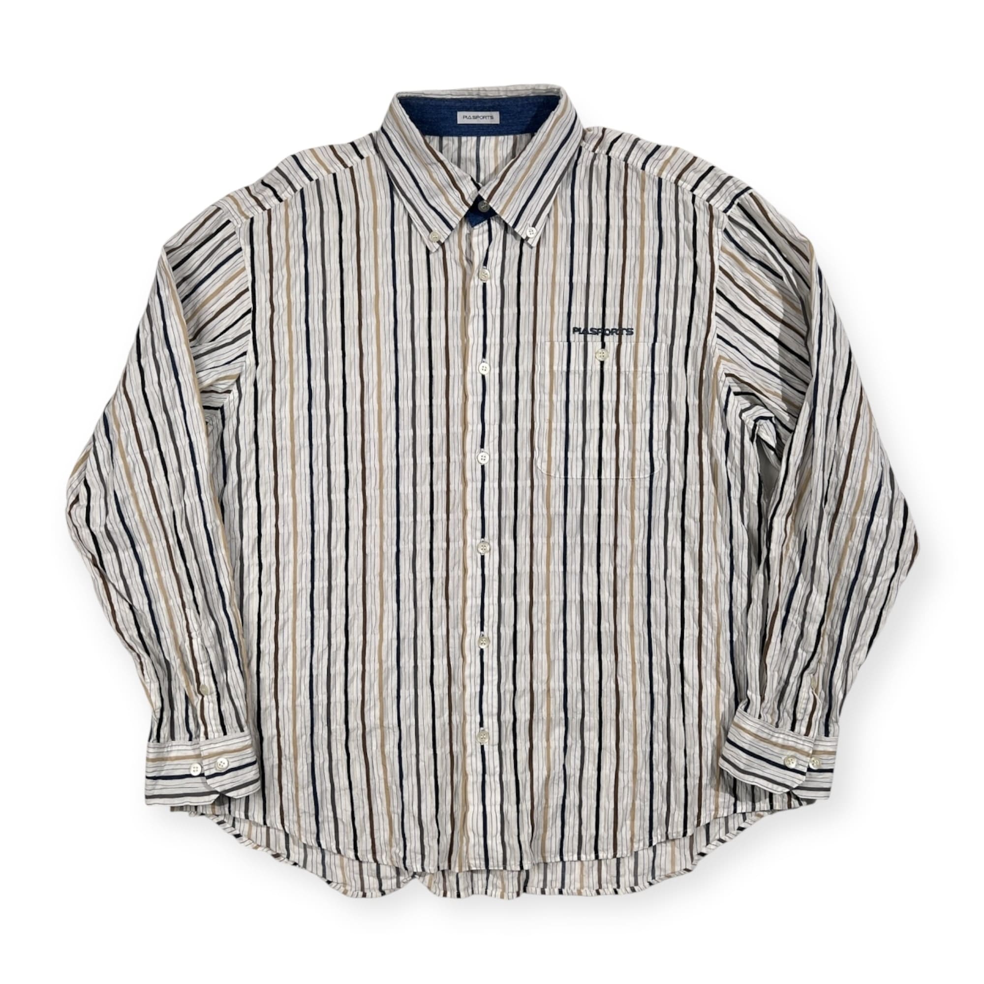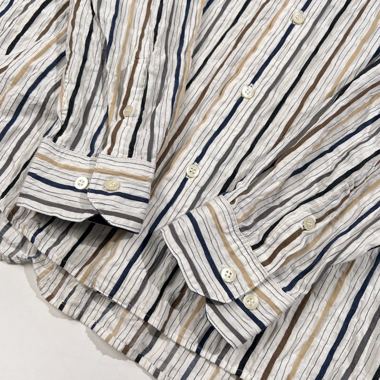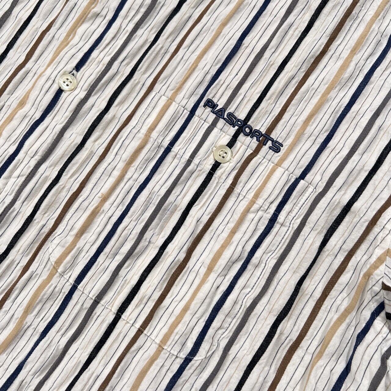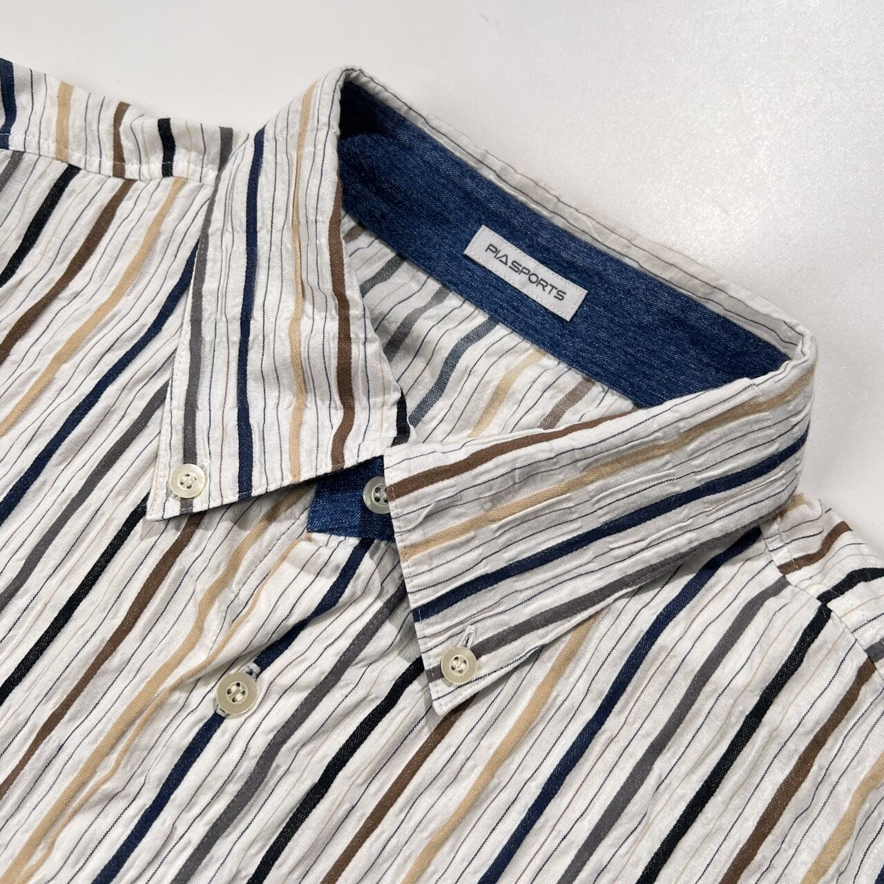 PIA SPORTS ピアスポーツ ストライプ シアサッカー風 BD 長袖シャツ サイズ 5 /ホワイト系/メンズ/ライカ/日本製