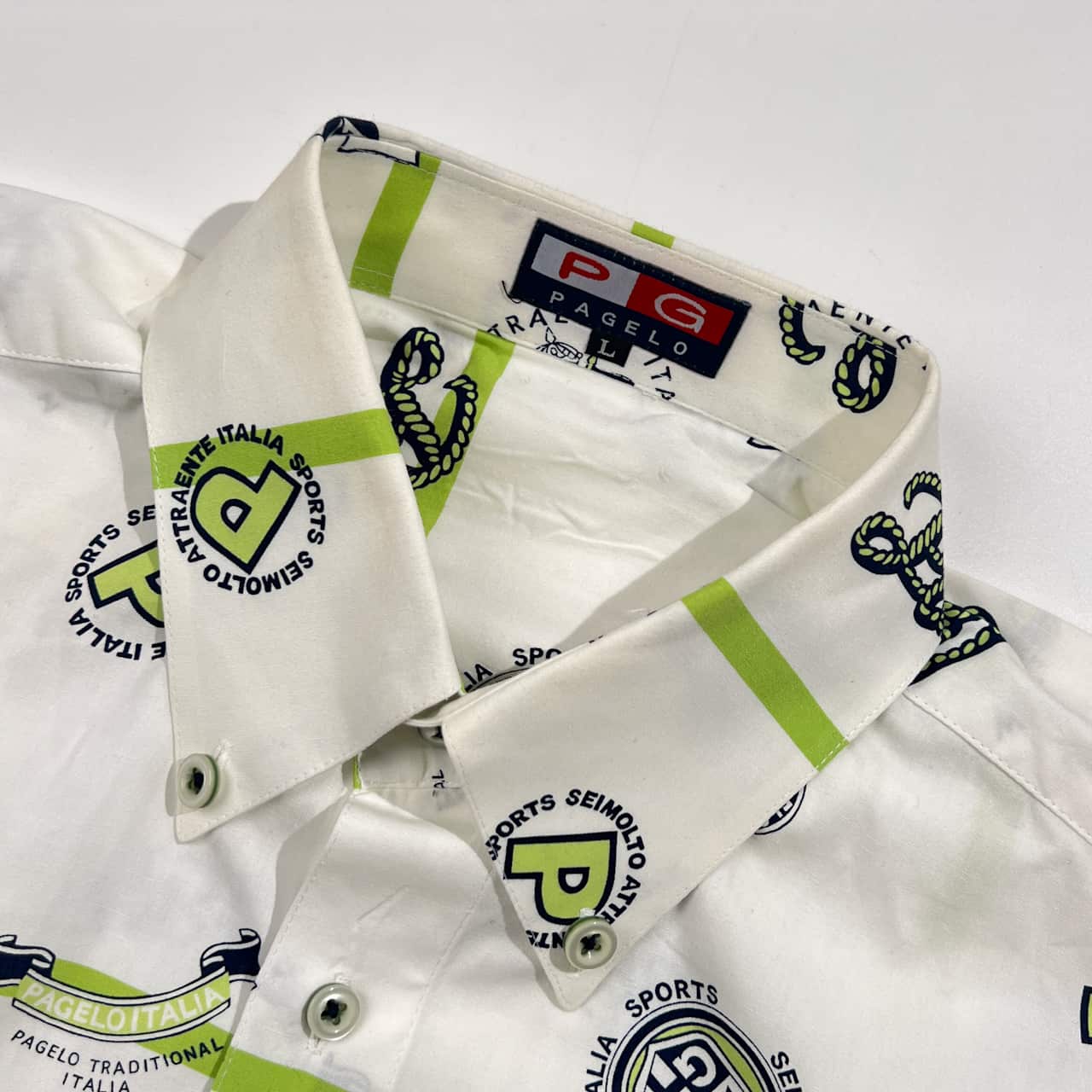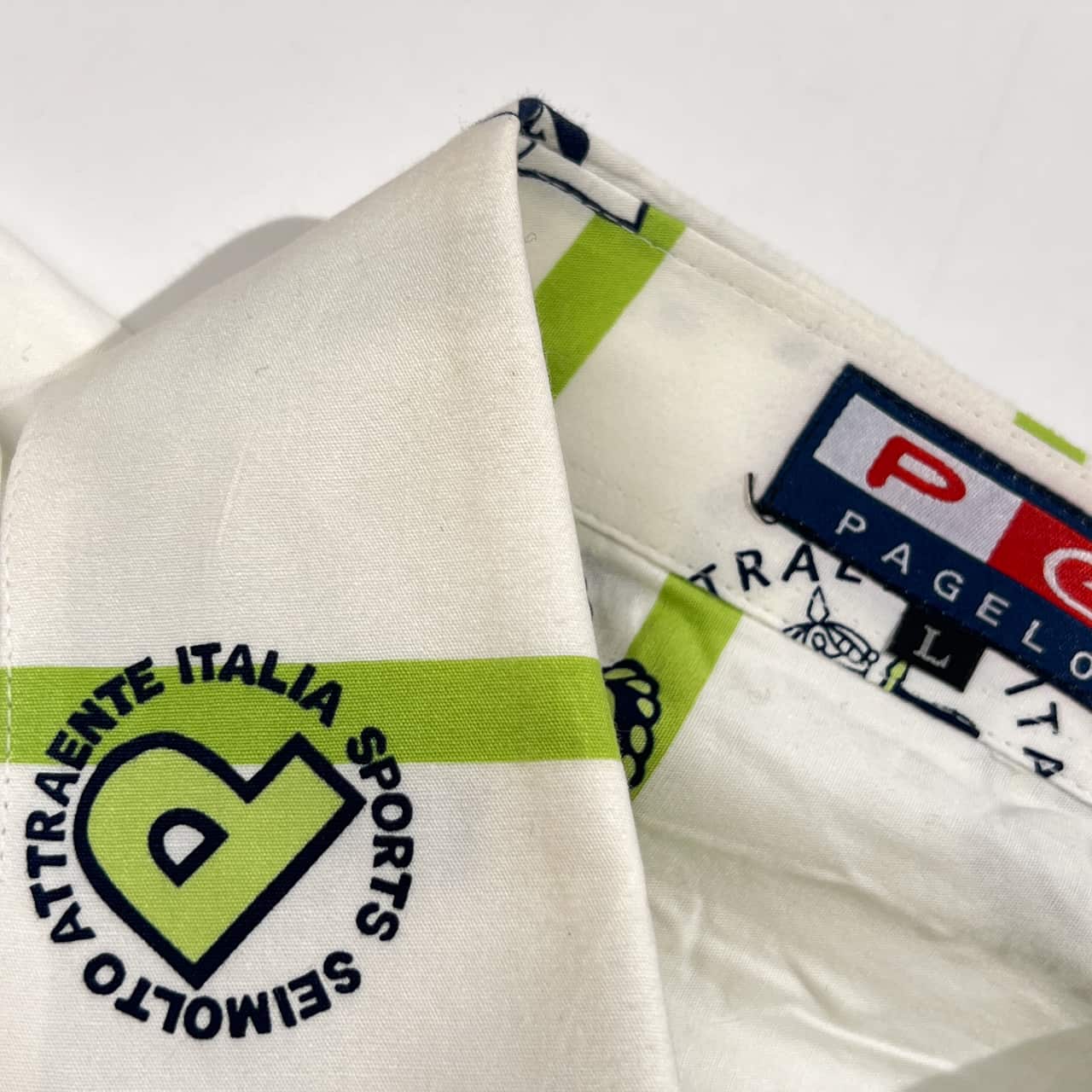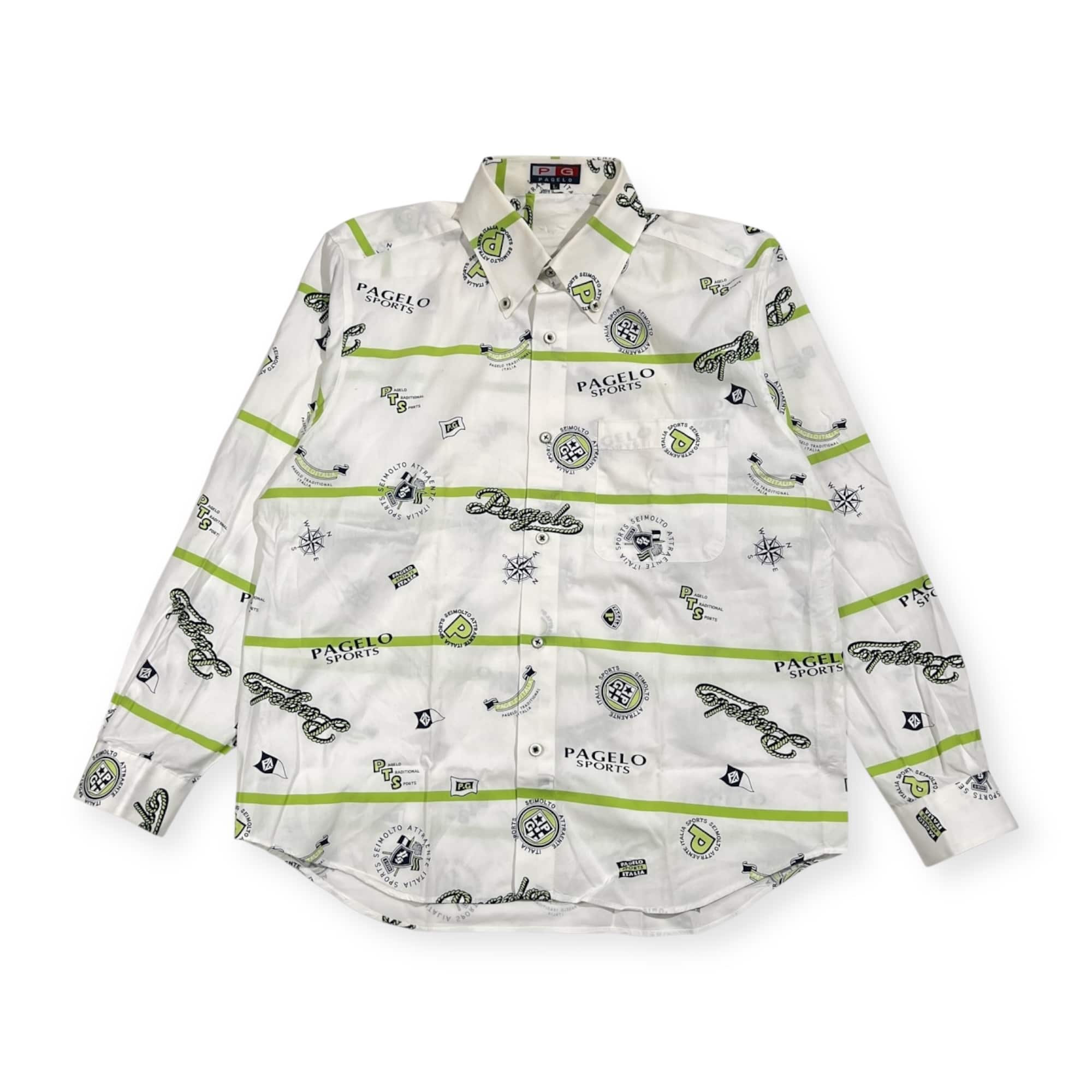 PGAELO パジェロ ボーダー デザイン BD ボタンダウン 長袖シャツ L/ホワイト系 メンズ ゴルフ