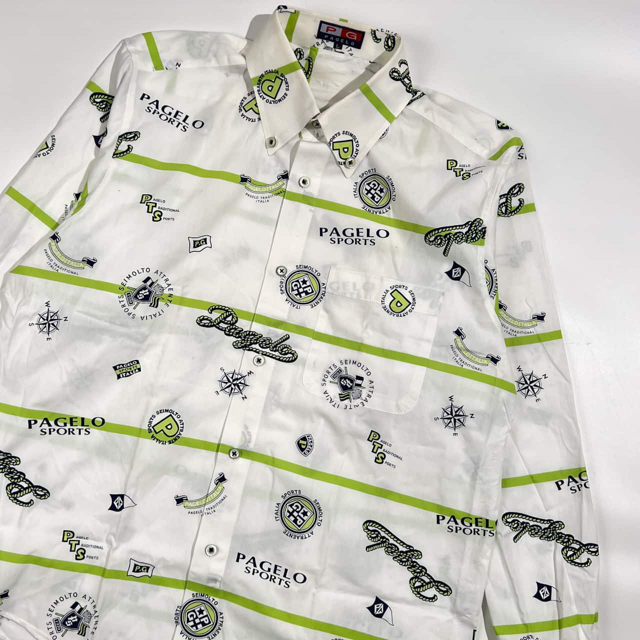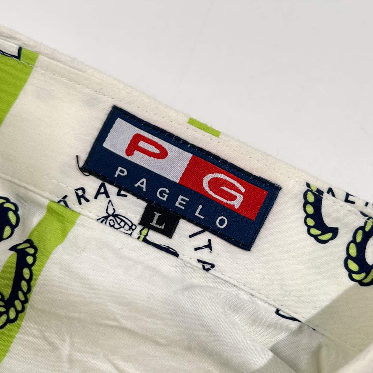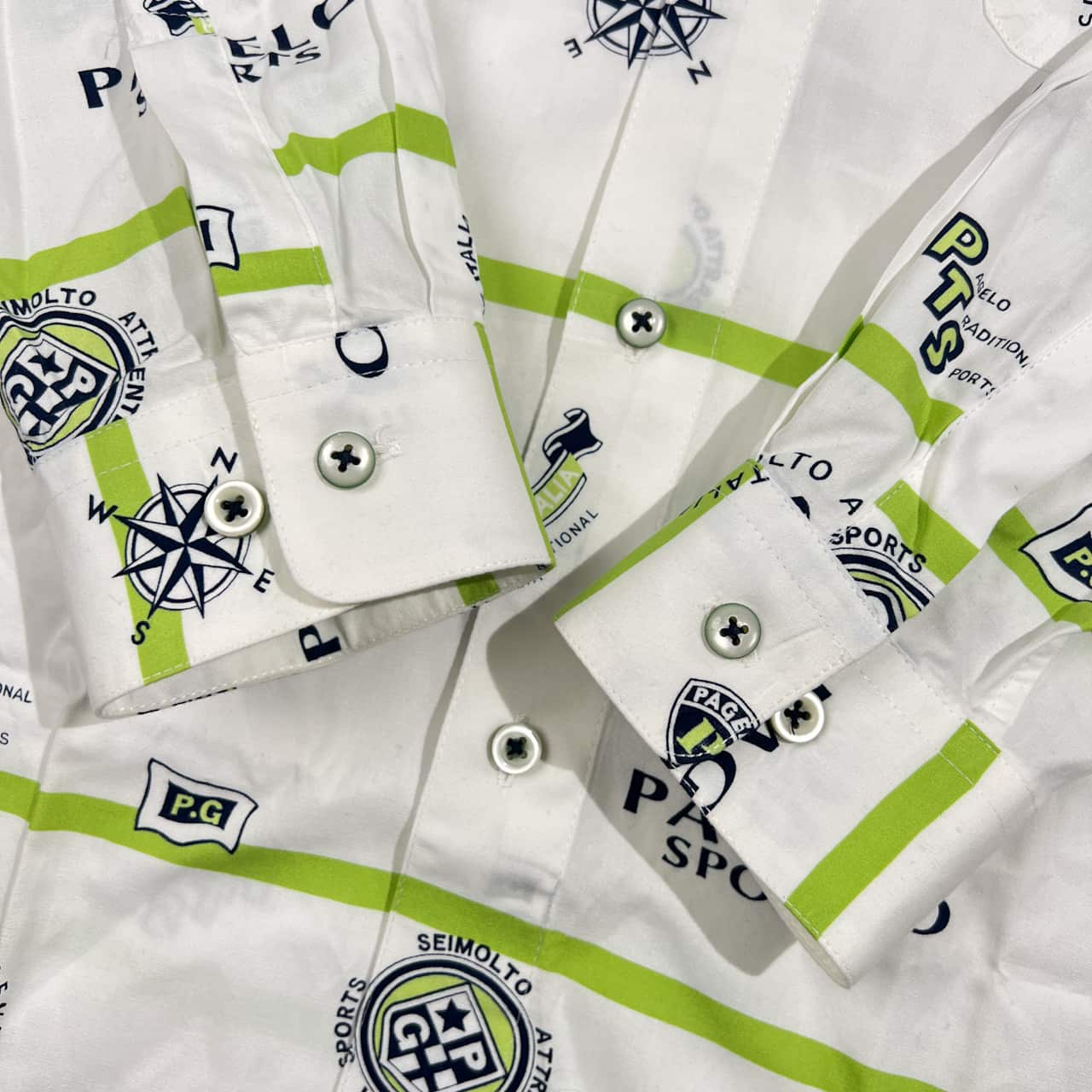 PGAELO パジェロ ボーダー デザイン BD ボタンダウン 長袖シャツ L/ホワイト系 メンズ ゴルフ