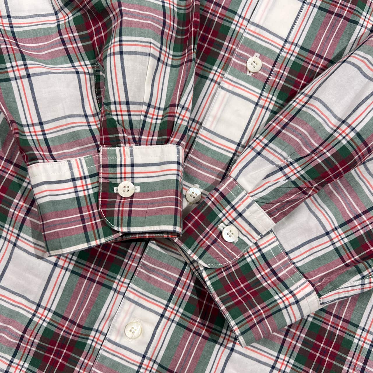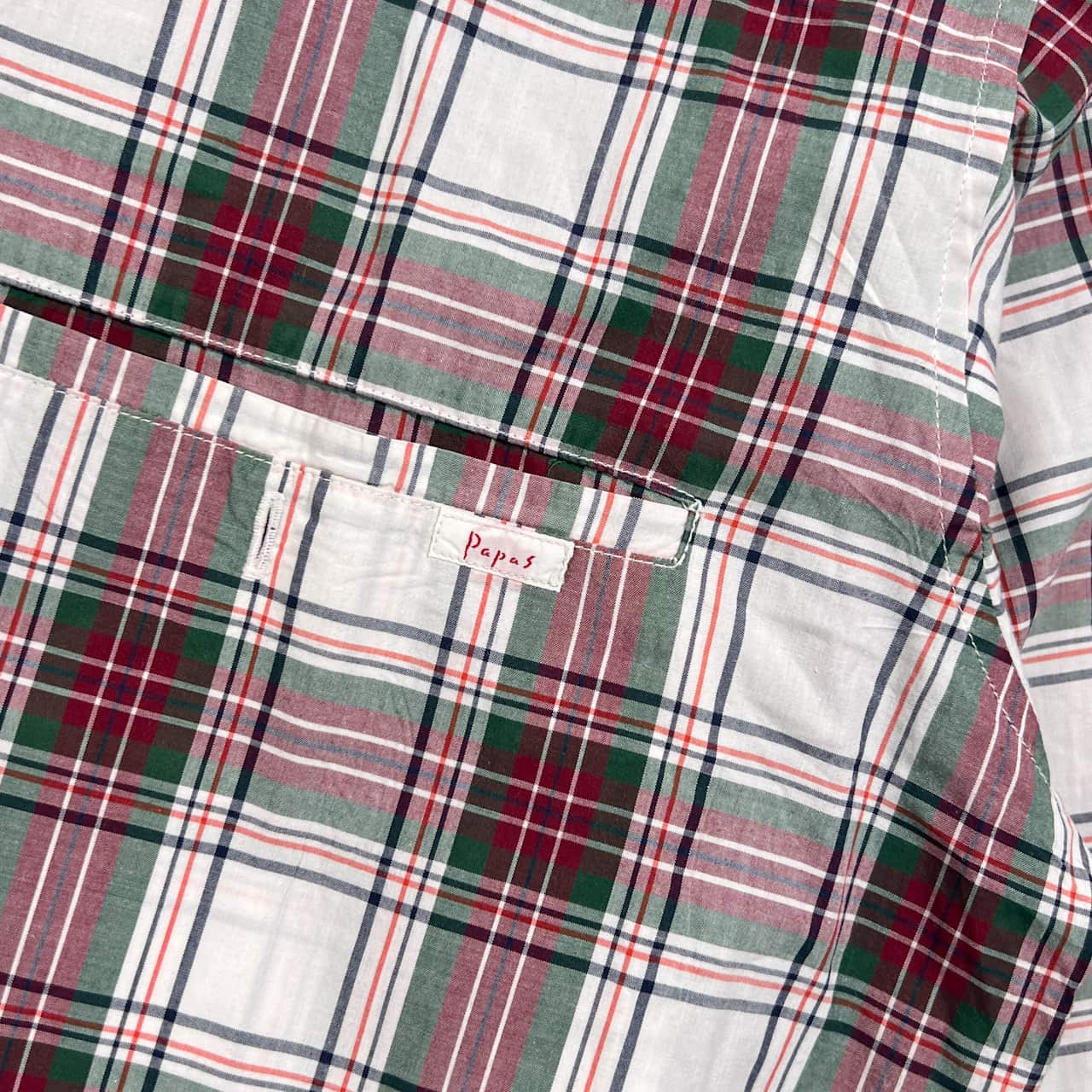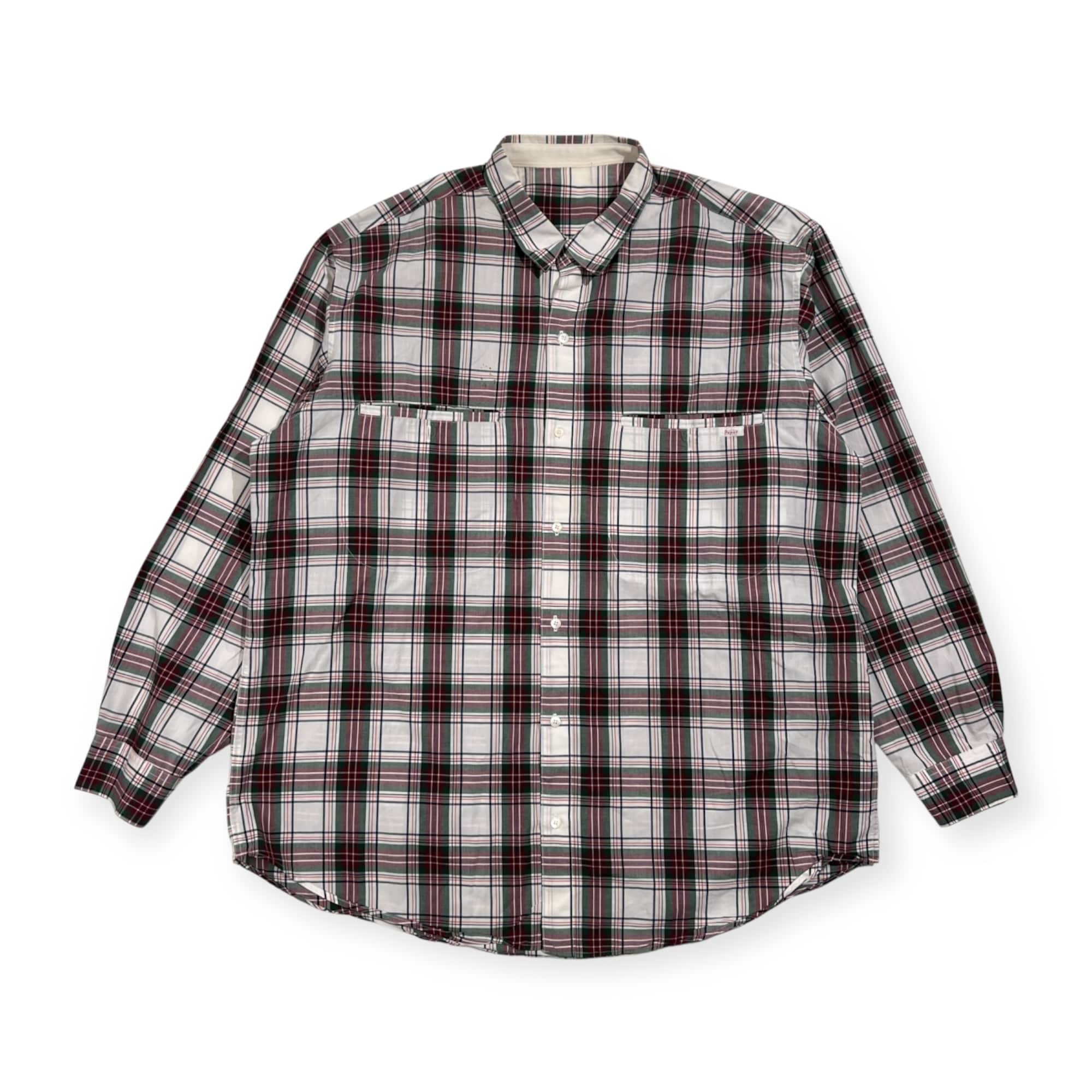 PAPAS パパス チェック 長袖シャツ L/レッド×グリーン系 メンズ