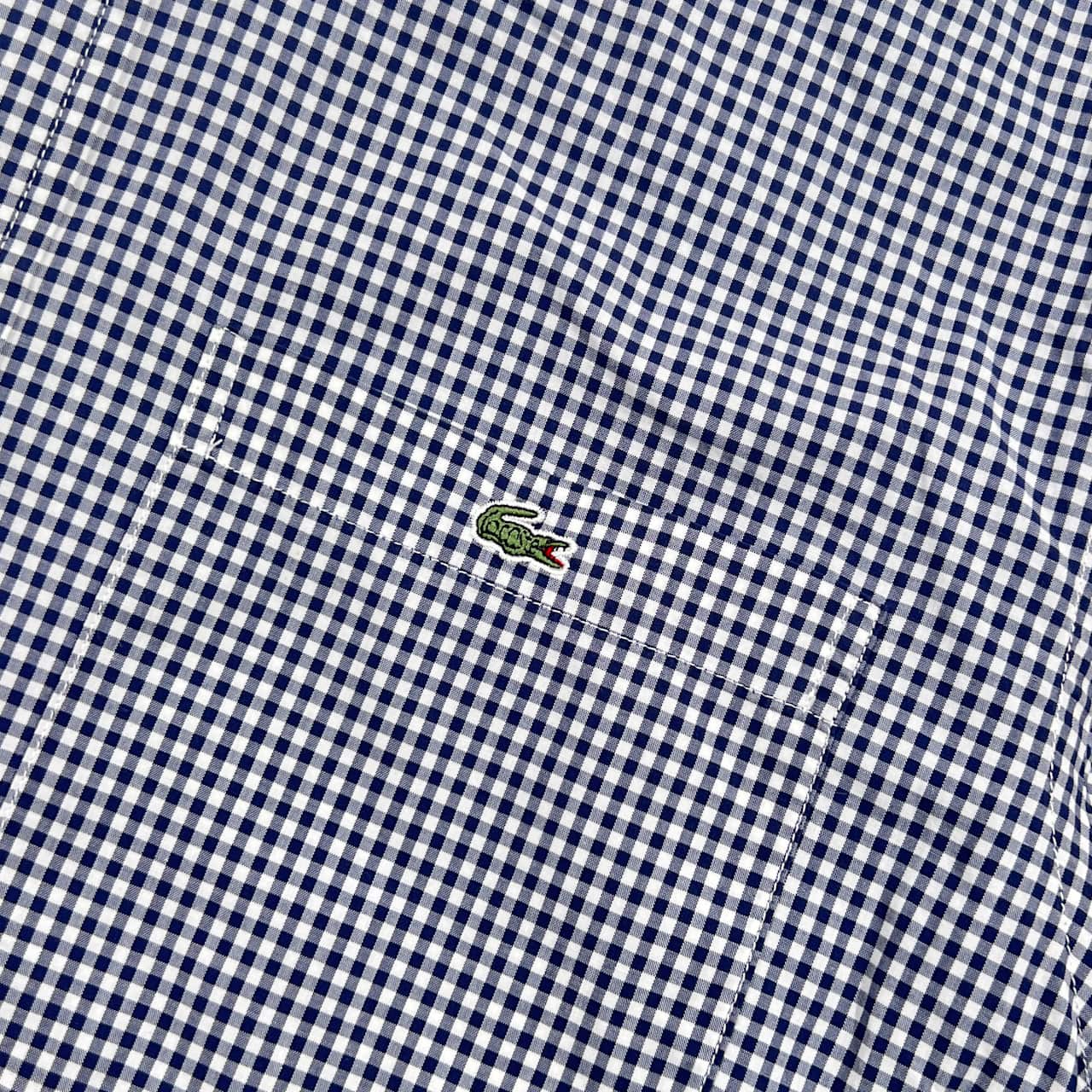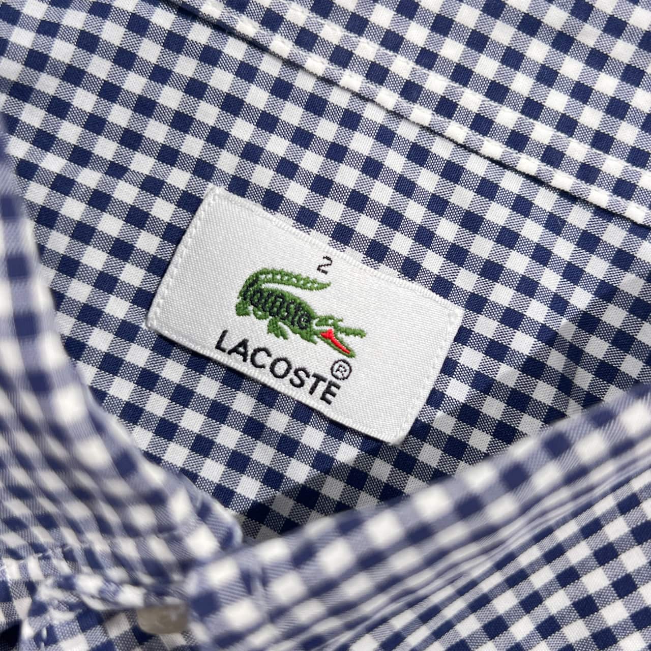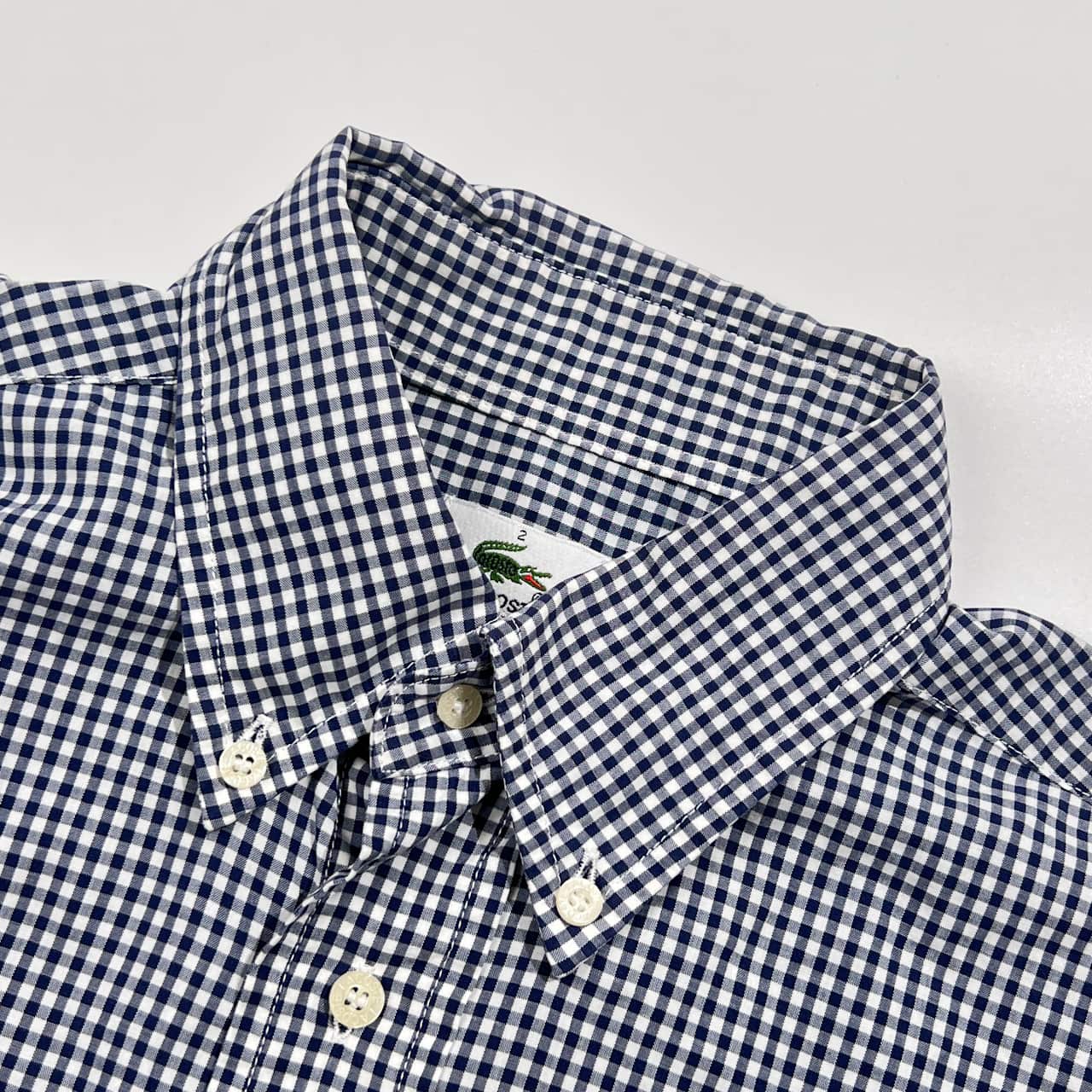 90s LACOSTE ラコステ 文字ワニ ギンガムチェック BD ボタンダウン 長袖シャツ 2/ネイビー系 メンズ ビンテージ